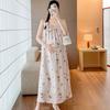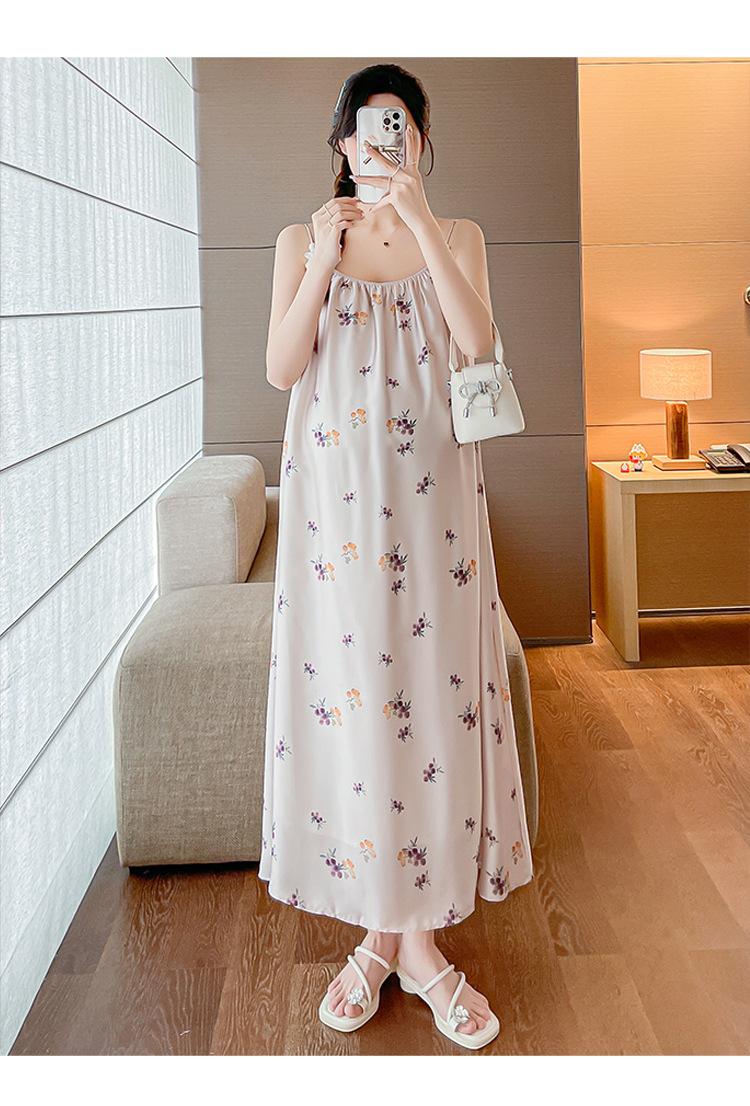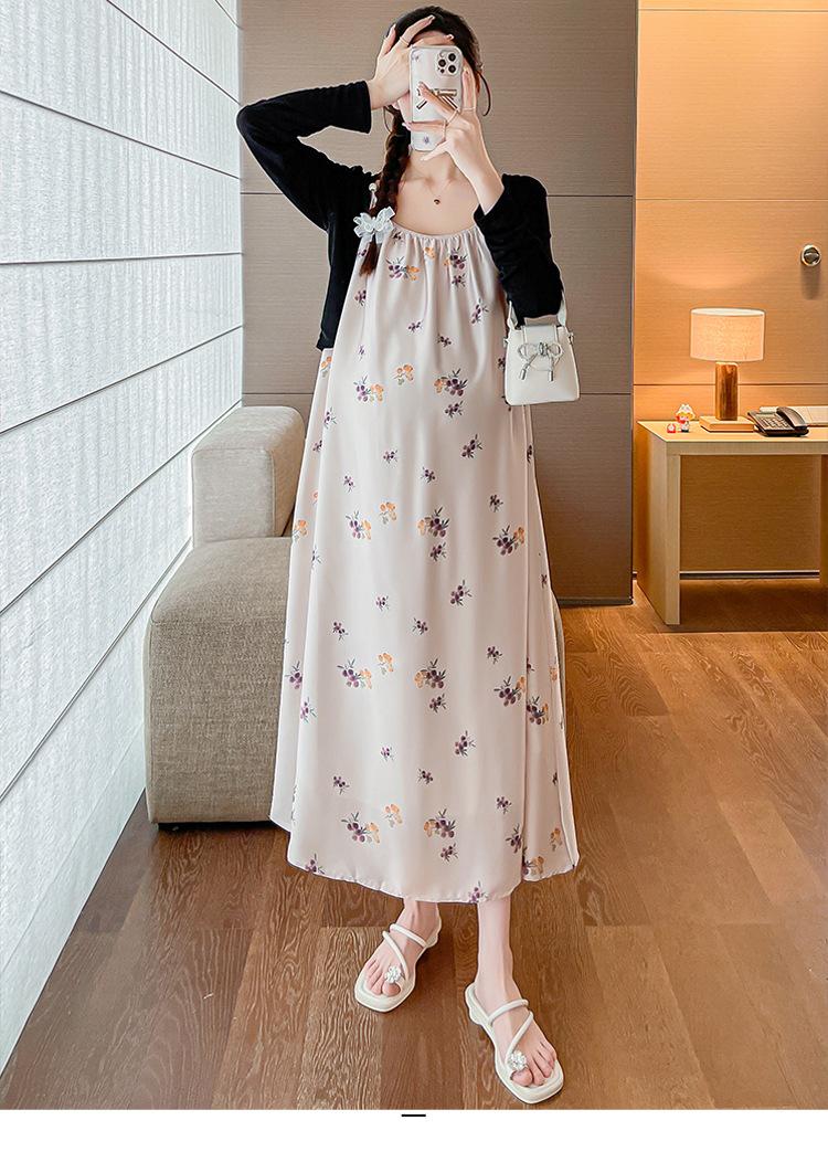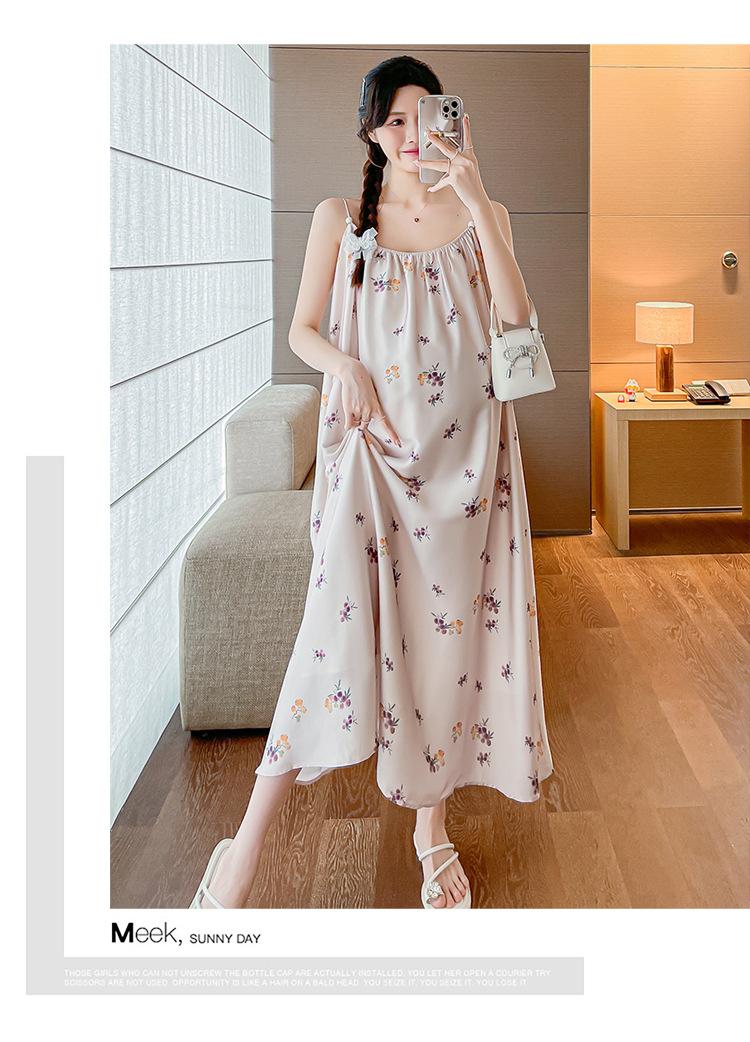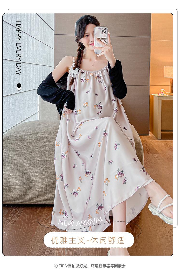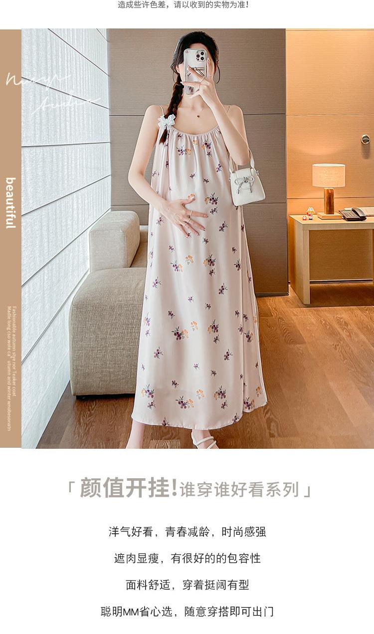 Ropa de Maternidad 2024 Primavera y Verano Nuevo Dulce Floral Falda de Tirantes Cárdigan Vestido de Maternidad de Dos Piezas