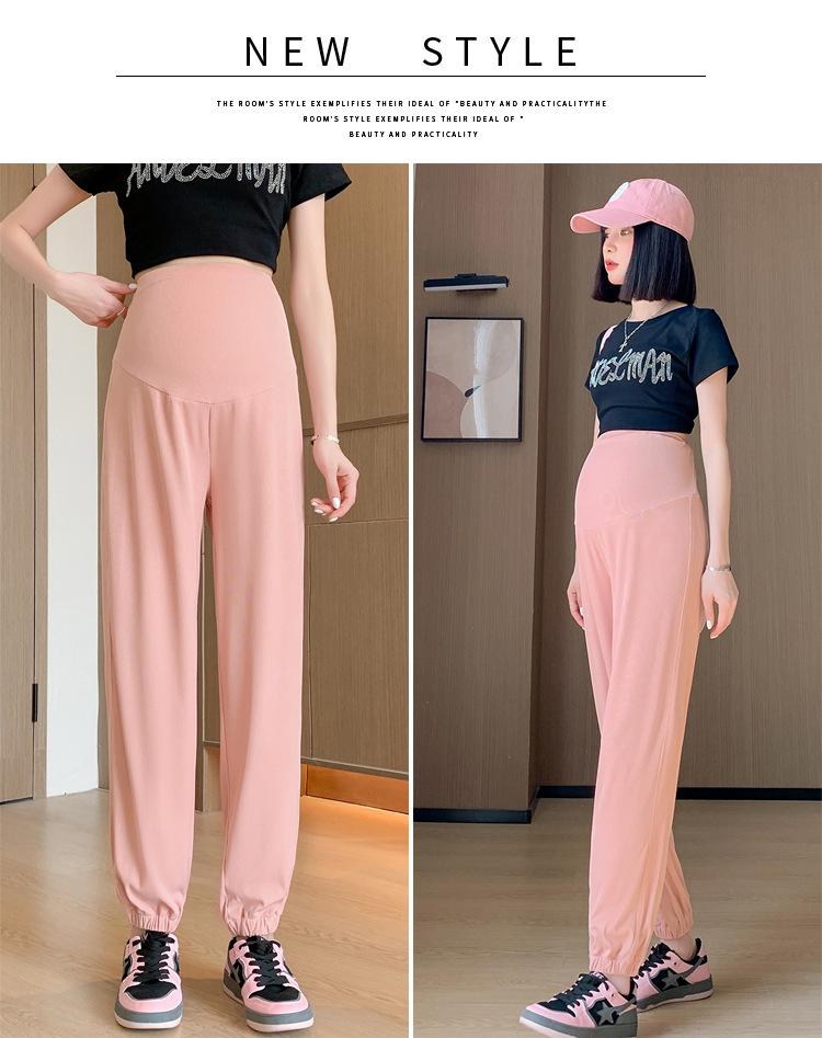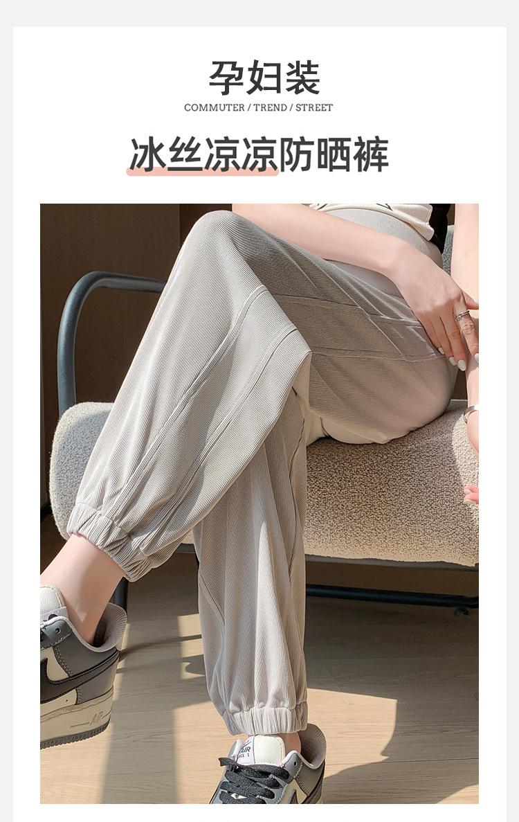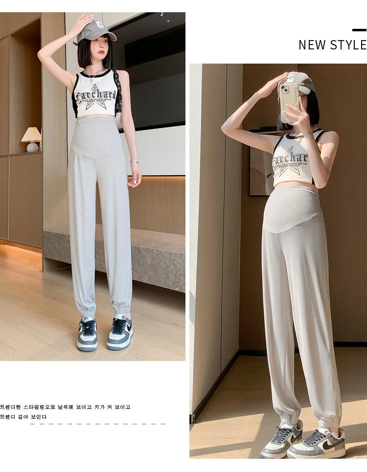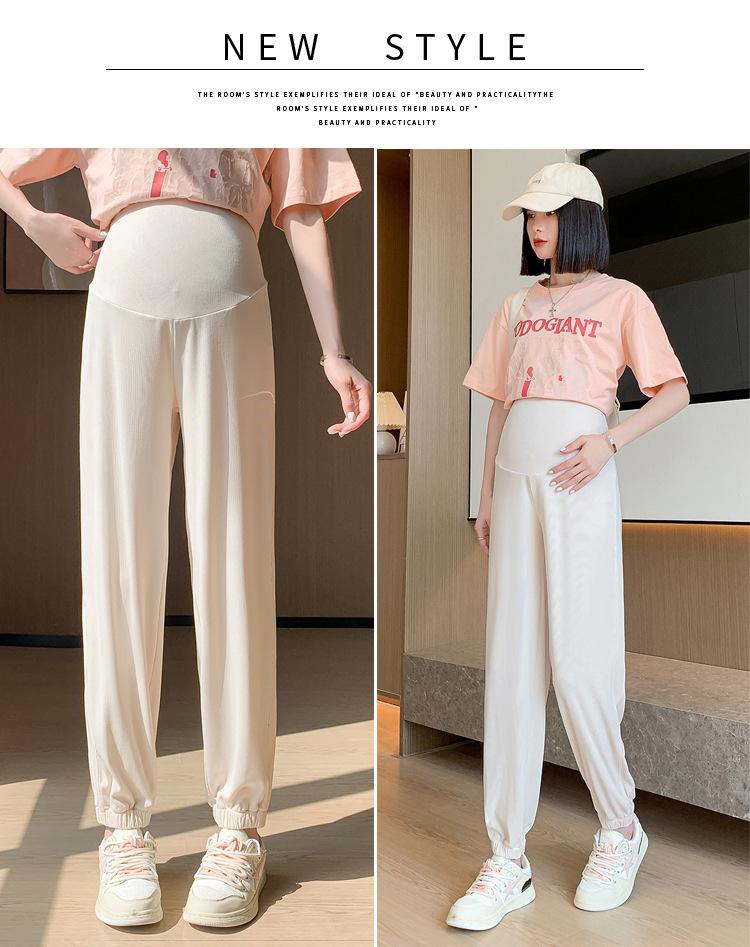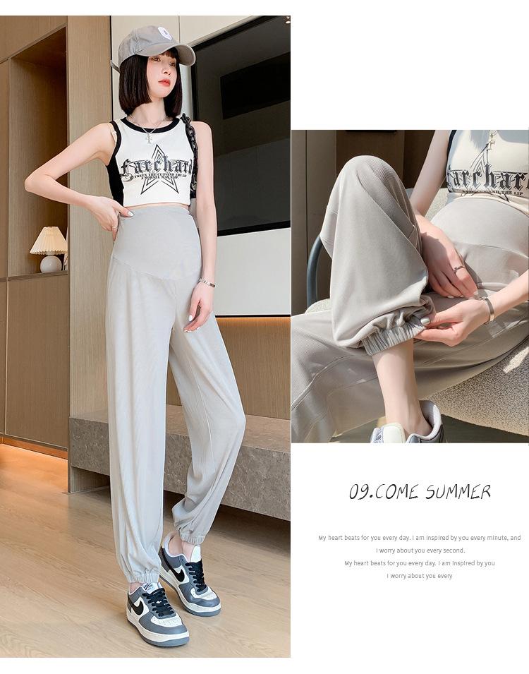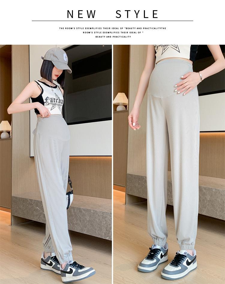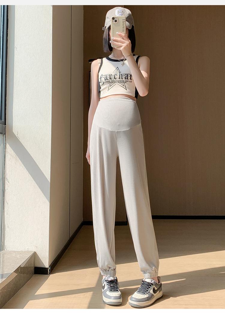 Pantalones de Maternidad Verano Nuevo Delgados Ropa Exterior Seda de Hielo Protector Solar Leggings Casuales Pantalones Deportivos Pequeñas Mujeres Embarazadas Pantalones de Soporte para Vientre