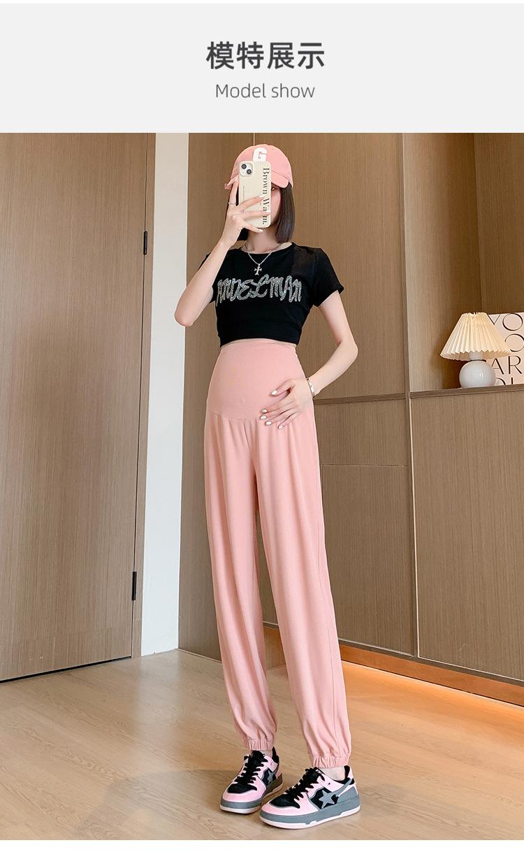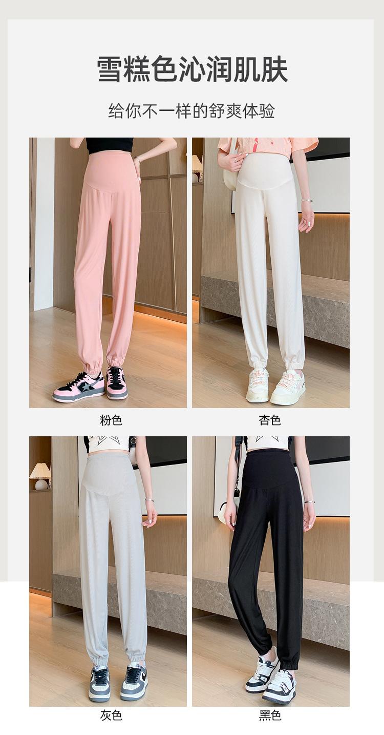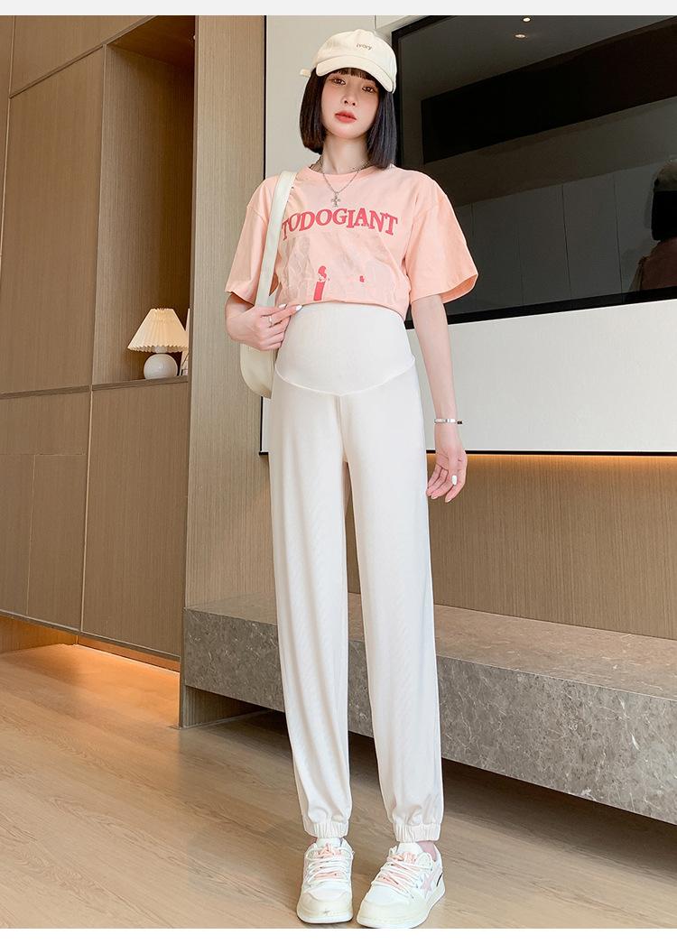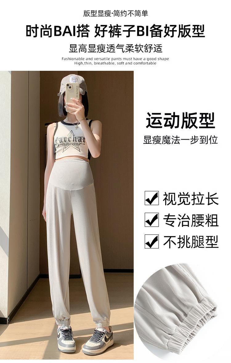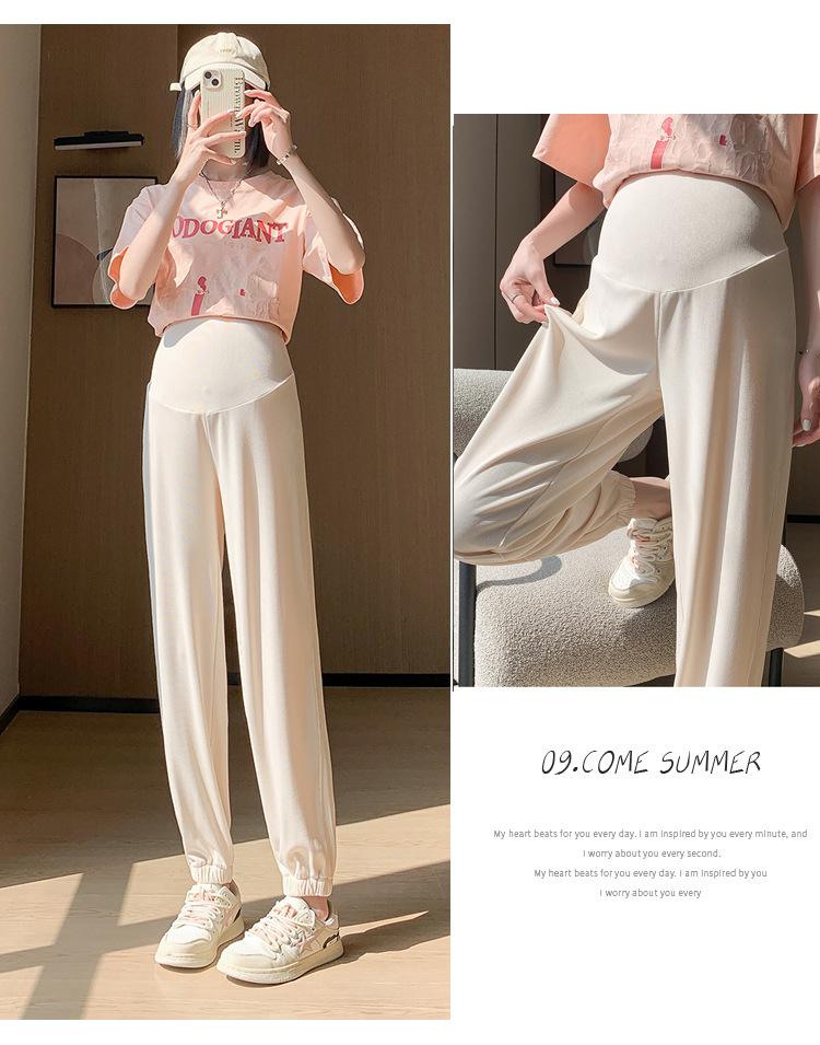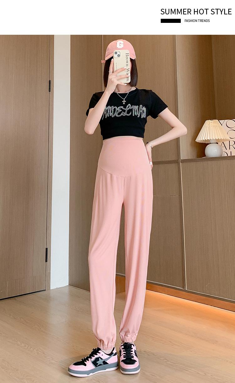 Pantalones de Maternidad Verano Nuevo Delgados Ropa Exterior Seda de Hielo Protector Solar Leggings Casuales Pantalones Deportivos Pequeñas Mujeres Embarazadas Pantalones de Soporte para Vientre