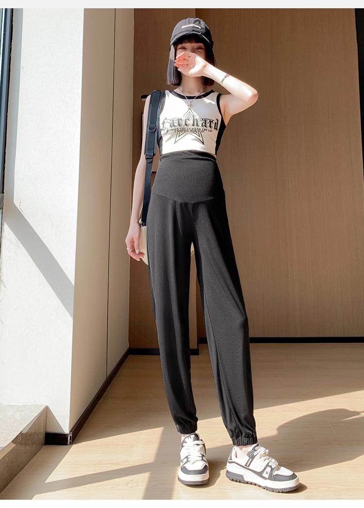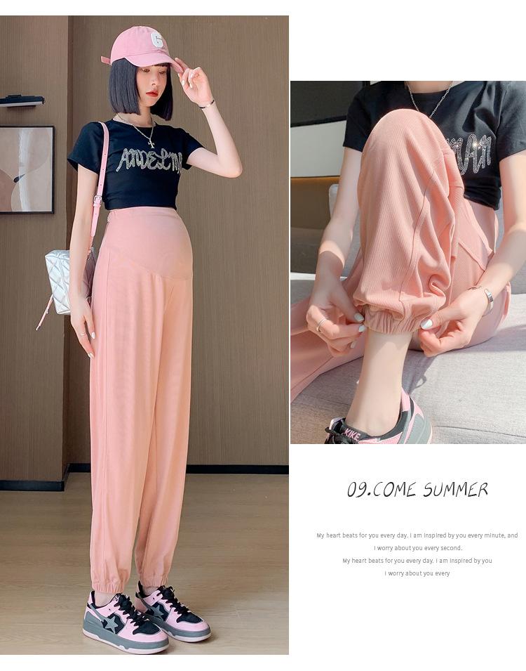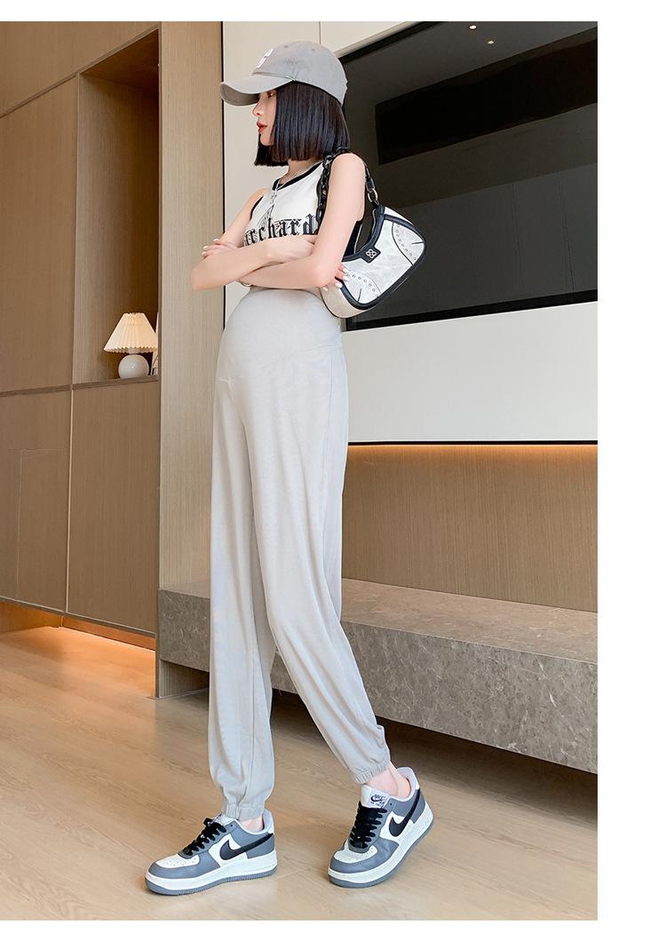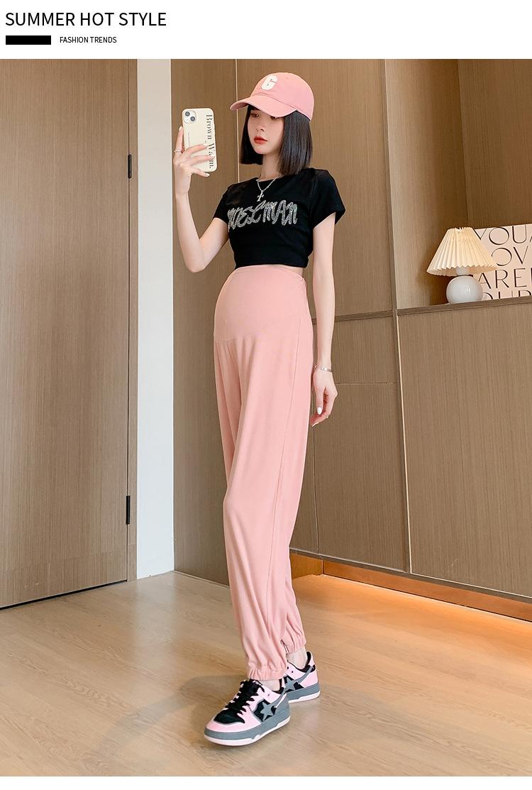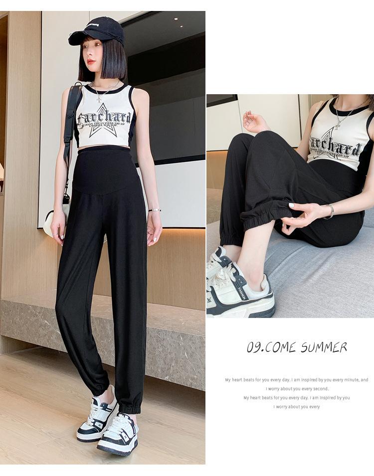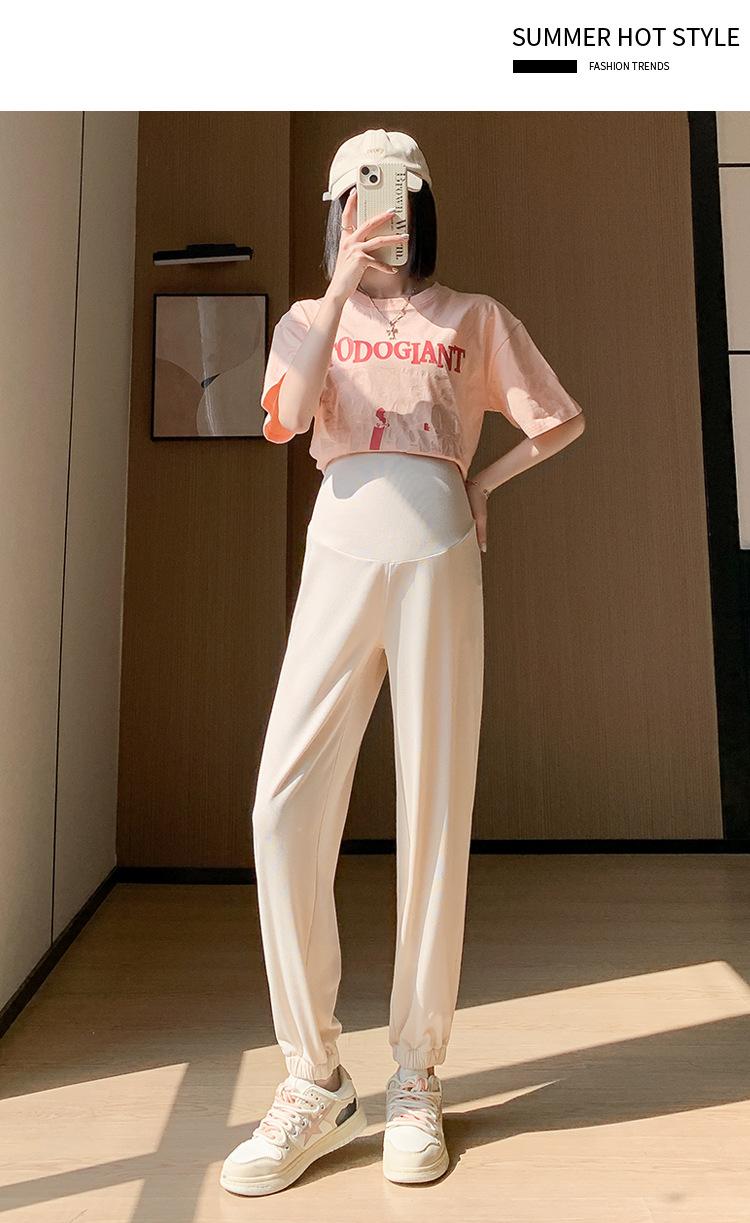 Pantalones de Maternidad Verano Nuevo Delgados Ropa Exterior Seda de Hielo Protector Solar Leggings Casuales Pantalones Deportivos Pequeñas Mujeres Embarazadas Pantalones de Soporte para Vientre