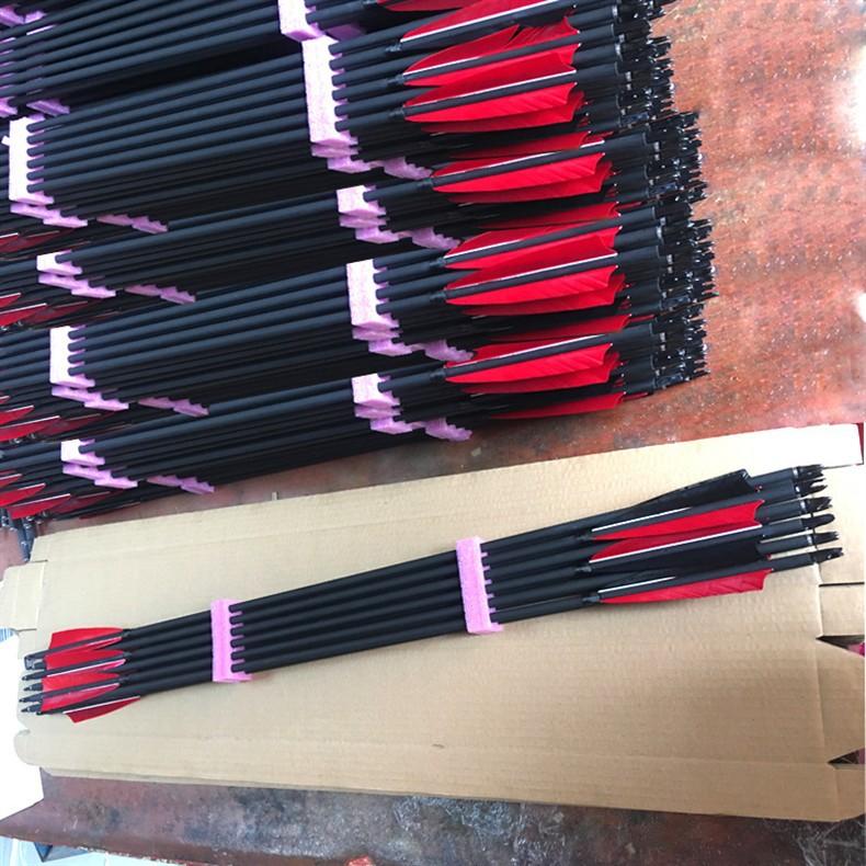 Nombre del producto: Flechas mixtas de carbono con plumas reales rojas y negras