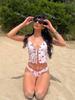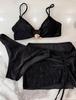 Bikini de tres piezas estilo europeo y americano de terciopelo francés, traje de baño sexy adelgazante de color caramelo con abertura para mujer