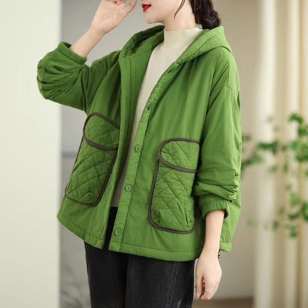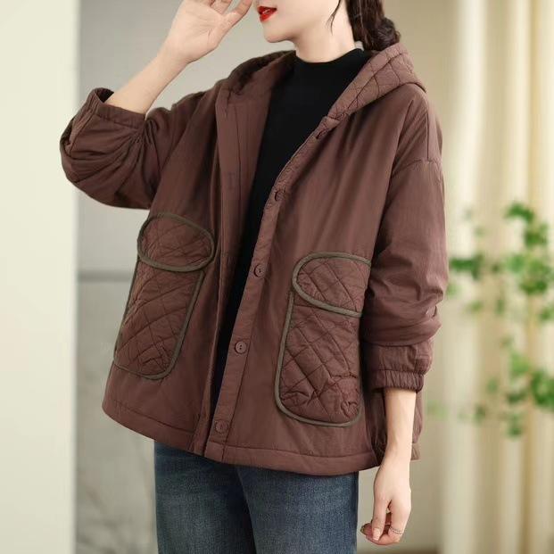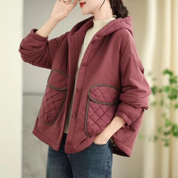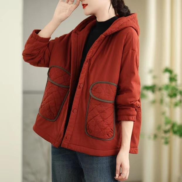 Chaqueta Vintage Distintiva de Bolsillo con Capucha Acolchada de Algodón para Mujer Invierno Nuevo Diseño Sentido Ligera Pequeña Abrigo Acolchado de Algodón Abrigo Corto Acolchado de Algodón Engrosado