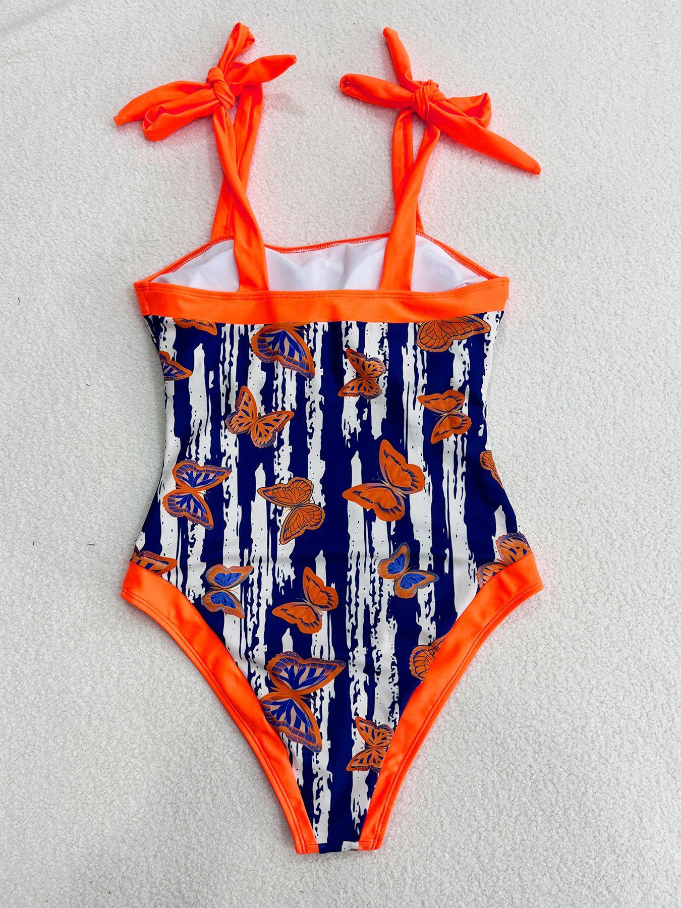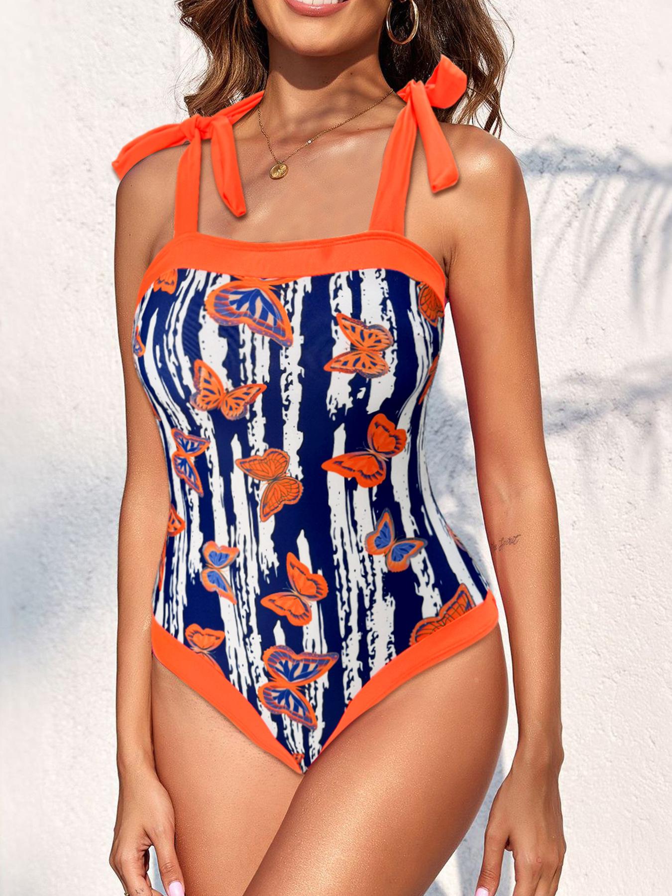 Traje de baño entero sexy sin espalda con tirantes estampados transfronterizo nuevo 2025 Europa y Estados Unidos Amazon comercio exterior