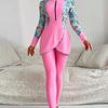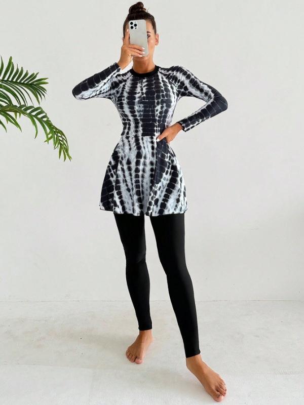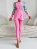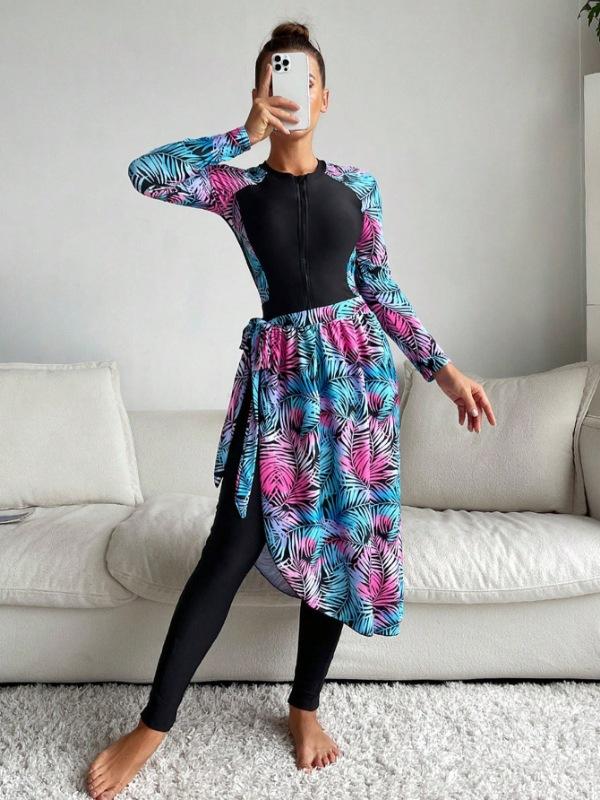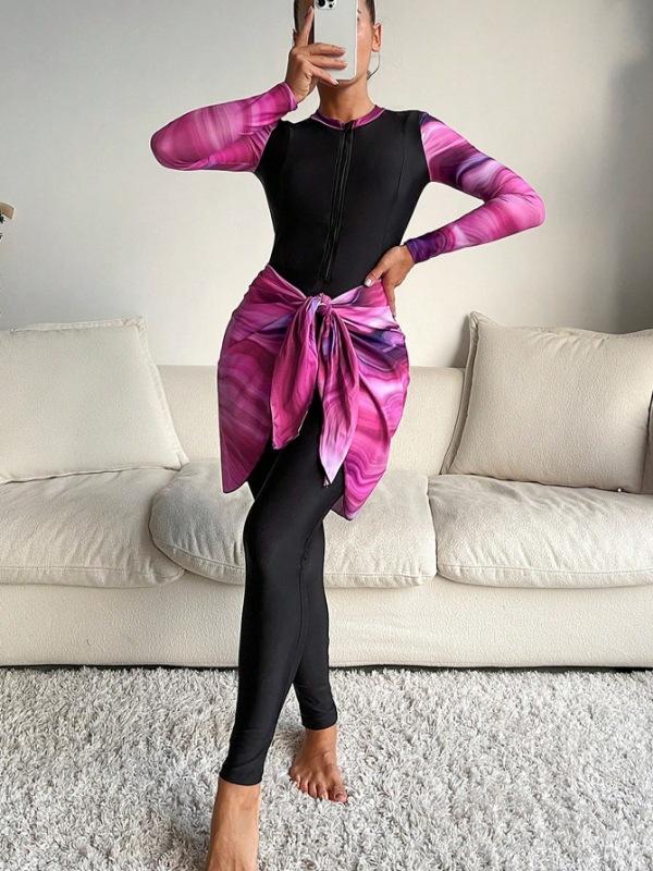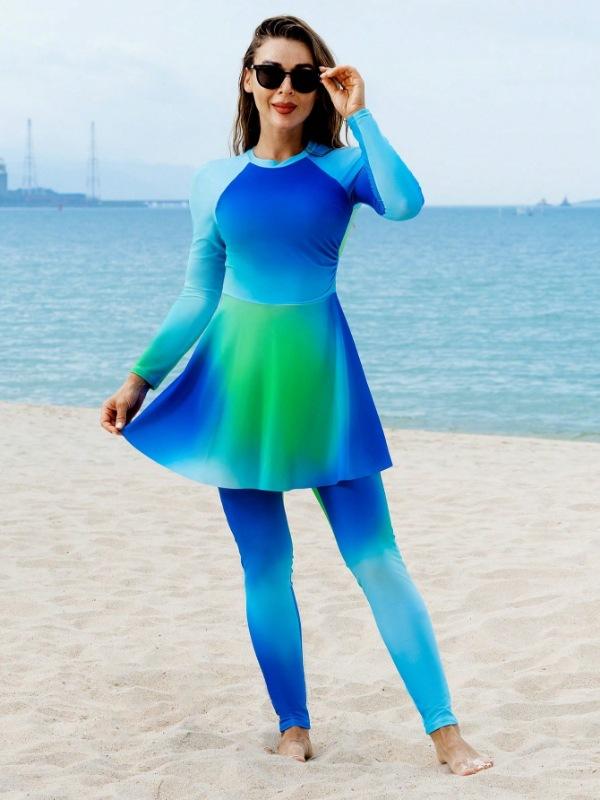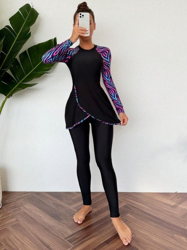 Traje de Baño de Talla Grande de Manga Larga con Bloques de Color Nuevo Europeo y Americano 2025 para Mujer de Dos Piezas Playa Surf Deportes Traje de Baño de Exportación
