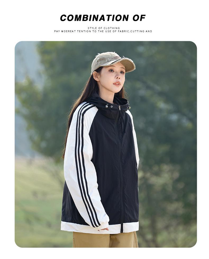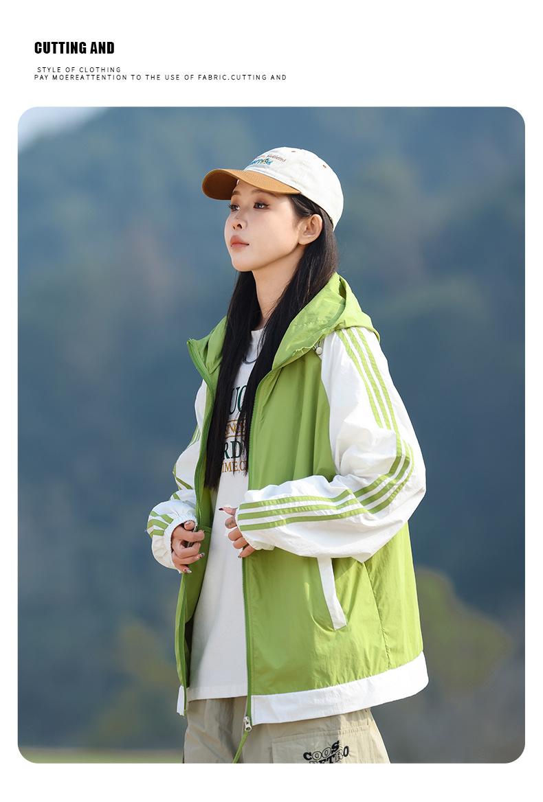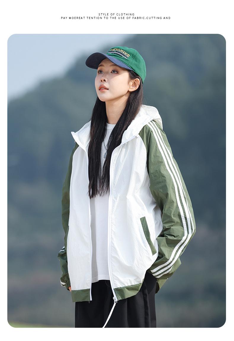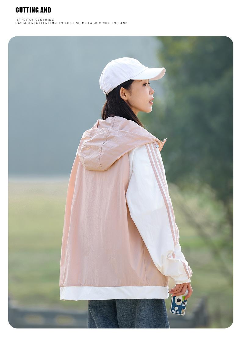 Chaqueta deportiva con capucha y protección solar para mujer, de verano, fina, transpirable, antiultravioleta, con protección solar UPF 50.