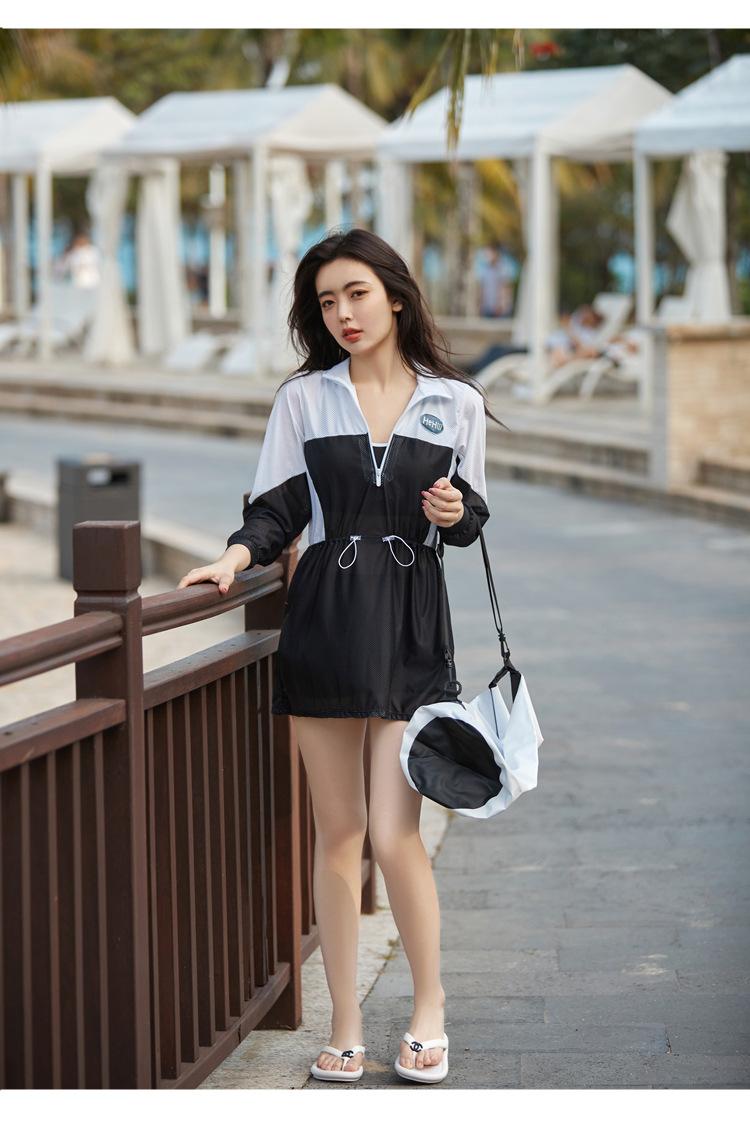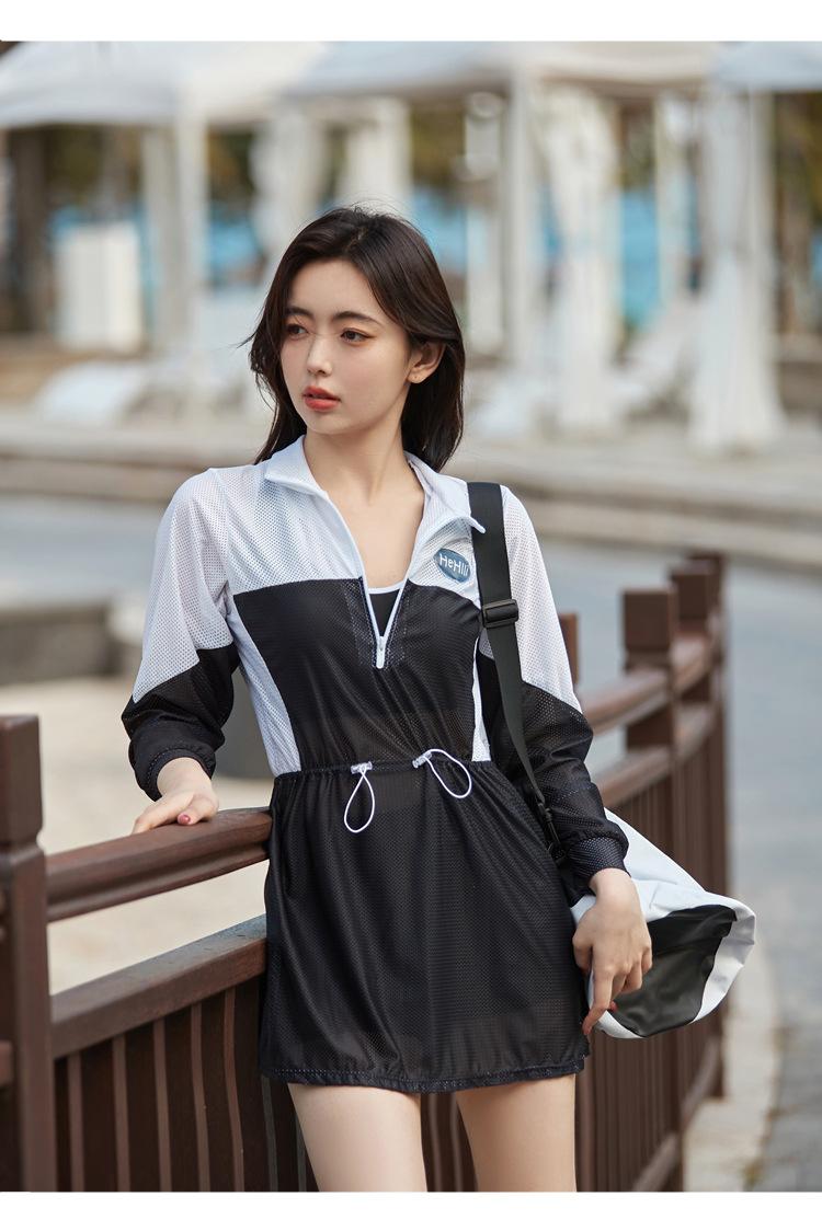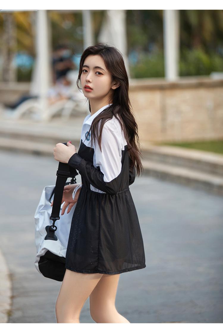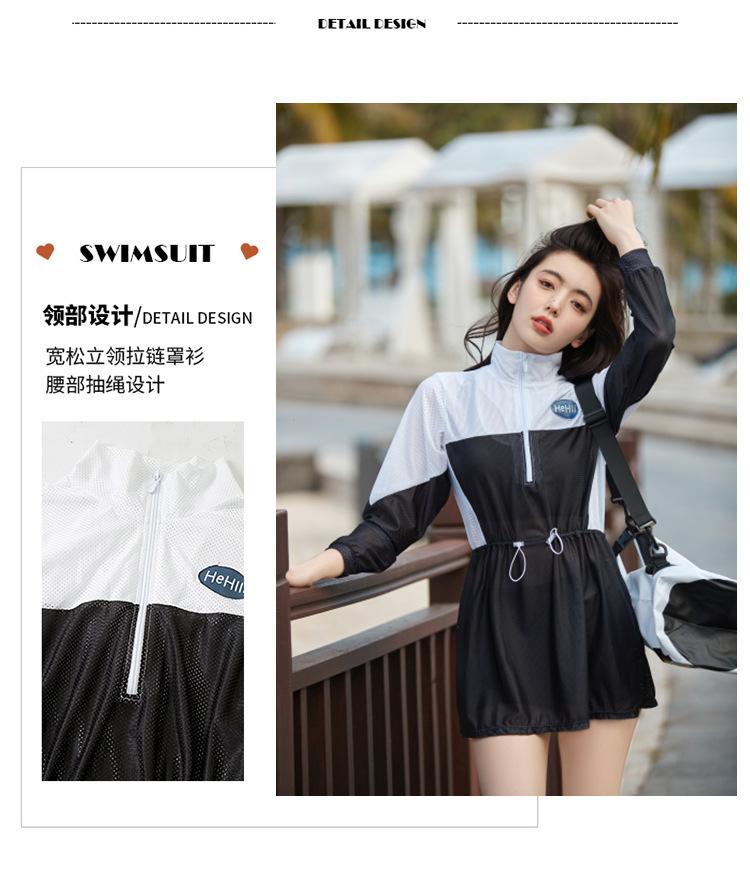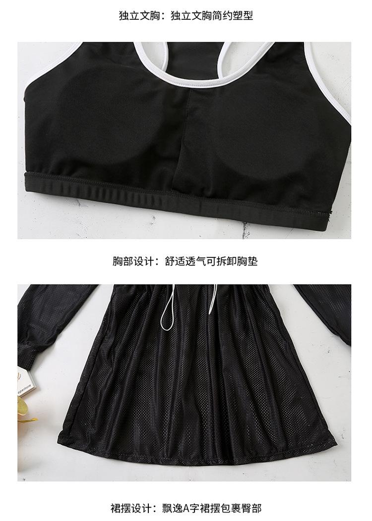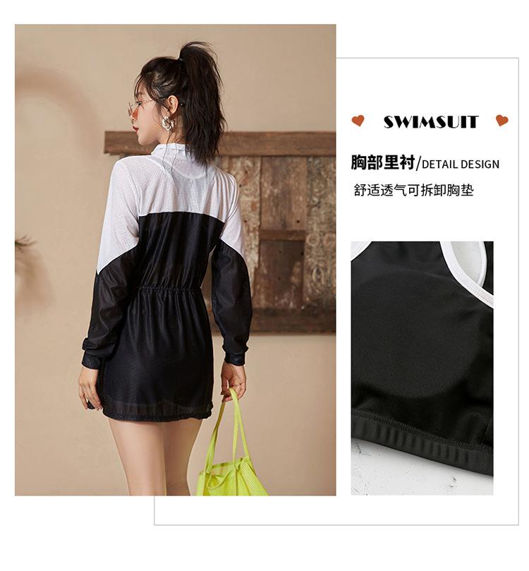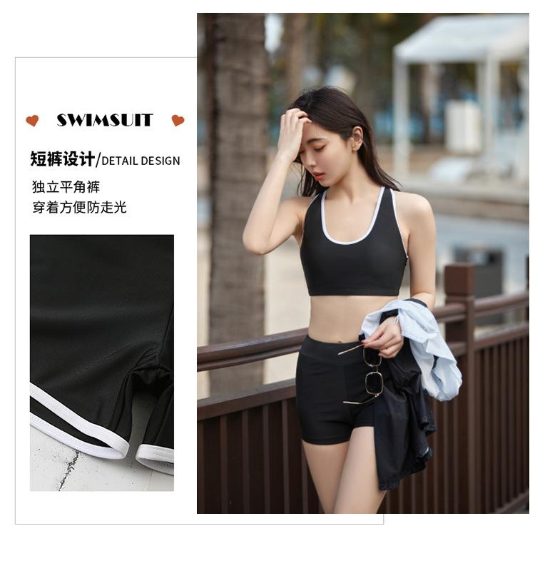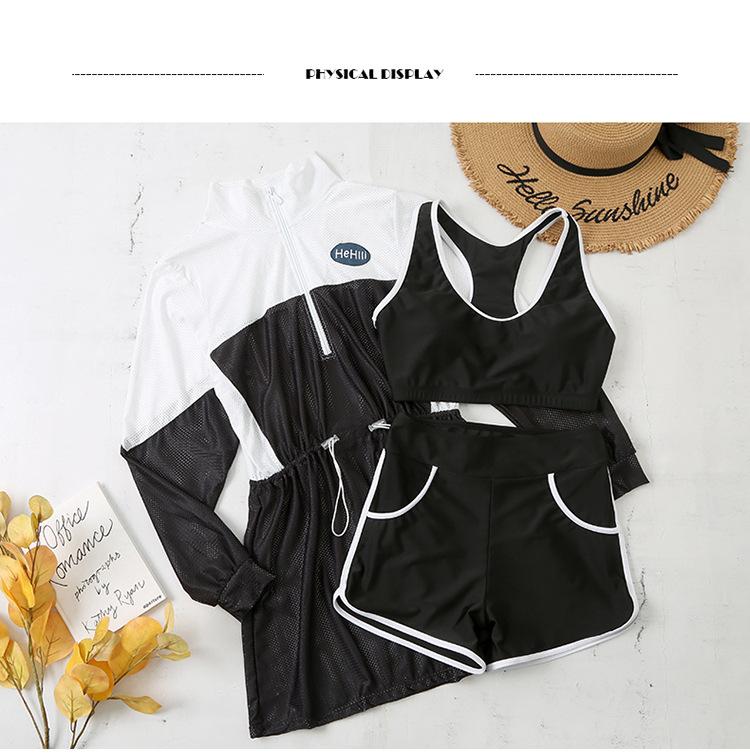 Traje de baño para mujer, estilo bóxer conservador que cubre el vientre, bikini ajustado de tres piezas, deportivo, camiseta exterior de manga larga, traje de baño de aguas termales de talla grande