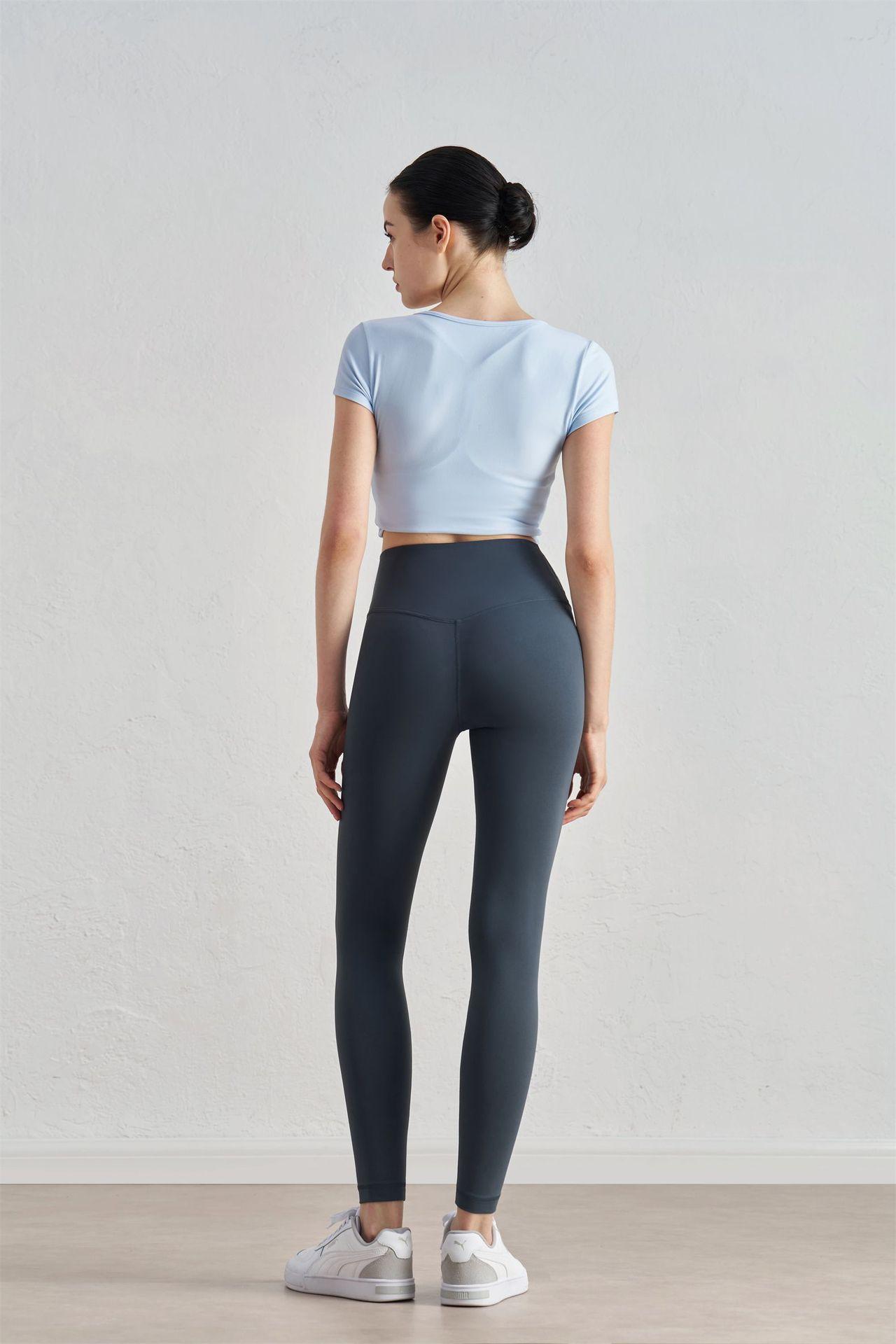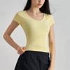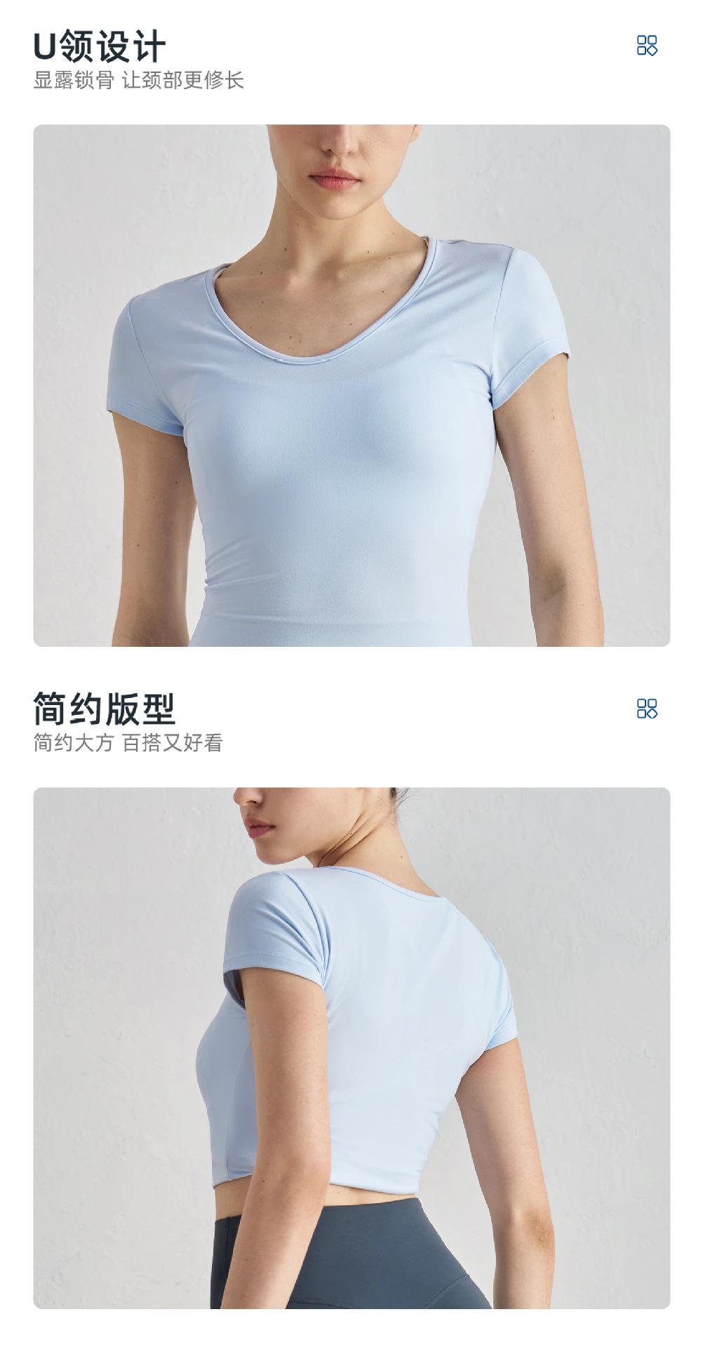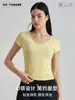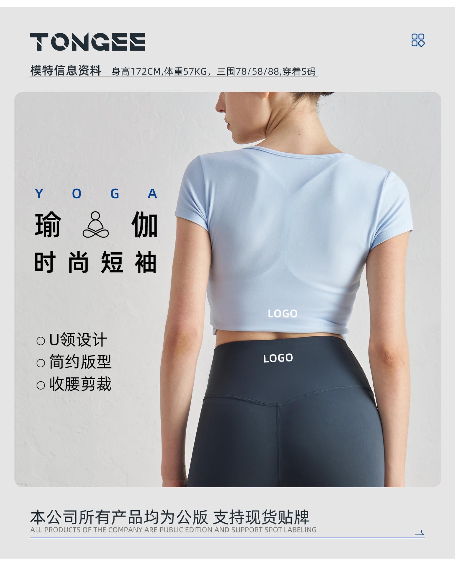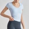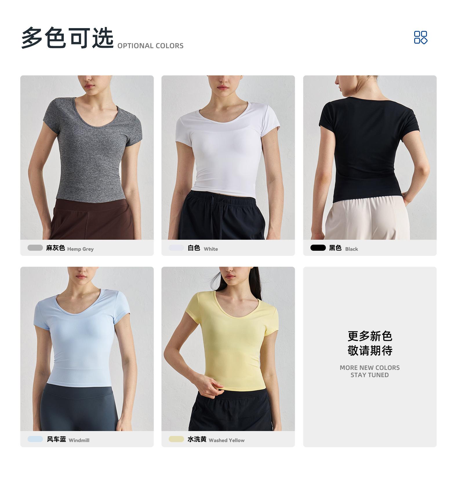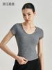 Ropa Chuntongji Cuello Redondo Desnudo Manga Corta para Mujer Ajustado Adelgazante Ropa de Fitness Casual Combinable Camiseta de Yoga