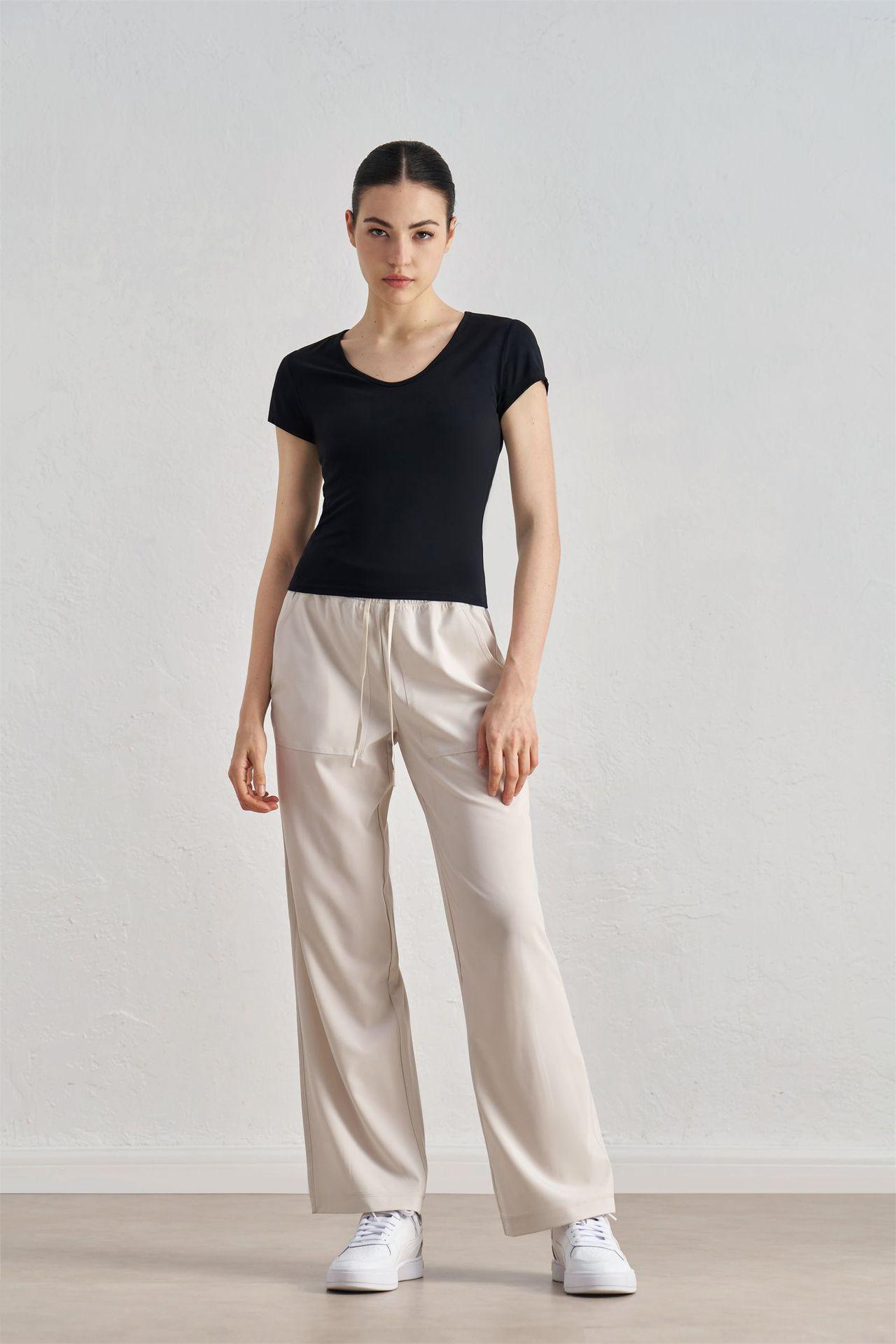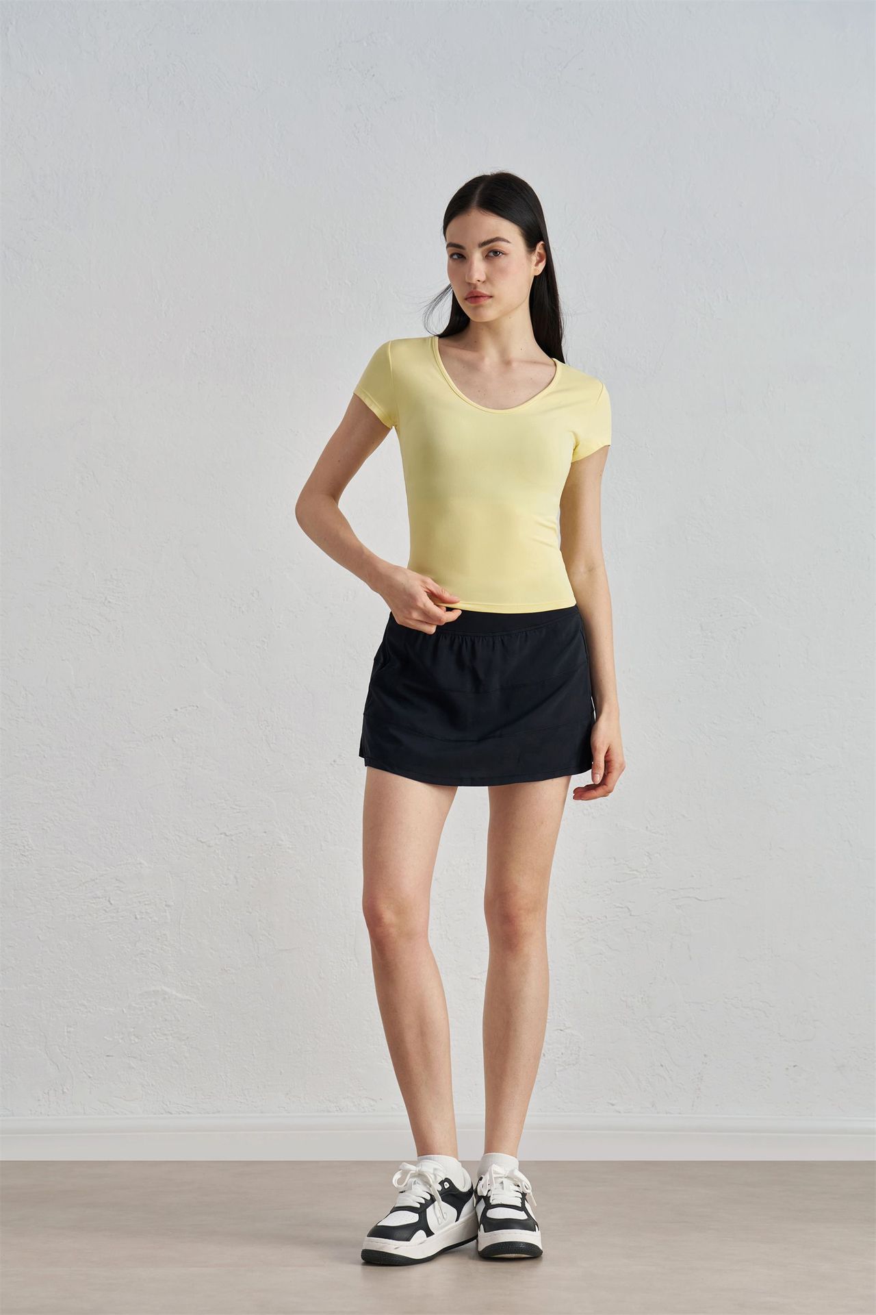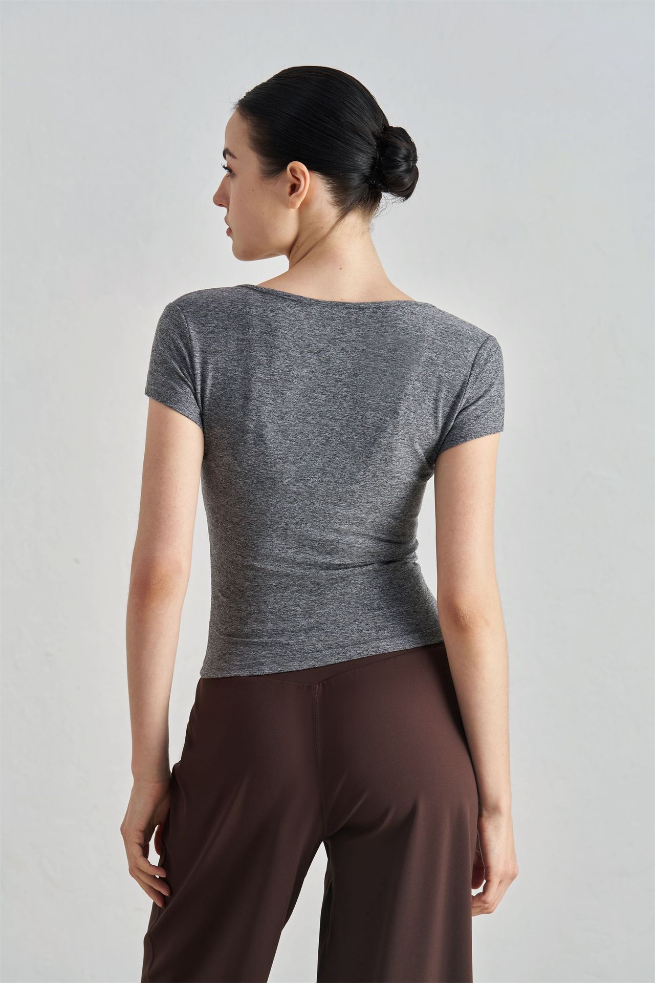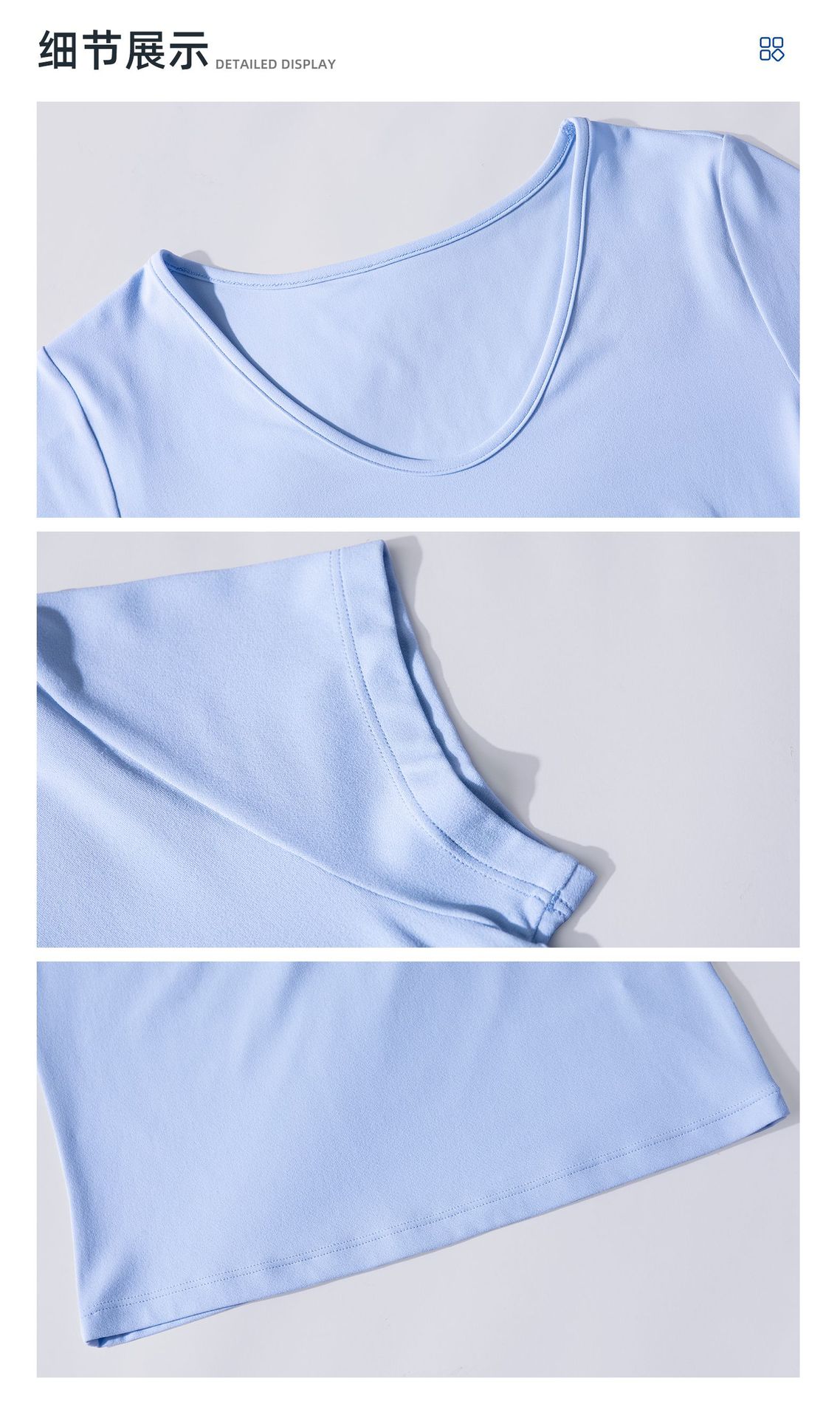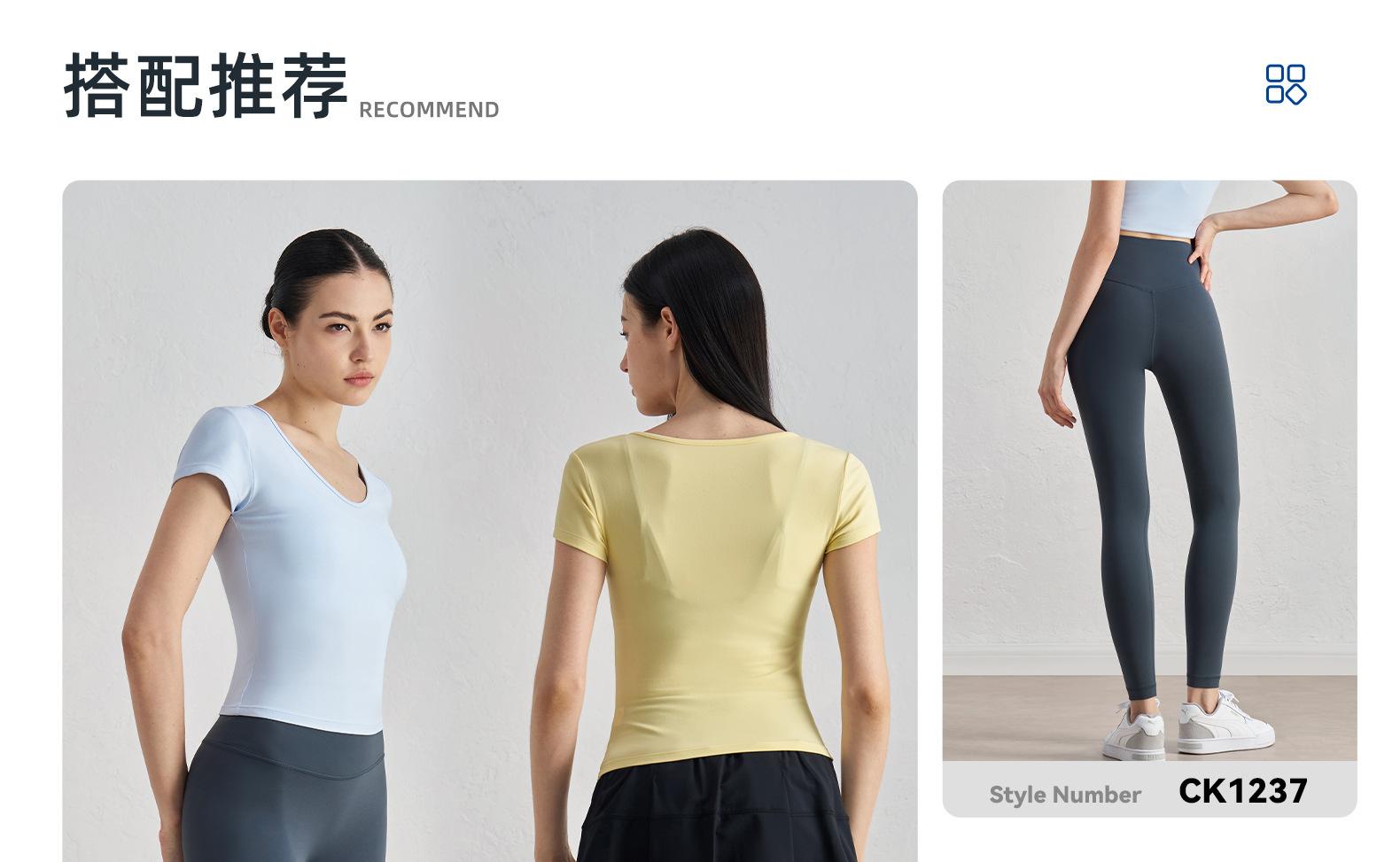 Ropa Chuntongji Cuello Redondo Desnudo Manga Corta para Mujer Ajustado Adelgazante Ropa de Fitness Casual Combinable Camiseta de Yoga