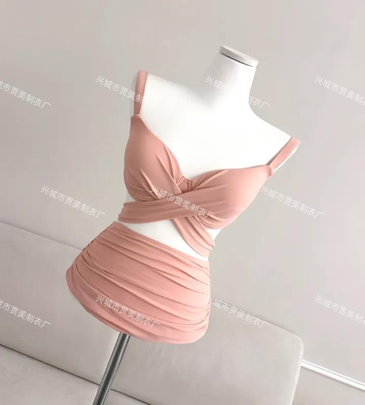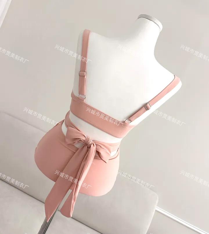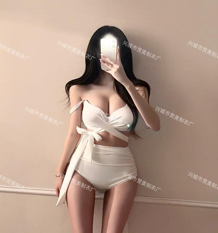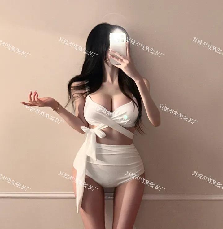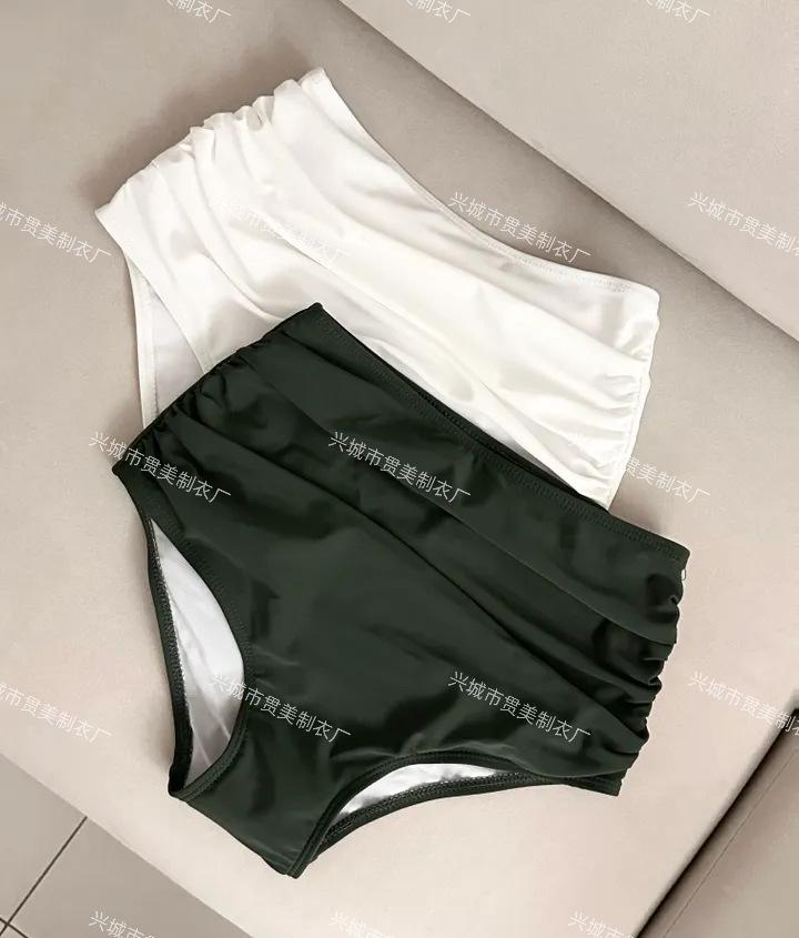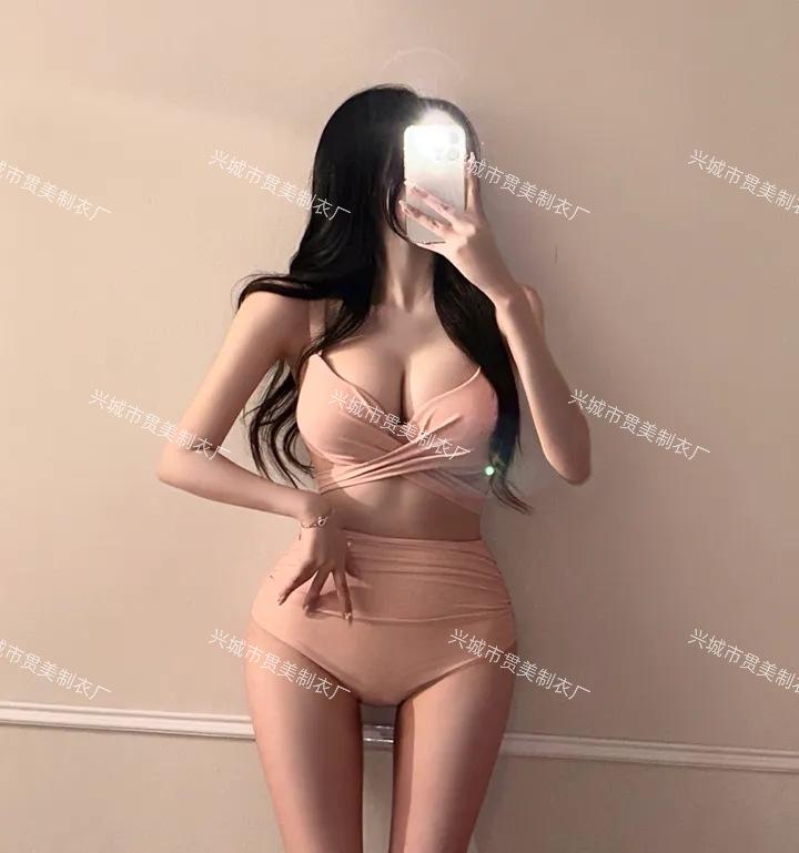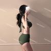 [4 colores] Nuevo bikini estilo coreano con soporte de acero y pecho pequeño fruncido, color sólido, tiro alto, traje de baño de playa para mujer