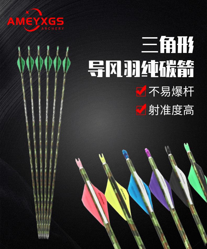Flecha de carbono puro con pluma guía de viento triangular AMEYXGS, flecha competitiva para arco recurvo, práctica al aire libre, equipo de competición, accesorios