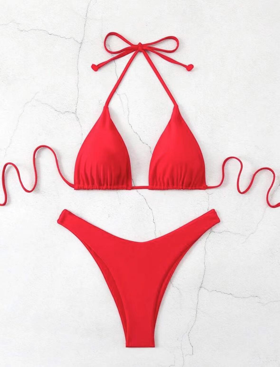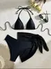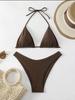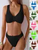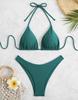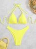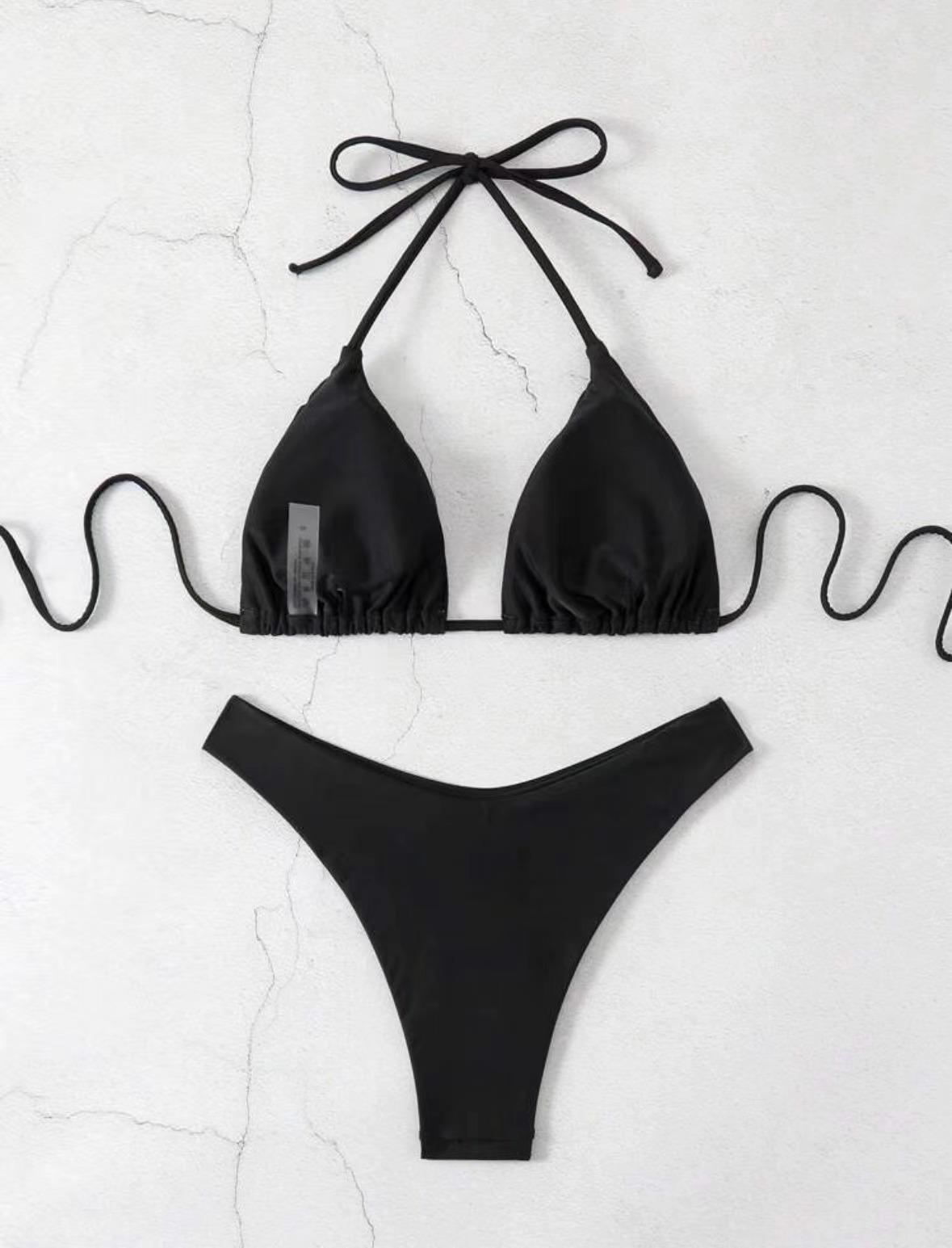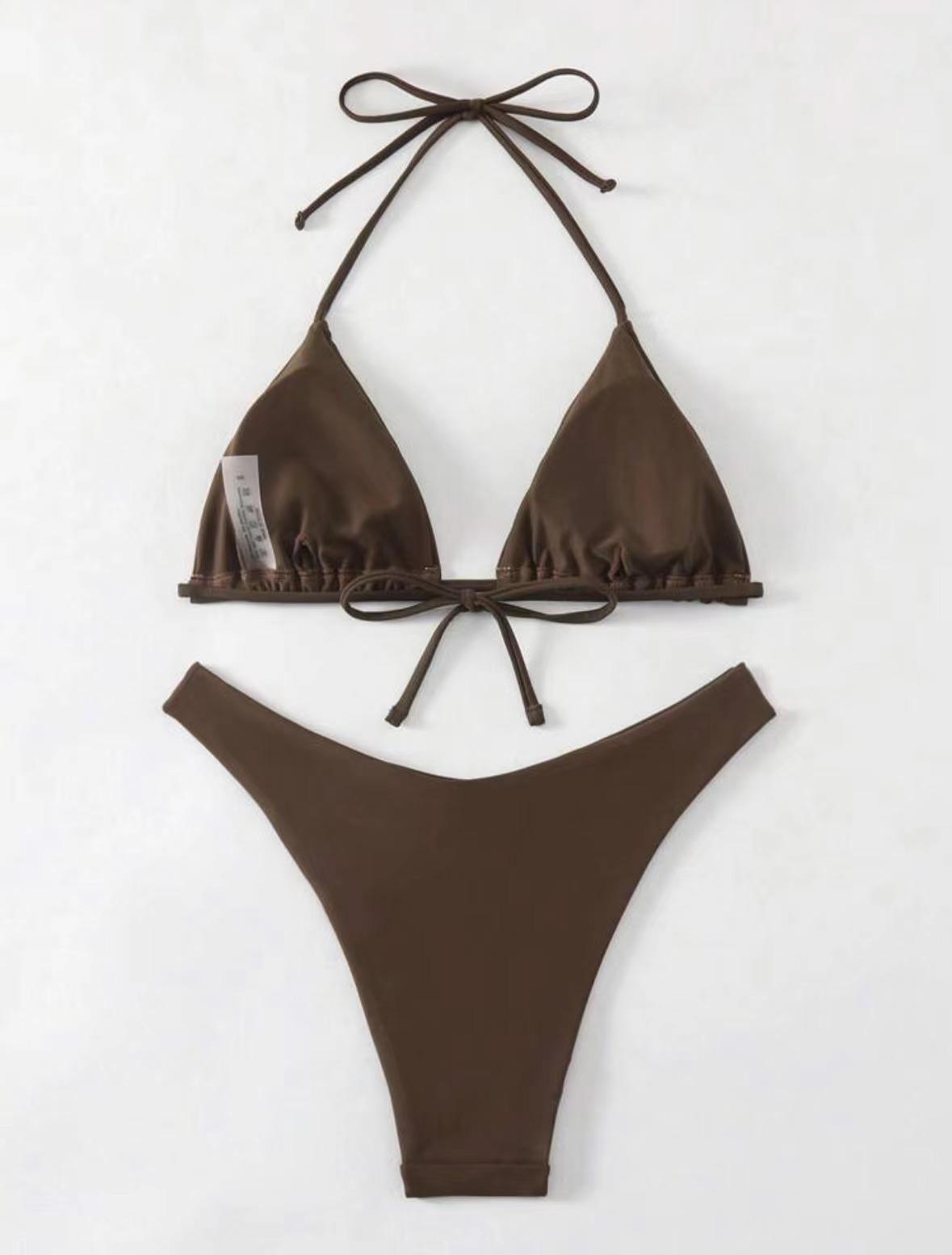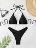 Traje de baño de dos piezas con tirantes, estilo europeo y americano, para mujer, de color liso, sexy, con abertura, transfronterizo, 2025