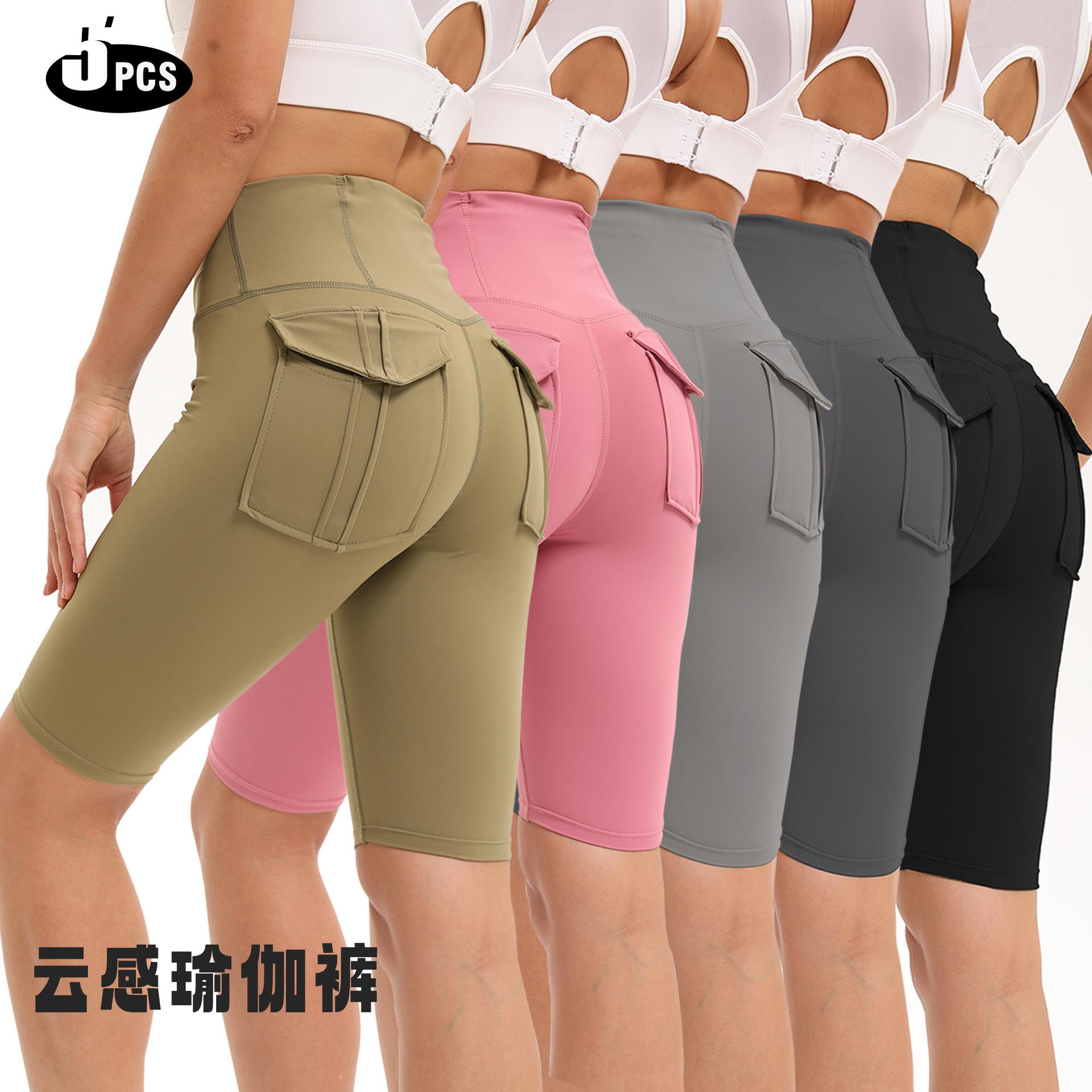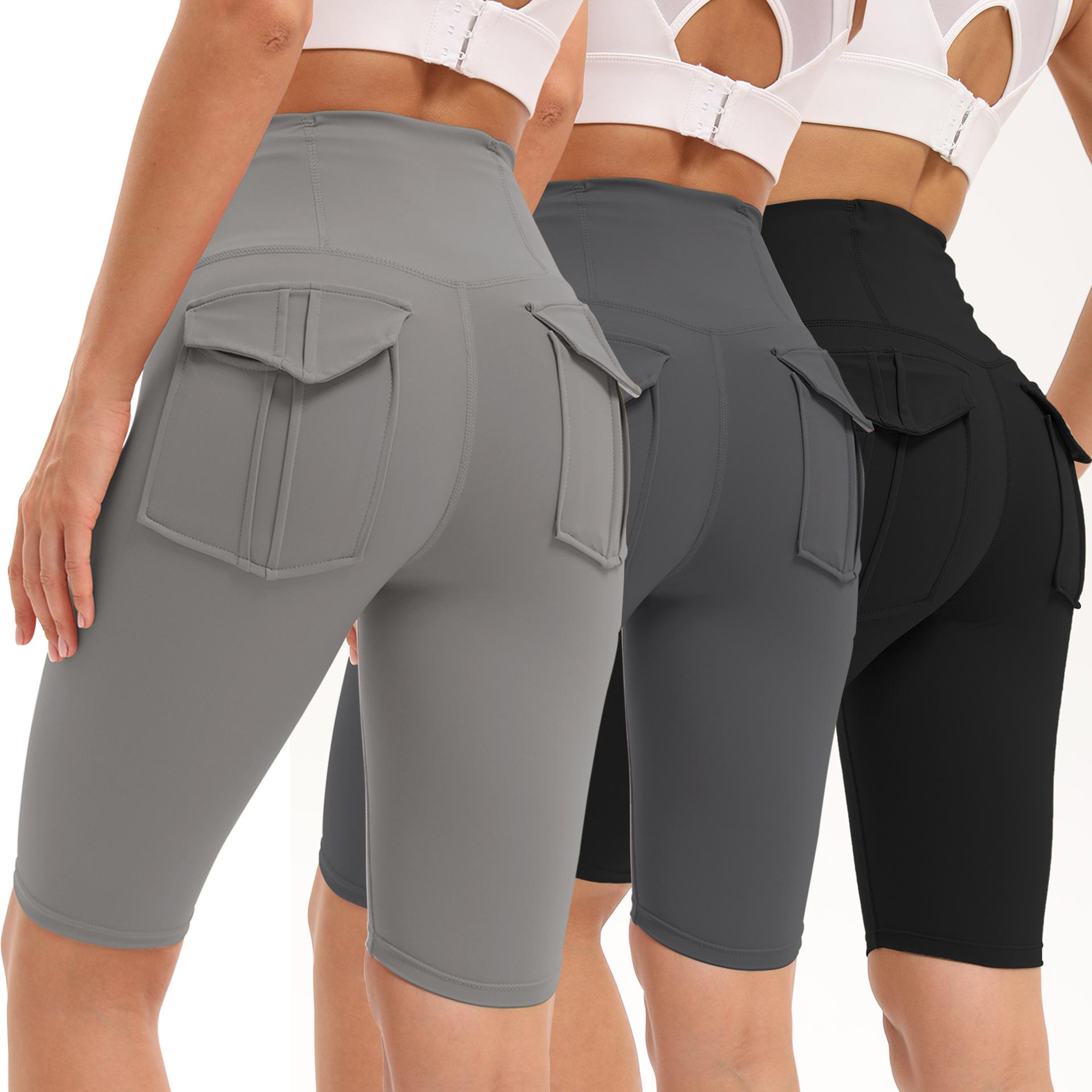 Pantalones capri American Fitness, Pantalones deportivos, Pantalones de trabajo con bolsillo de solapa, Pantalones de yoga de verano elásticos ajustados de cintura alta para mujer que realzan los glúteos