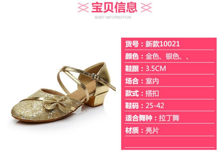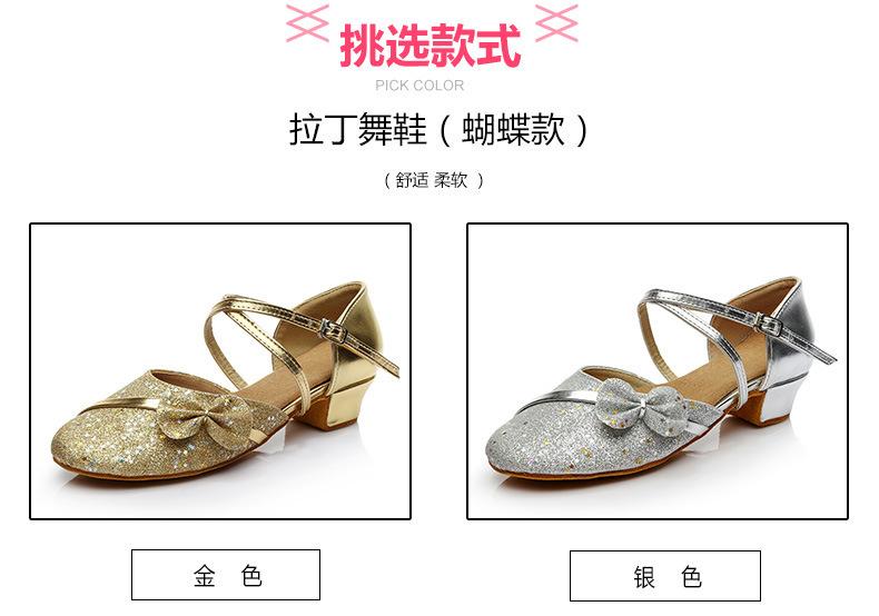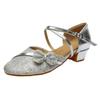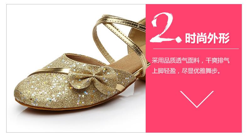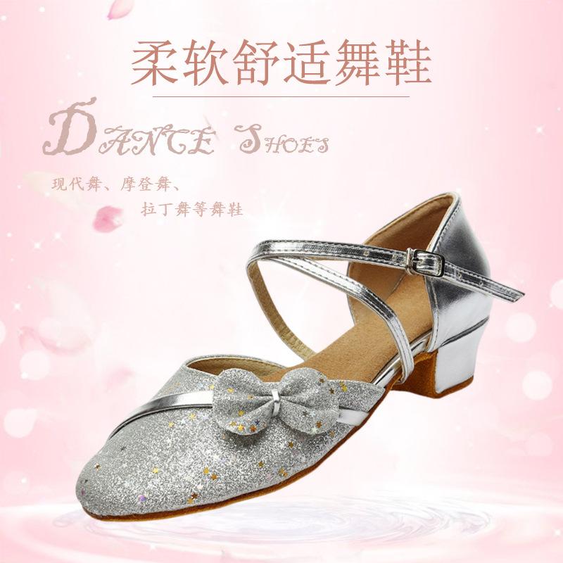 Fabricantes de zapatos de baile latino para niños, venta al por mayor transfronteriza, zapatos de baile plateados de suela suave, tacón plano, modernos, solo zapatos de baile para mujeres