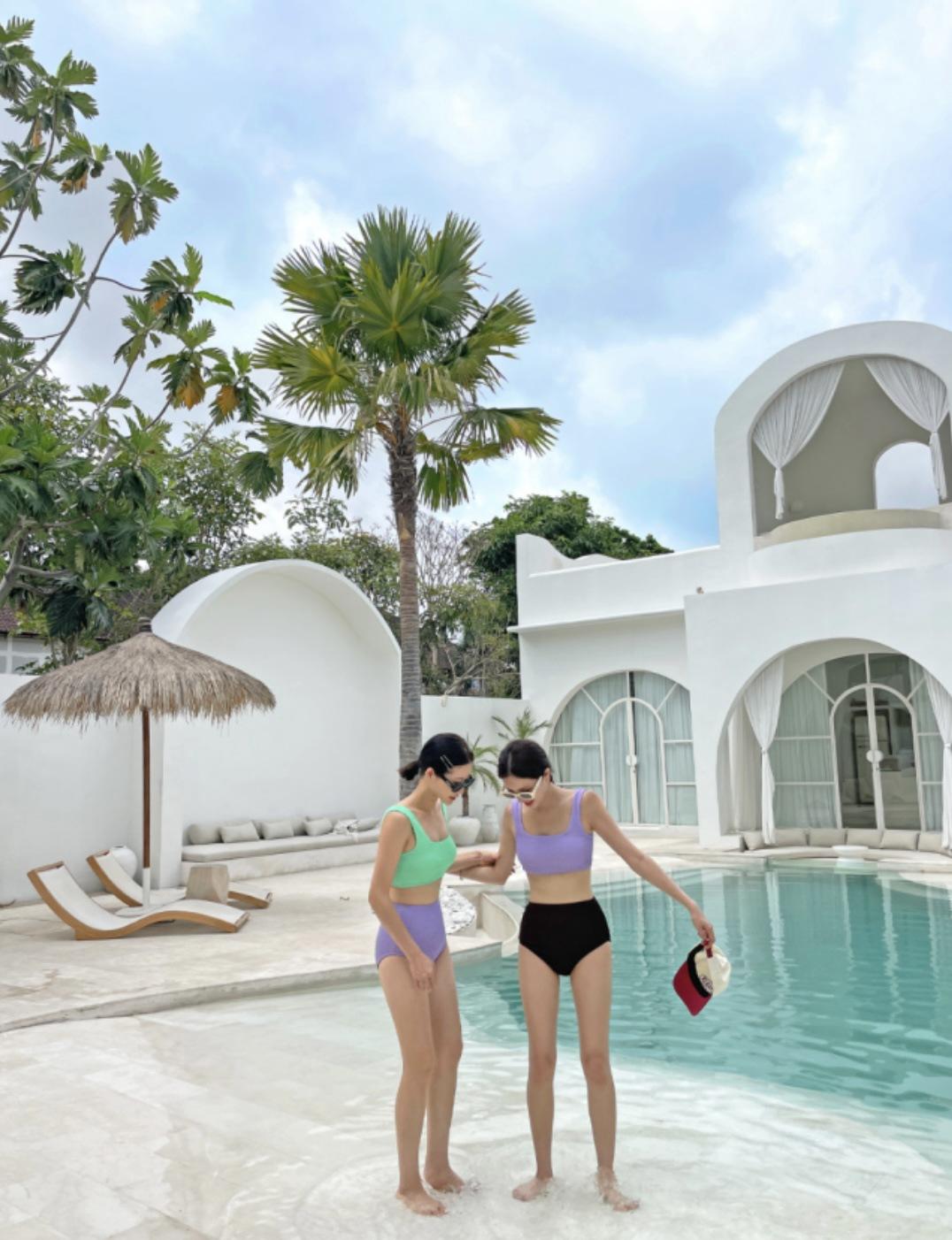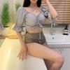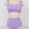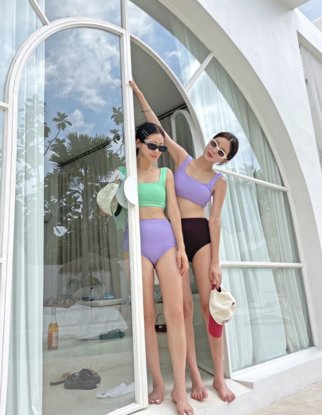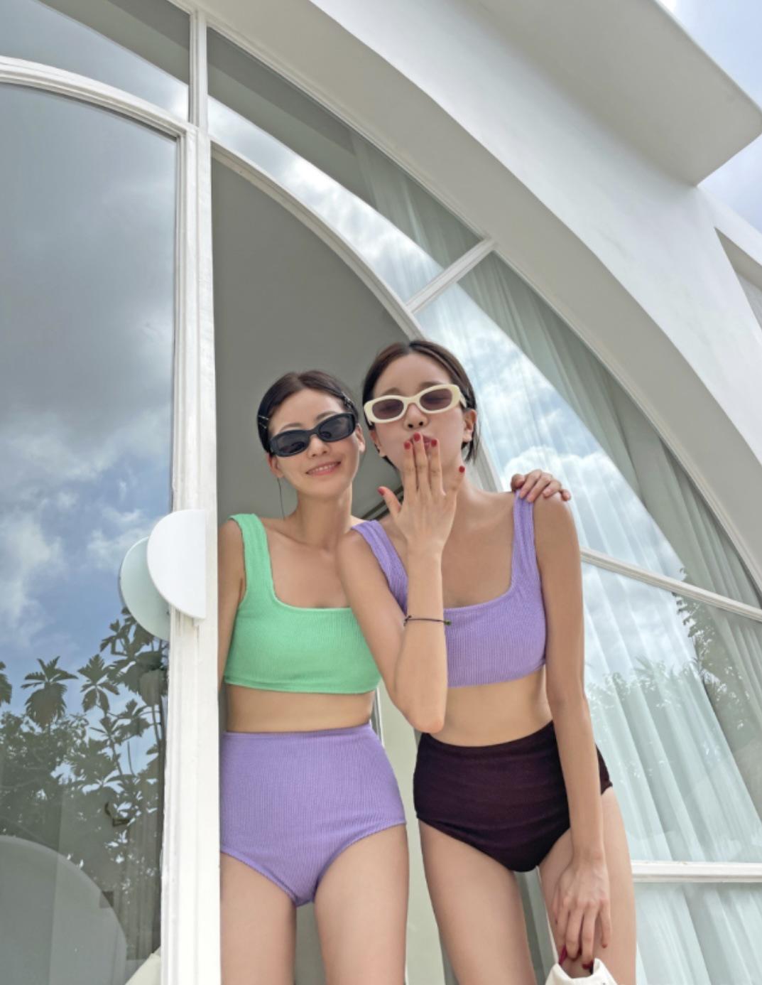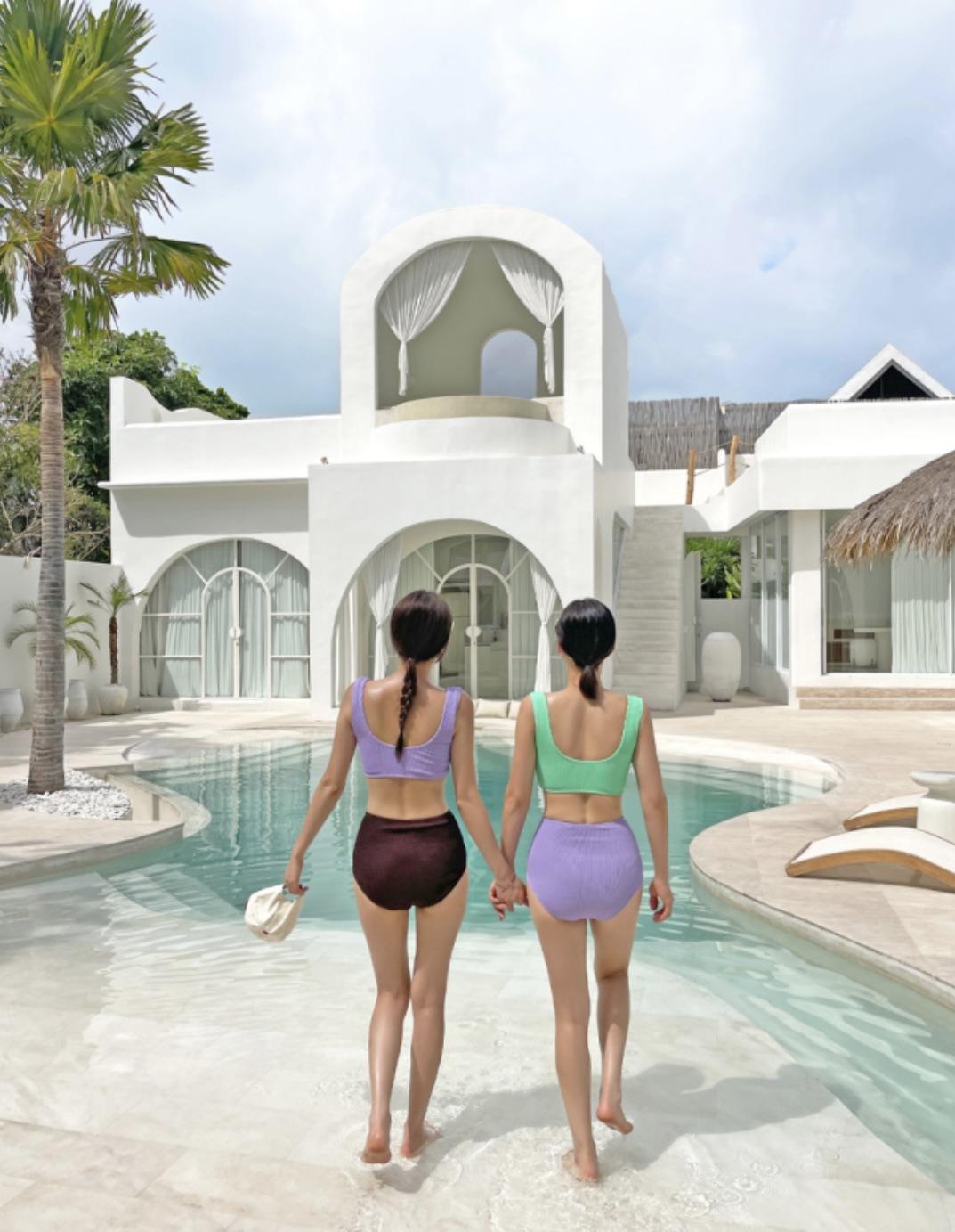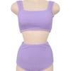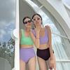 Traje de baño de estilo coreano 2025 con abertura en contraste de color sólido, bikini de cintura alta con tirantes para mujer, bikini para vacaciones de primavera.