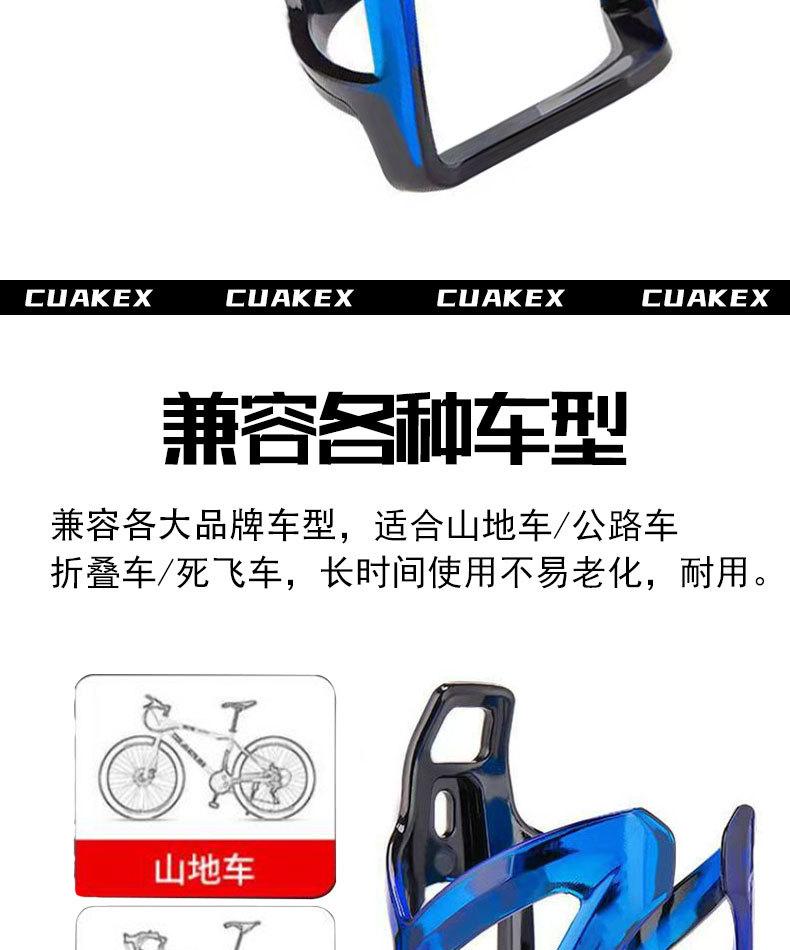 Black and purple two-color water bottle cage, Black and blue two-color water bottle cage, Black and red two-co...