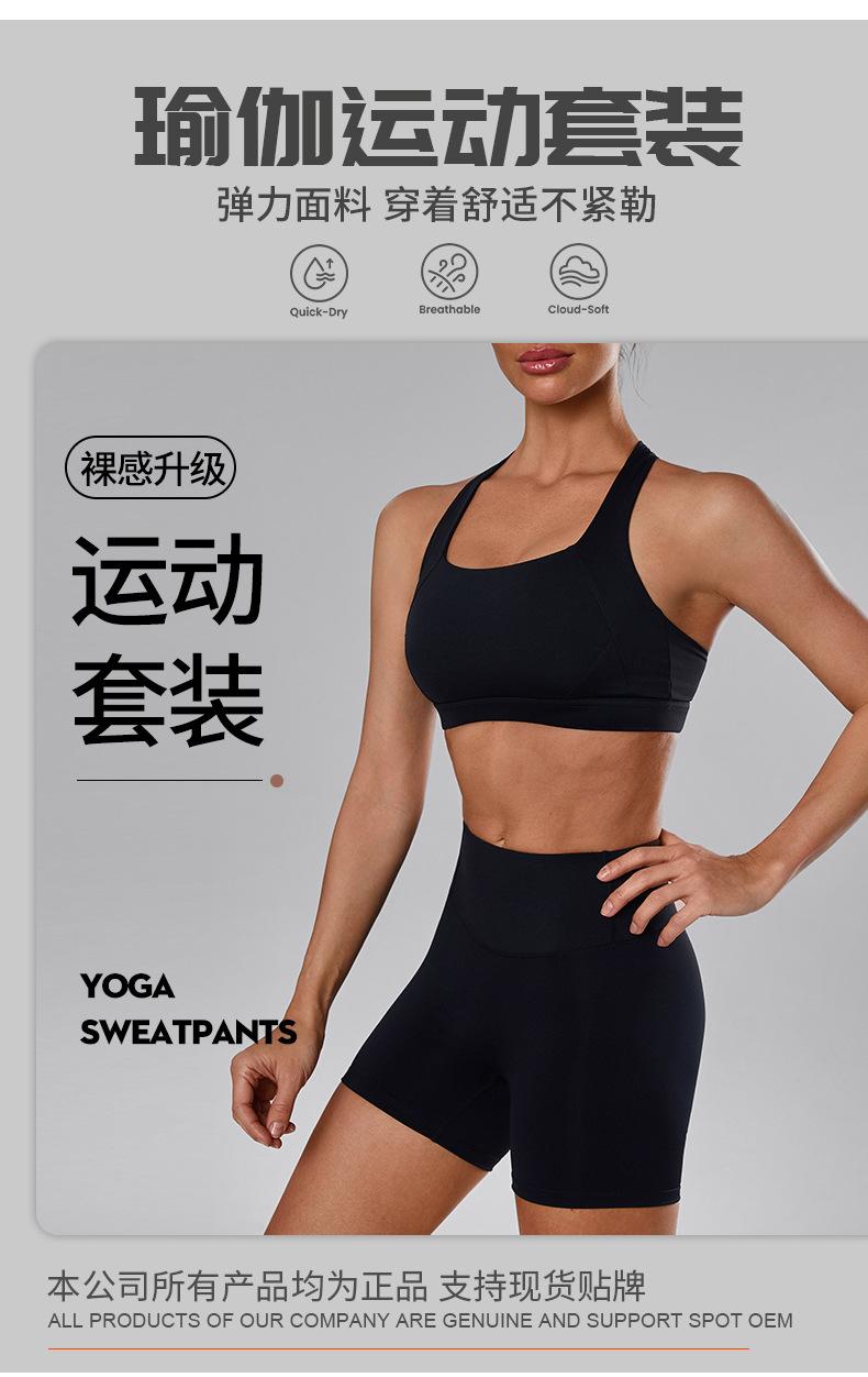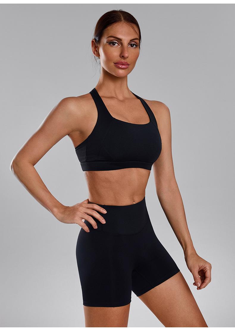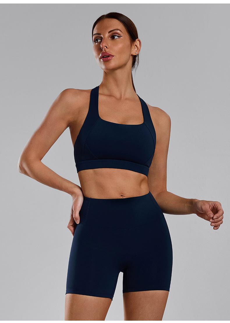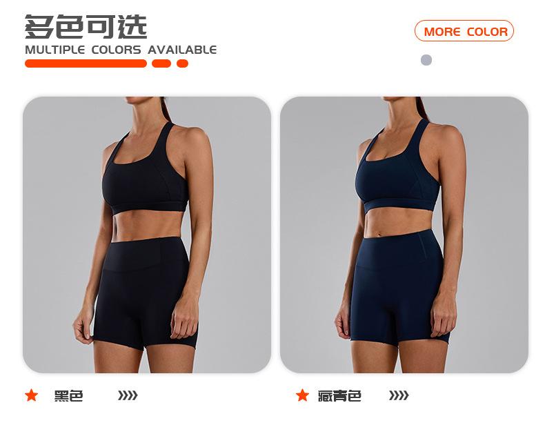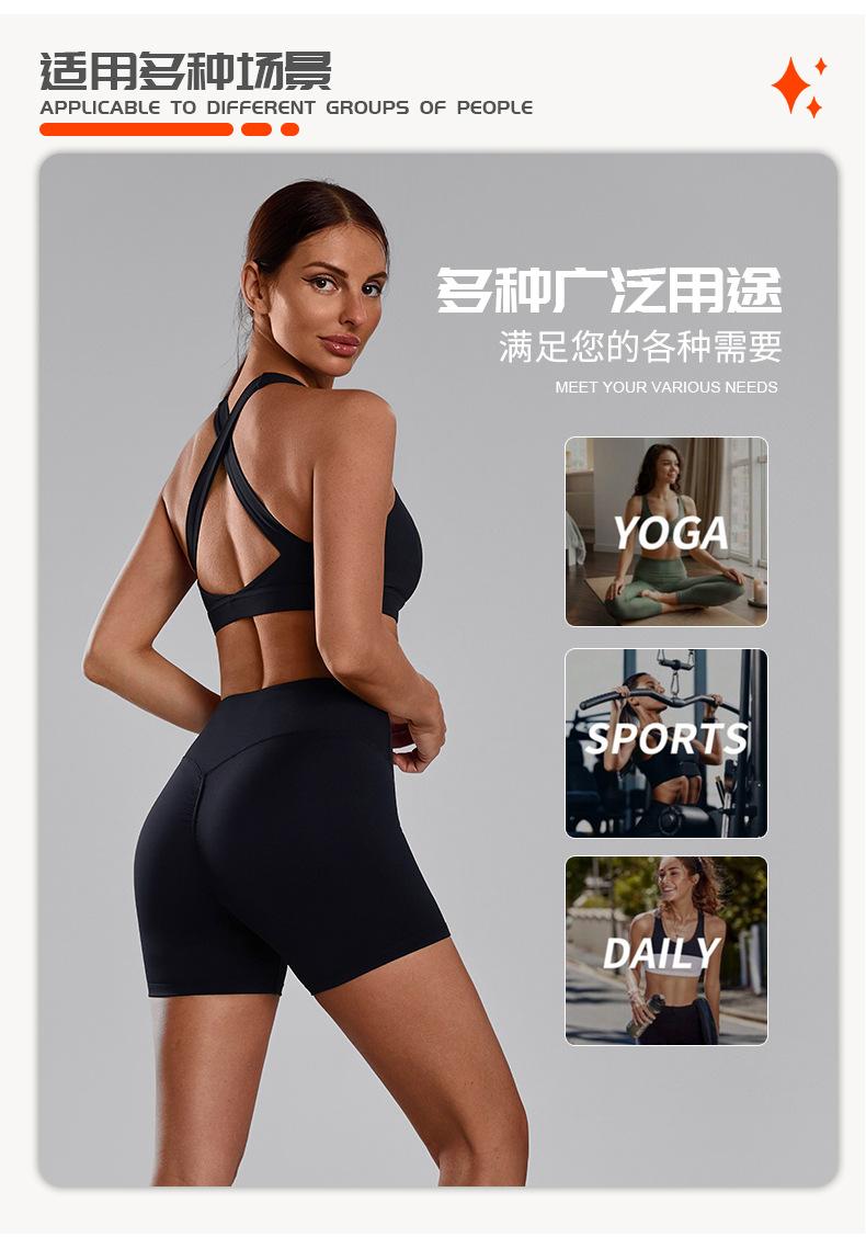 Conjunto de sujetador y pantalones cortos deportivos de primavera y verano 2025 para mujer, estilo europeo y americano, con espalda descubierta y alta elasticidad, de secado rápido, para fitness y yoga transfronterizo.