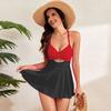 Traje de Baño Entero con Tirantes Cruzados 2025 Nuevo Europeo y Americano Combinación de Colores Sexy Hueco Triángulo Traje de Baño Bikini Amazon