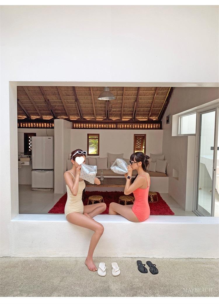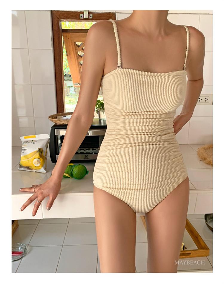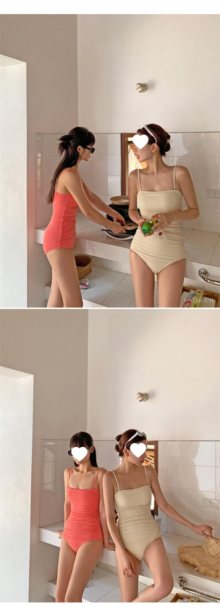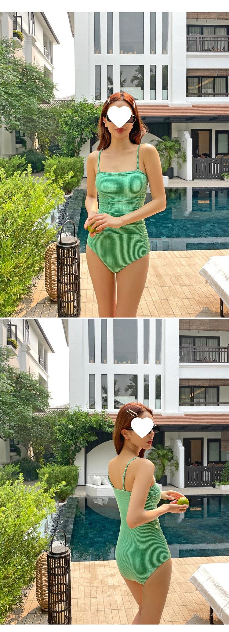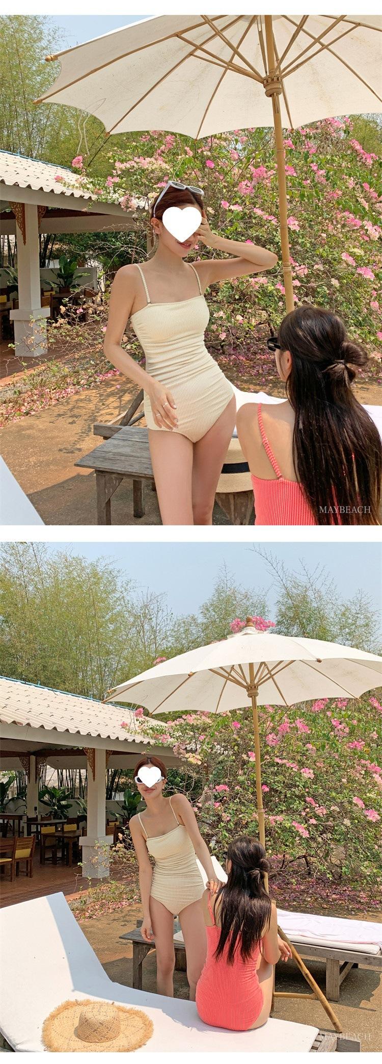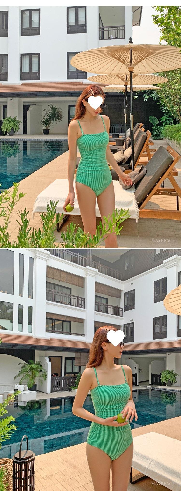 Traje de baño de estilo coreano 2025 para mujer, sexy, de color sólido, con tirantes, ajustado y moderno, que cubre el vientre.
