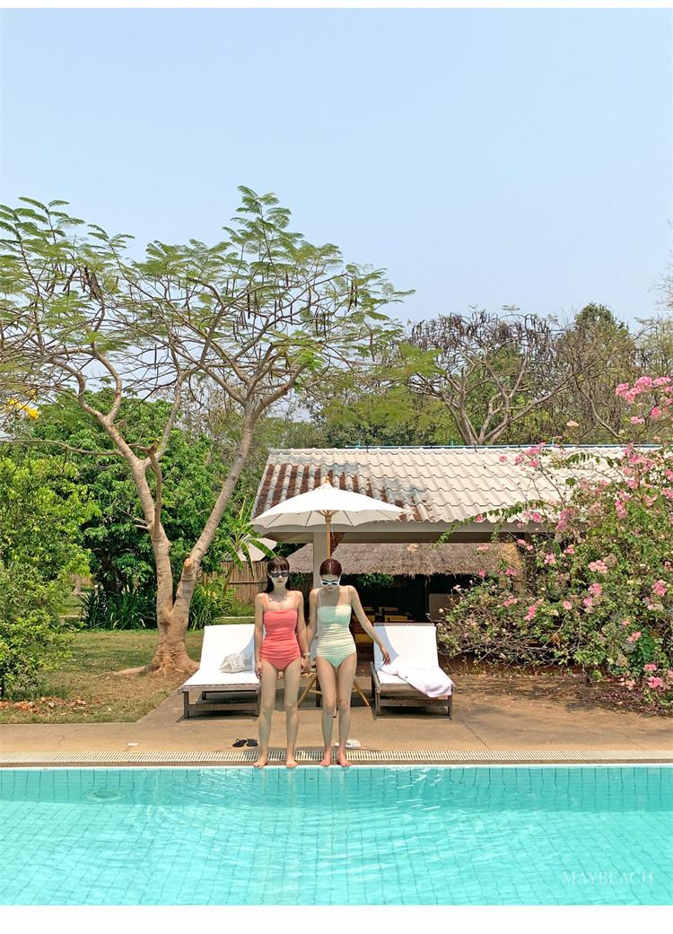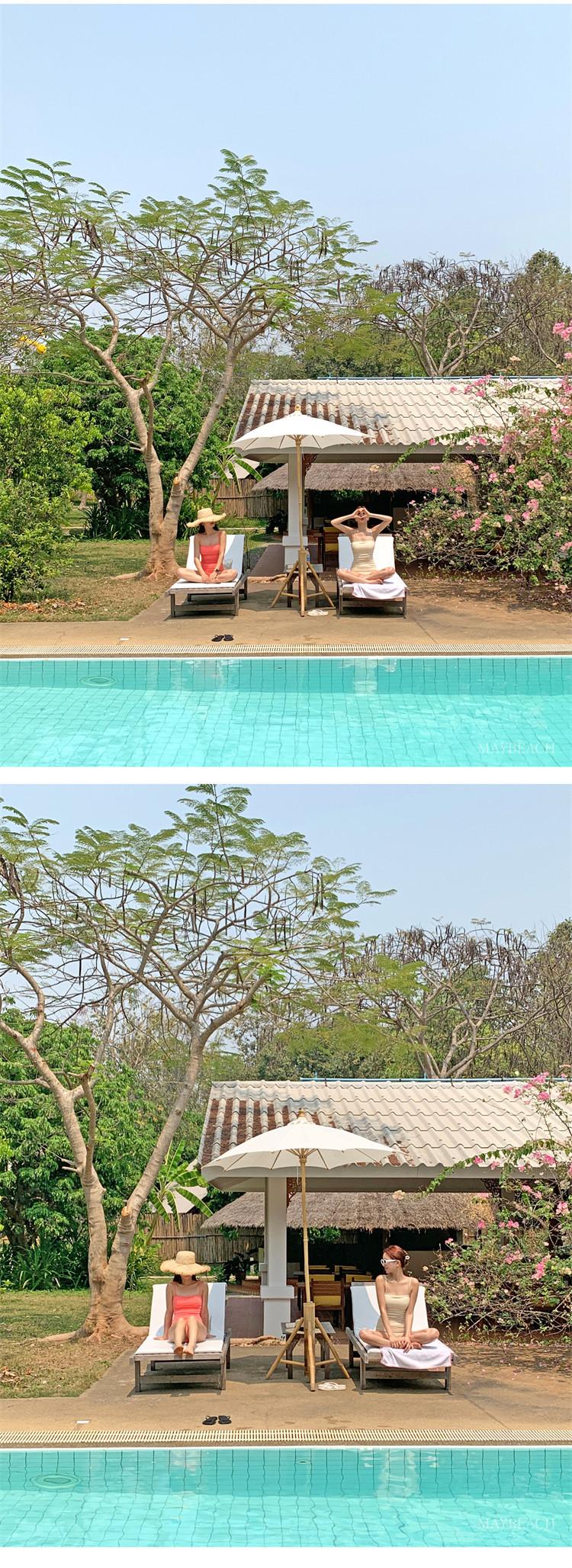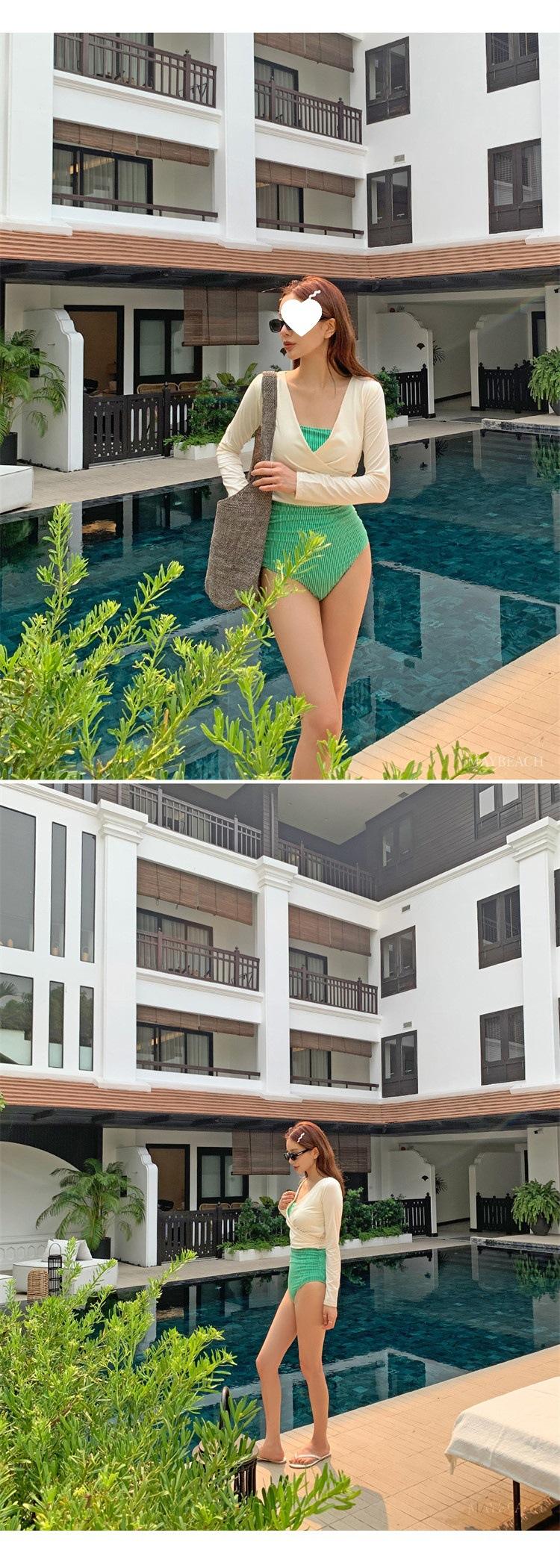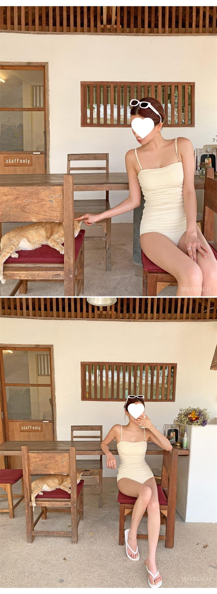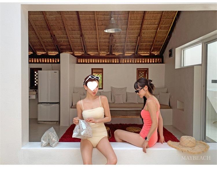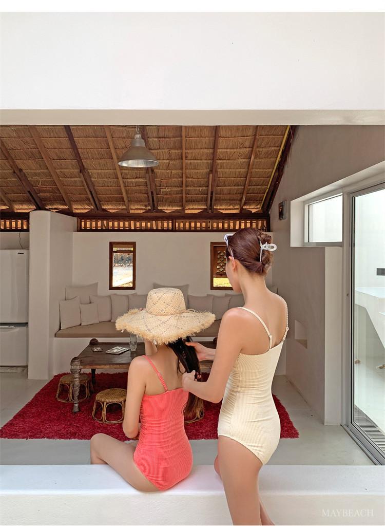 Traje de baño de estilo coreano 2025 para mujer, sexy, de color sólido, con tirantes, ajustado y moderno, que cubre el vientre.
