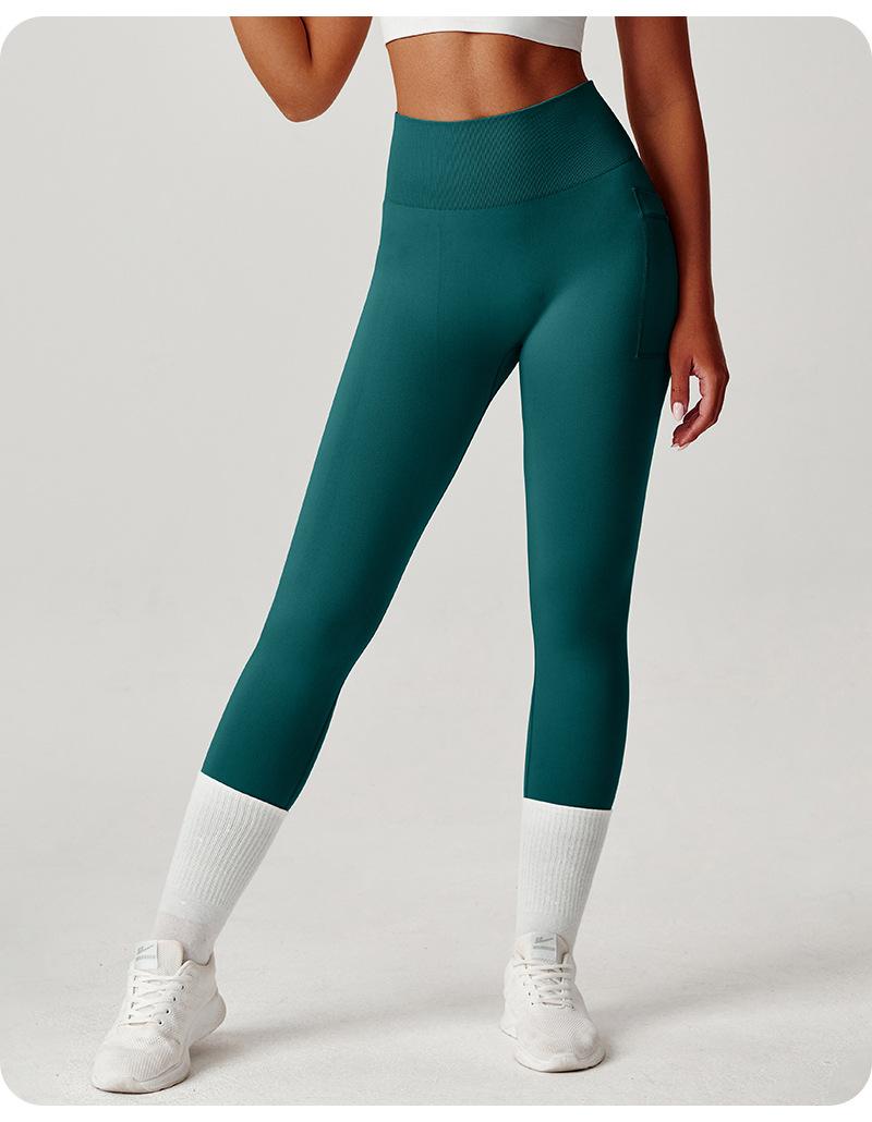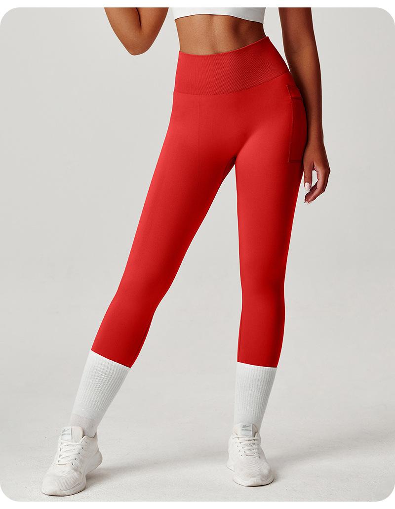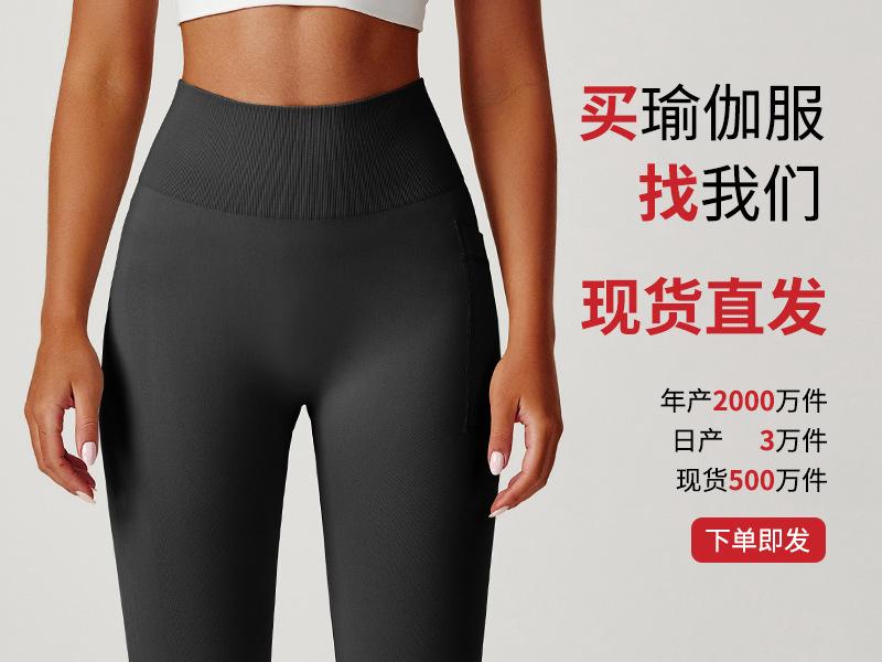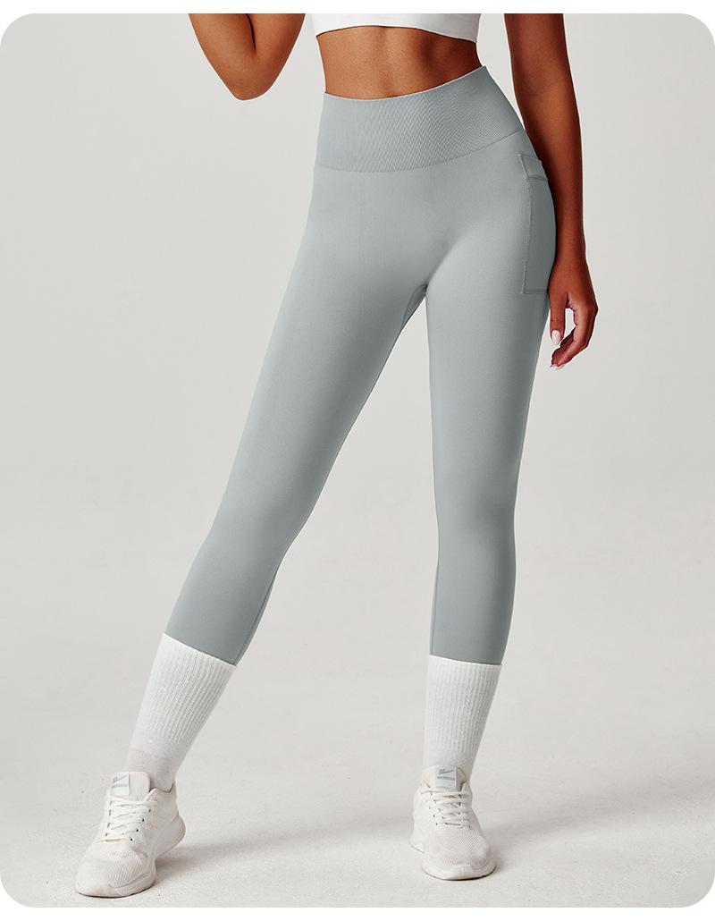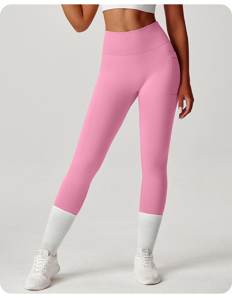 Pantalones de Yoga sin Costuras con Bolsillo Lateral Descubierto Cadera Melocotón Ropa Exterior para Mujer Cintura Alta Levanta Cadera Pantalones Ajustados para Deportes y Fitness