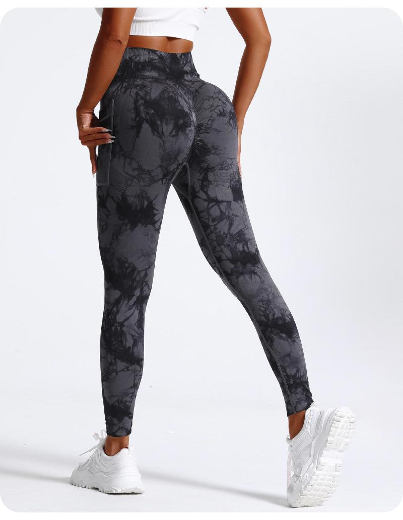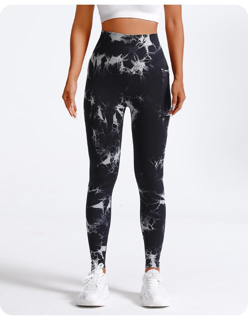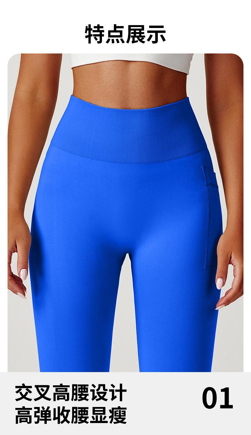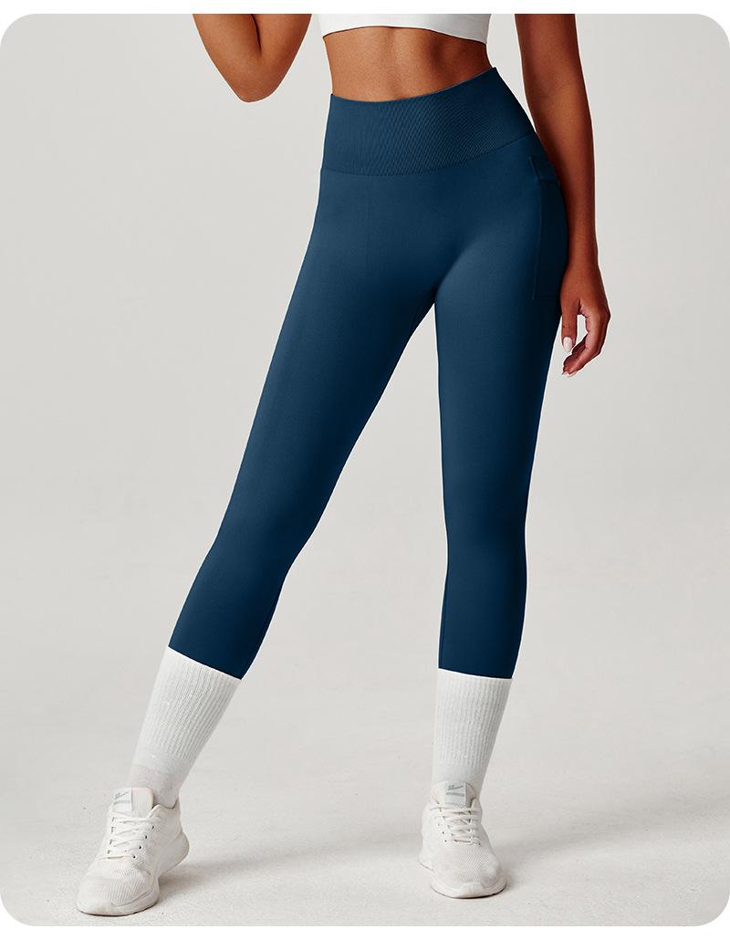 Pantalones de Yoga sin Costuras con Bolsillo Lateral Descubierto Cadera Melocotón Ropa Exterior para Mujer Cintura Alta Levanta Cadera Pantalones Ajustados para Deportes y Fitness