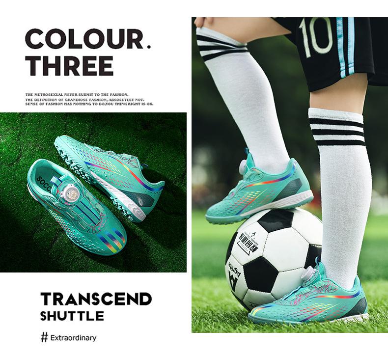 Nuevas zapatillas de fútbol para niños con hebilla giratoria TF con clavos rotos para estudiantes de primaria y secundaria, zapatillas de entrenamiento de competición, zapatillas de fútbol profesional.