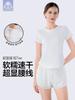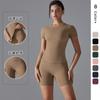 Traje deportivo para mujer, nueva ropa de yoga, running, fitness, ropa de secado rápido, talla grande, manga corta, dos piezas, pantalones antideslumbrantes de tres piezas.