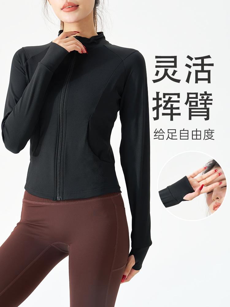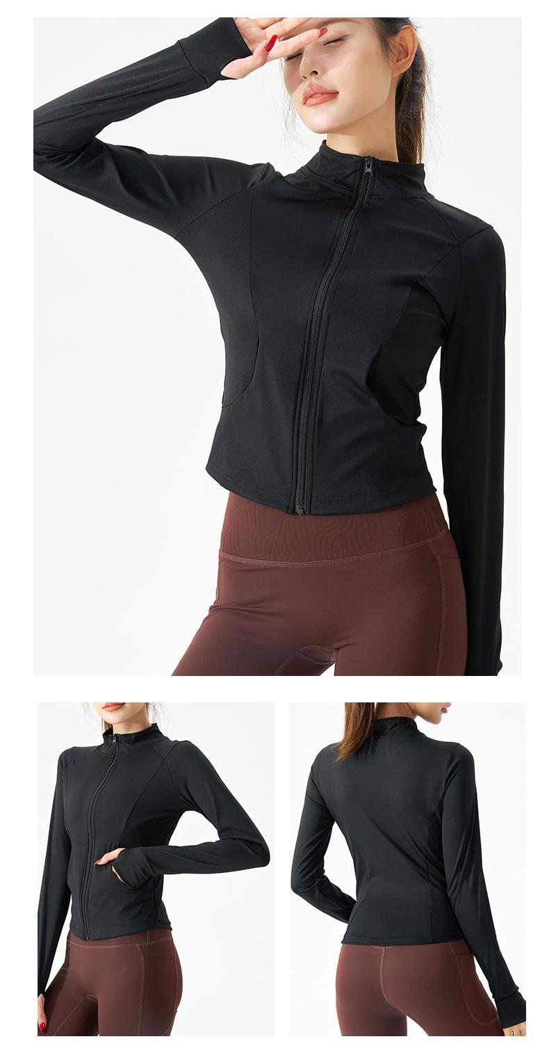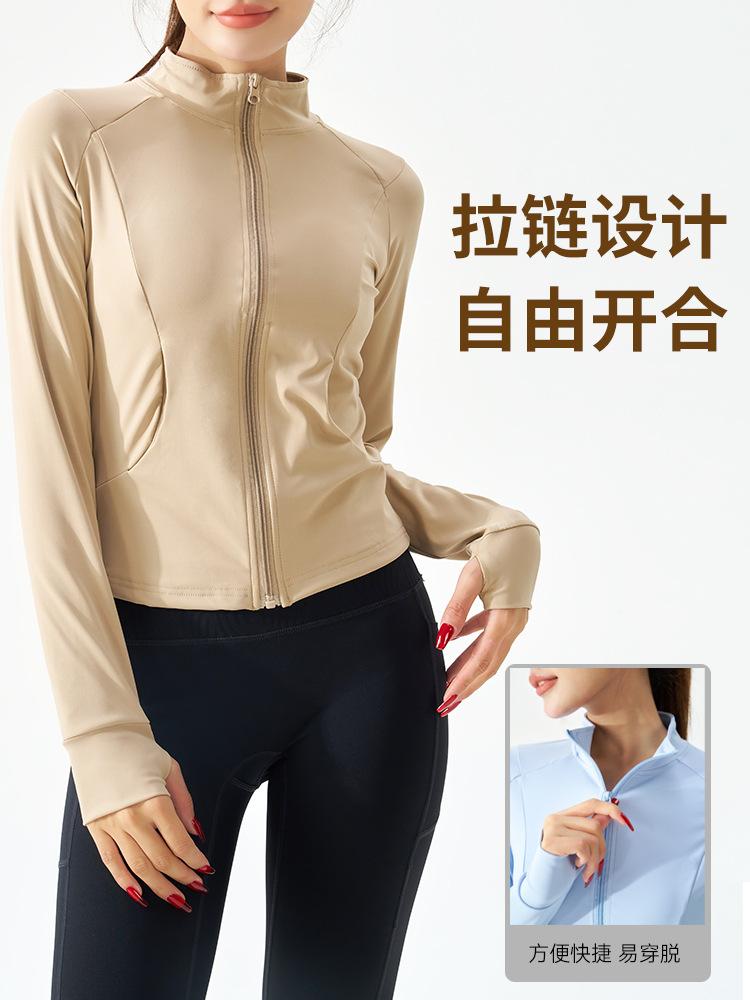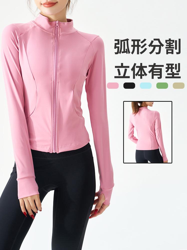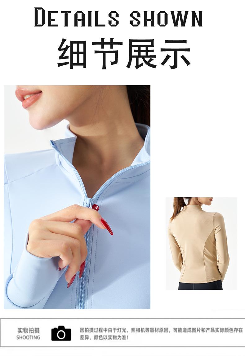 Traje de Yoga LULU Estilo Similar Cuello Desnudo Cremallera Adelgazante Transpirable Ajustado Secado Rápido Top Chaqueta para Correr Fitness de Mujer