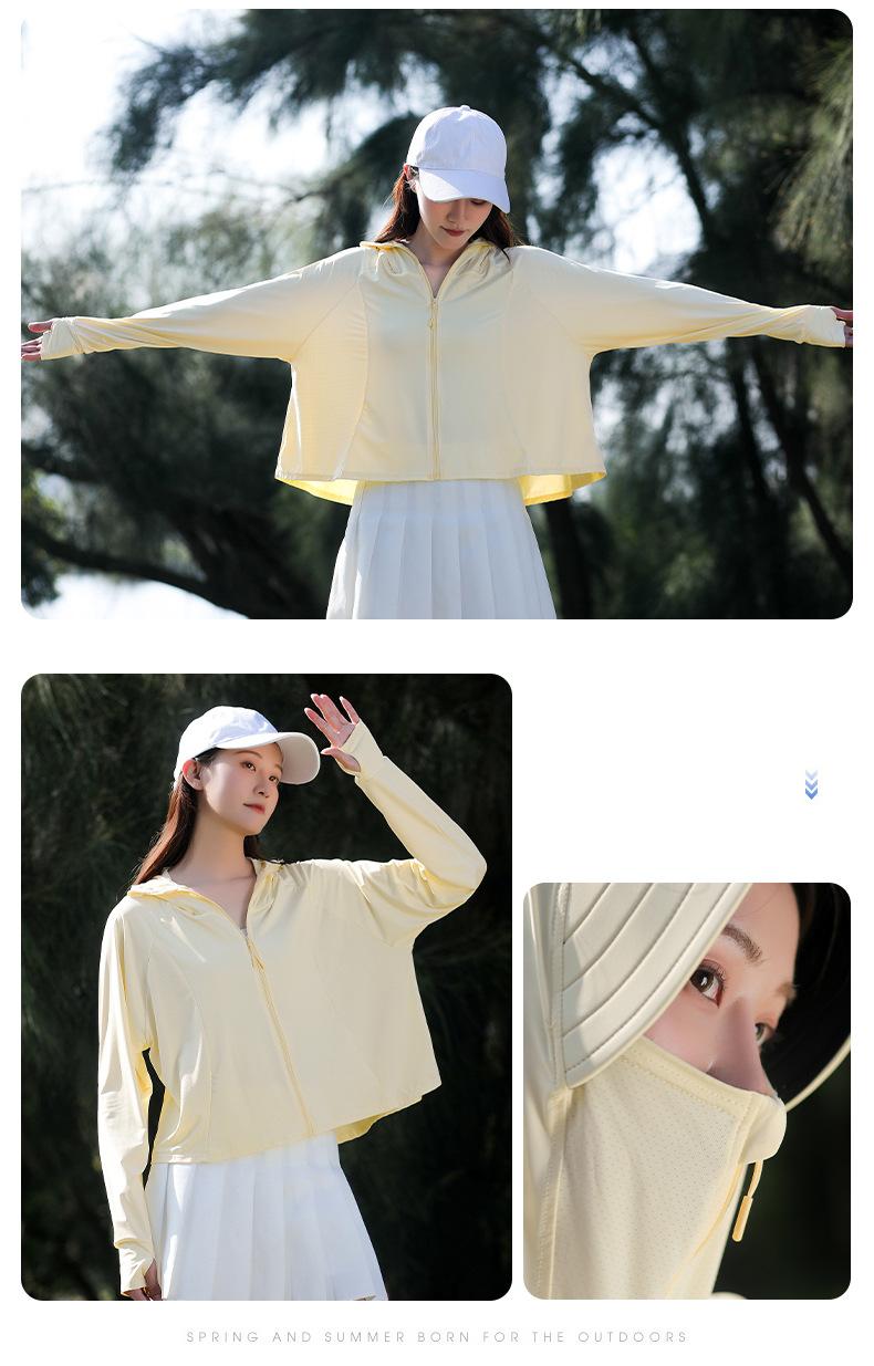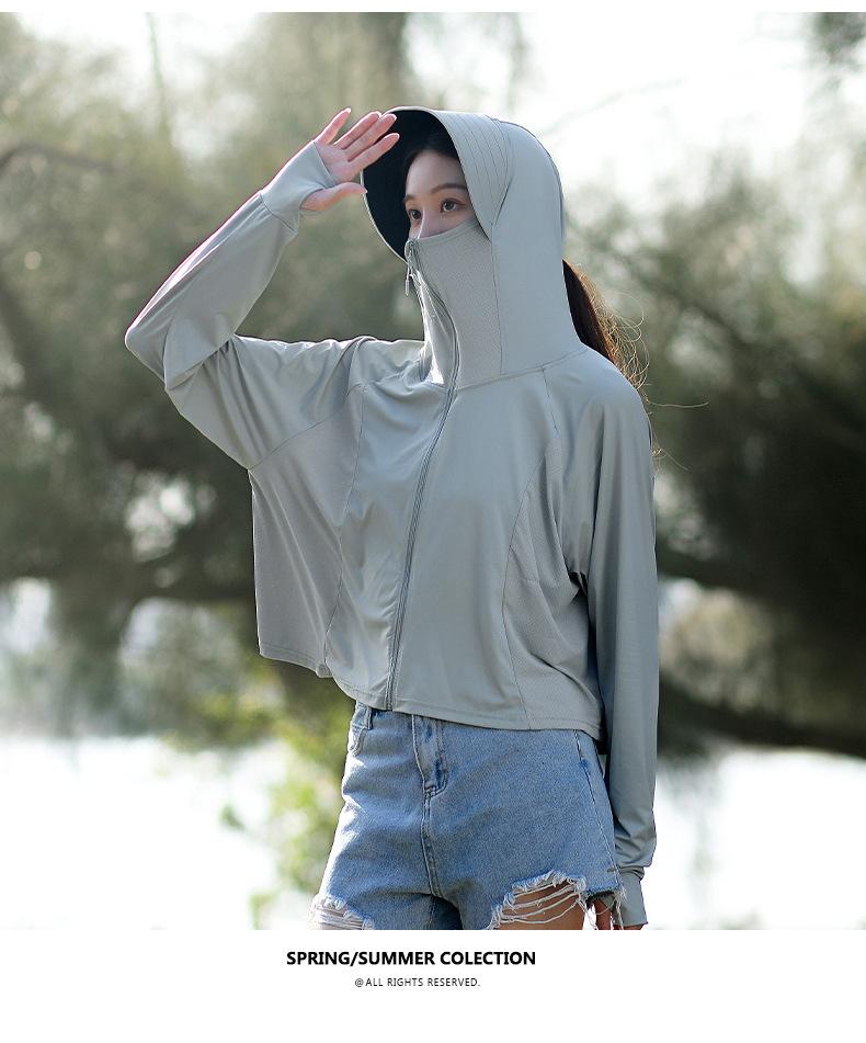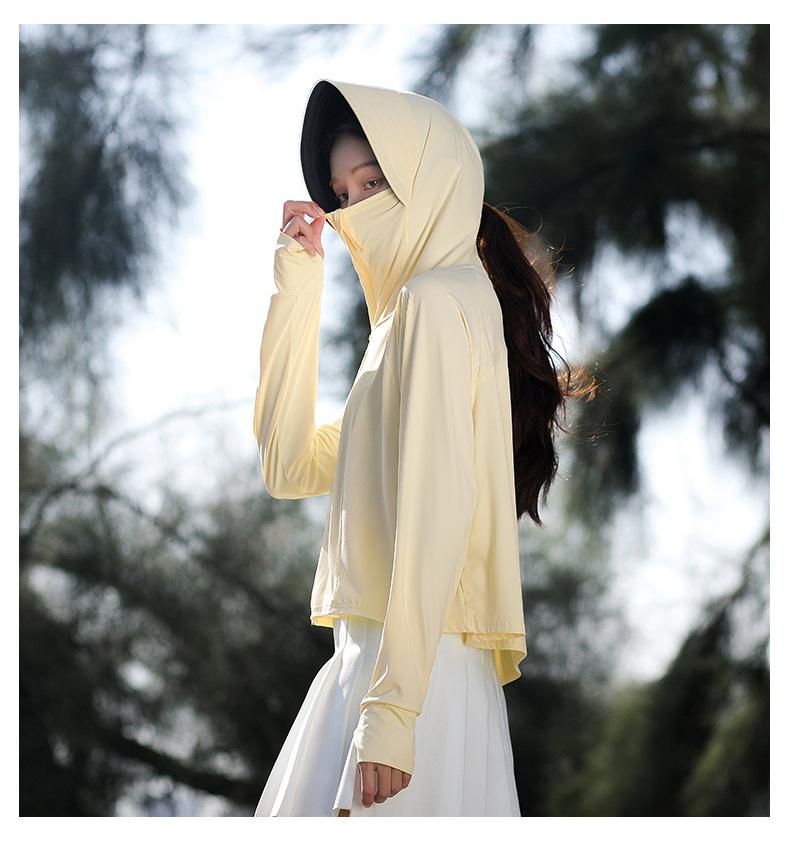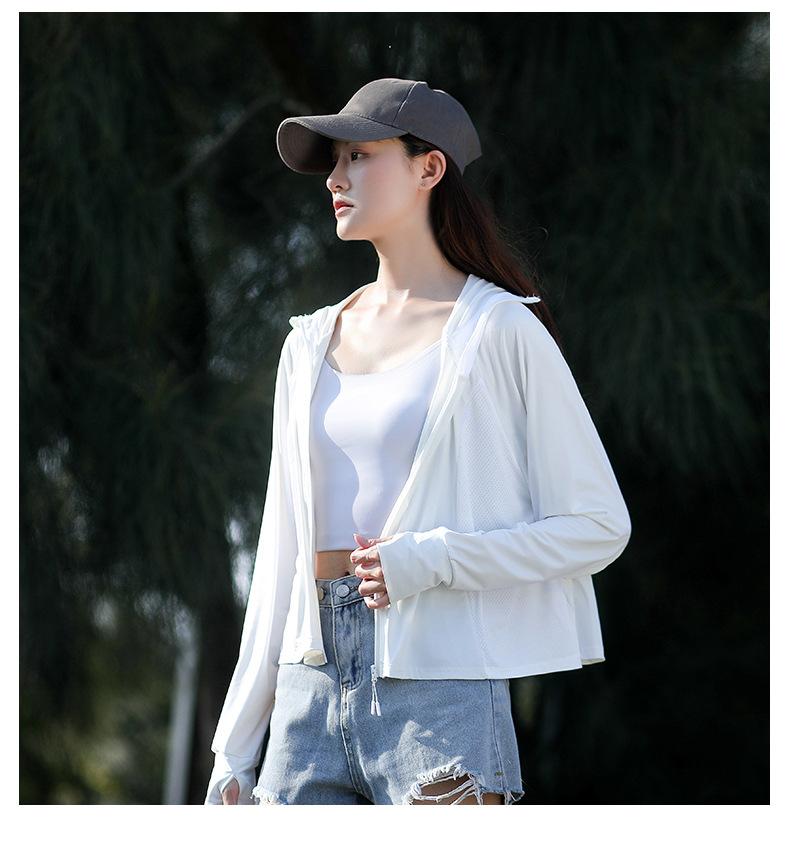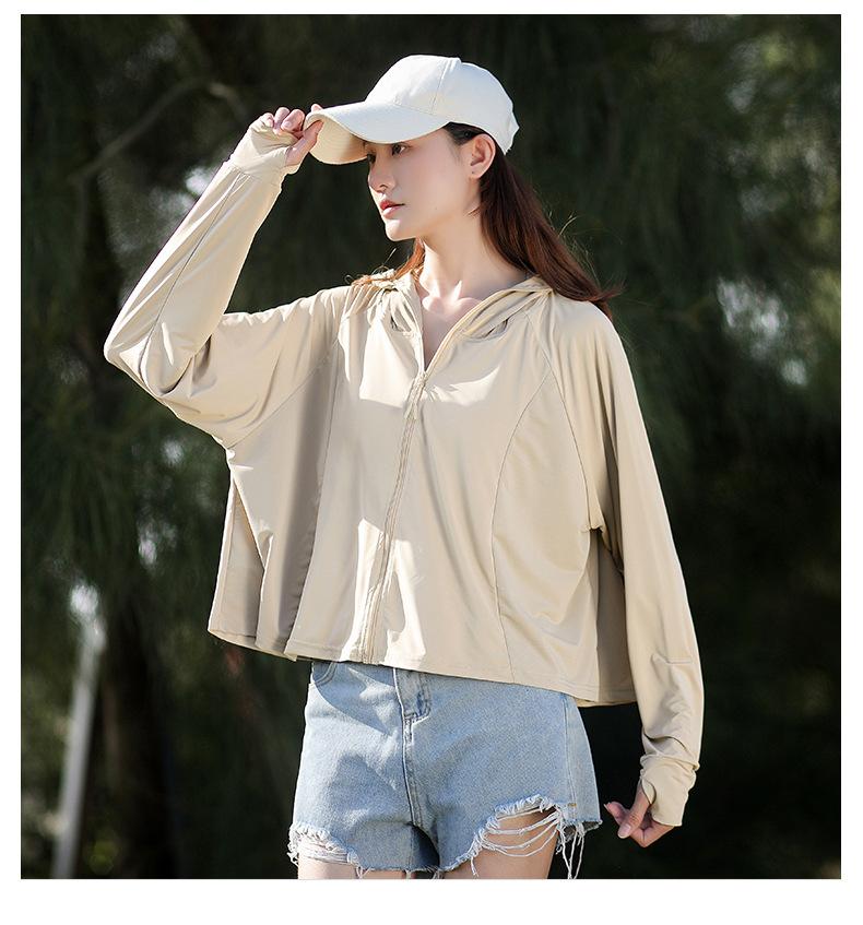 Ropa de protección solar tipo bolsa para mujer, sensación de hielo, transpirable, amigable con la piel, resistente a los rayos UV, UPF50, ropa corta esponjosa para la piel para mujer