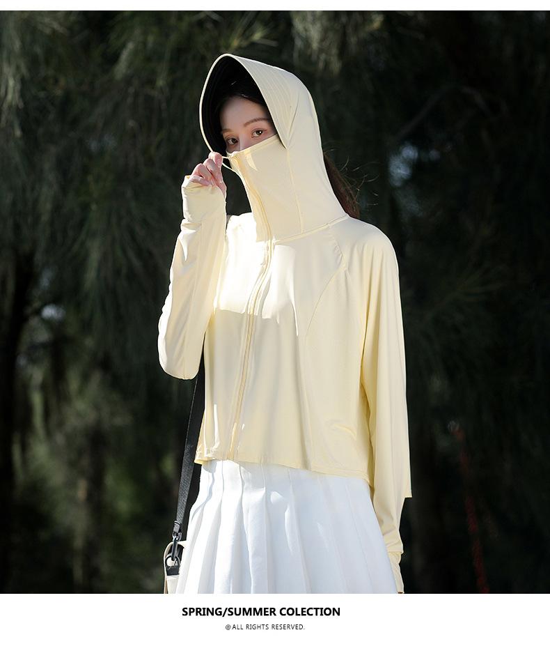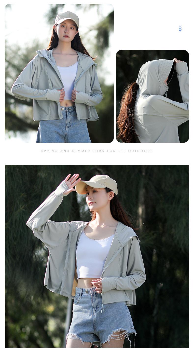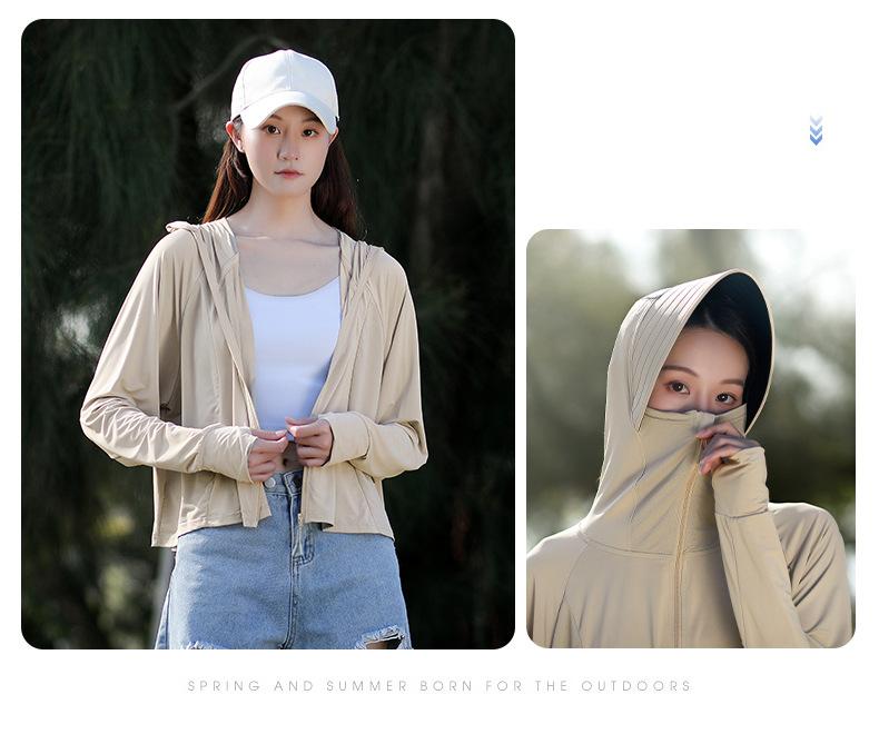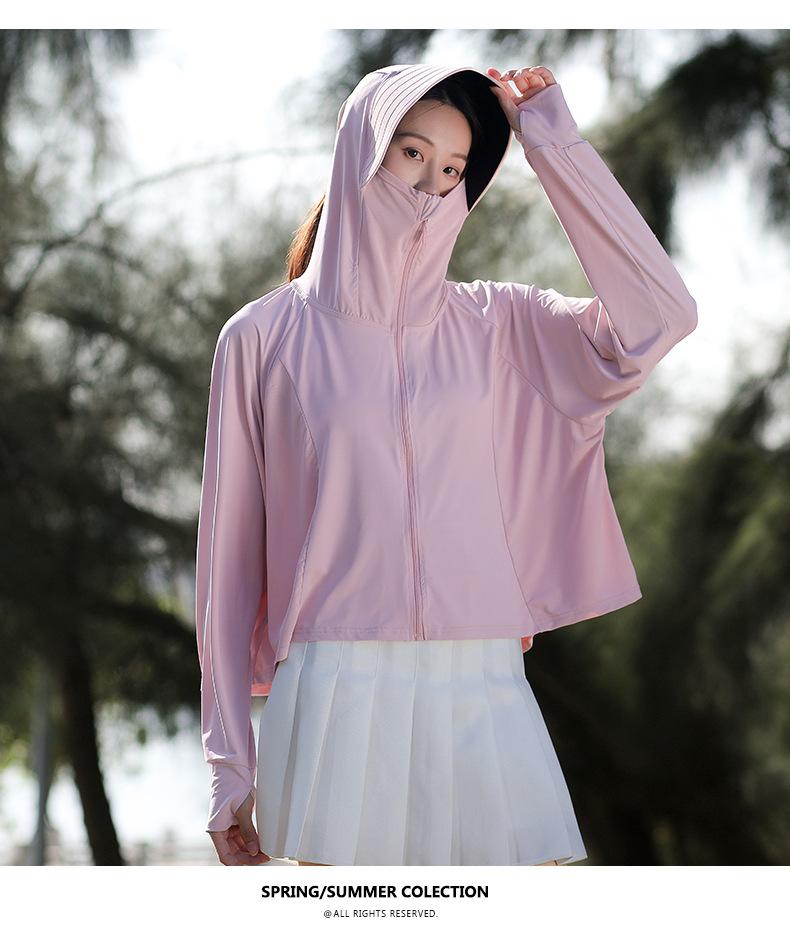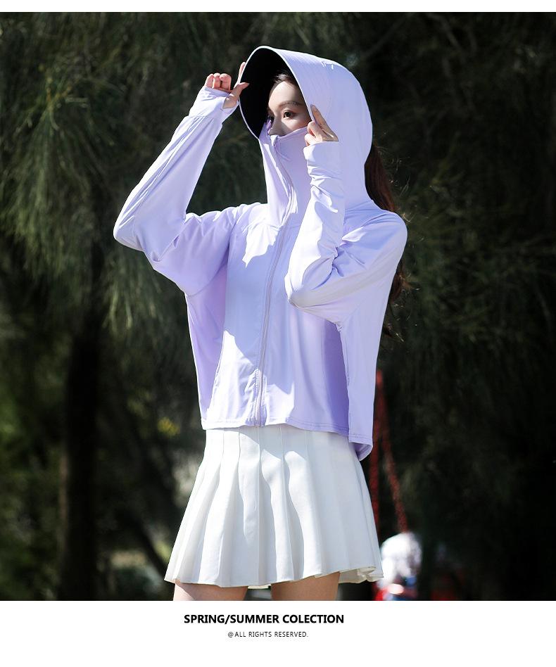 Ropa de protección solar tipo bolsa para mujer, sensación de hielo, transpirable, amigable con la piel, resistente a los rayos UV, UPF50, ropa corta esponjosa para la piel para mujer