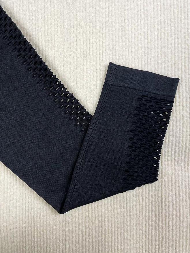 Pantalones de yoga sin costuras transfronterizos europeos y americanos, nuevos, de malla negra, transpirables, de cintura alta, ajustados, para fitness y deportes, 2025