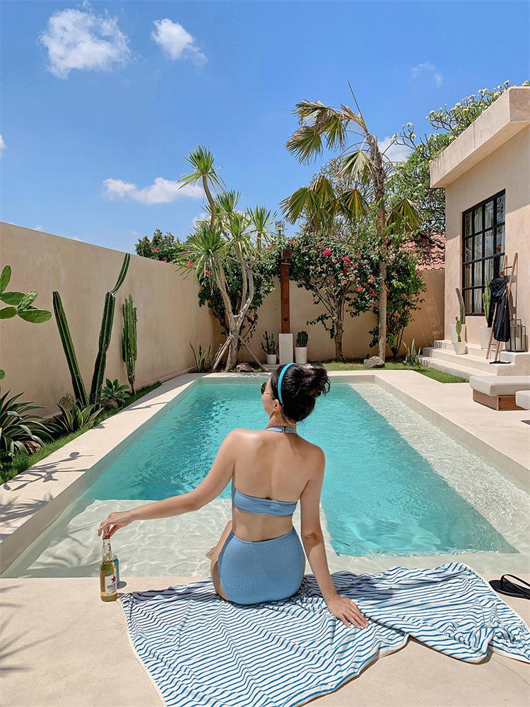 Traje de Baño Coreano Estilo 2025 Nuevo Color Sólido Espalda Descubierta Bikini Sexy de Tirantes para Mujer Bikini Caliente para Vacaciones en Aguas Termales
