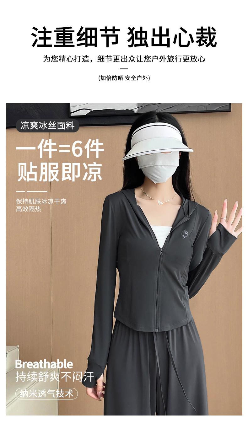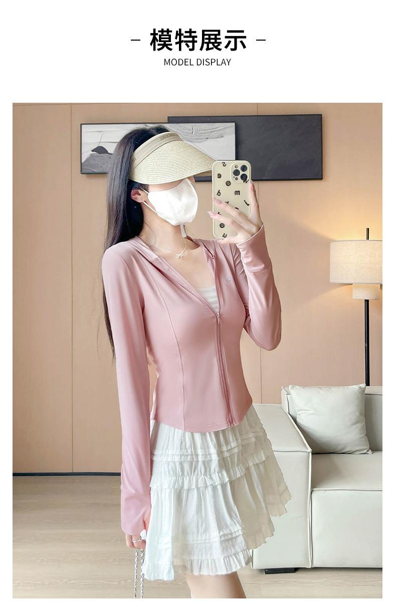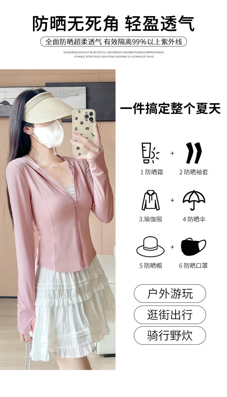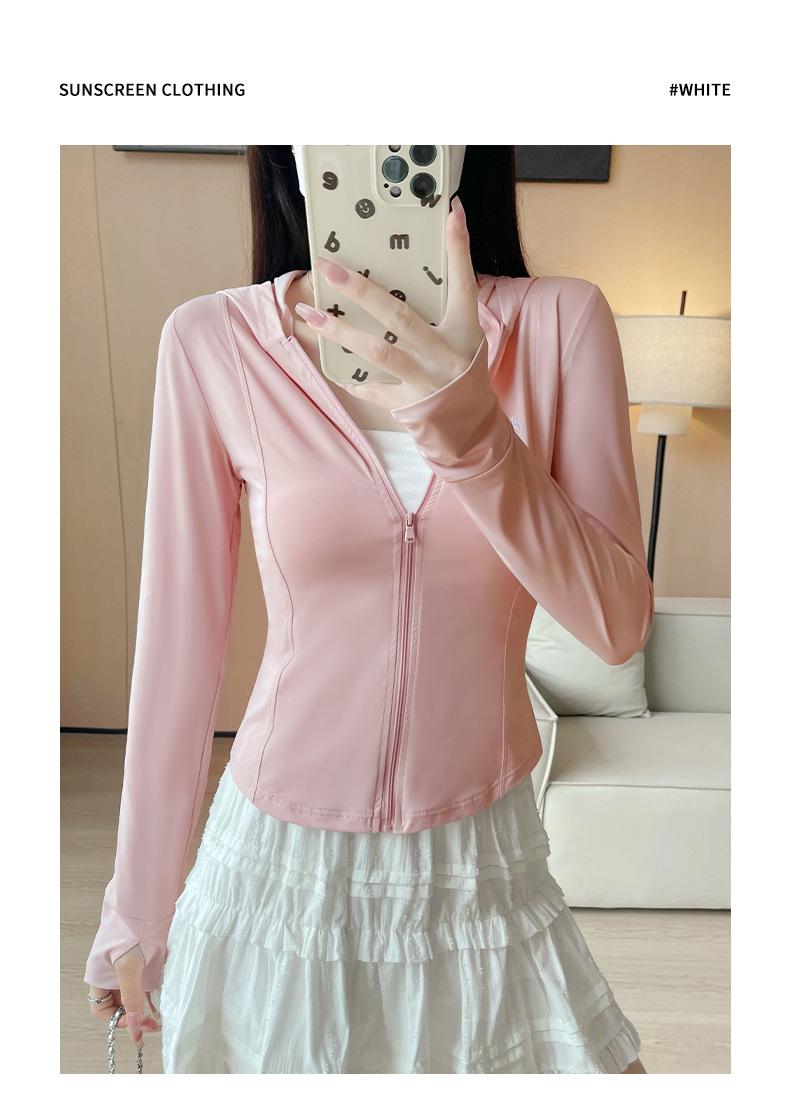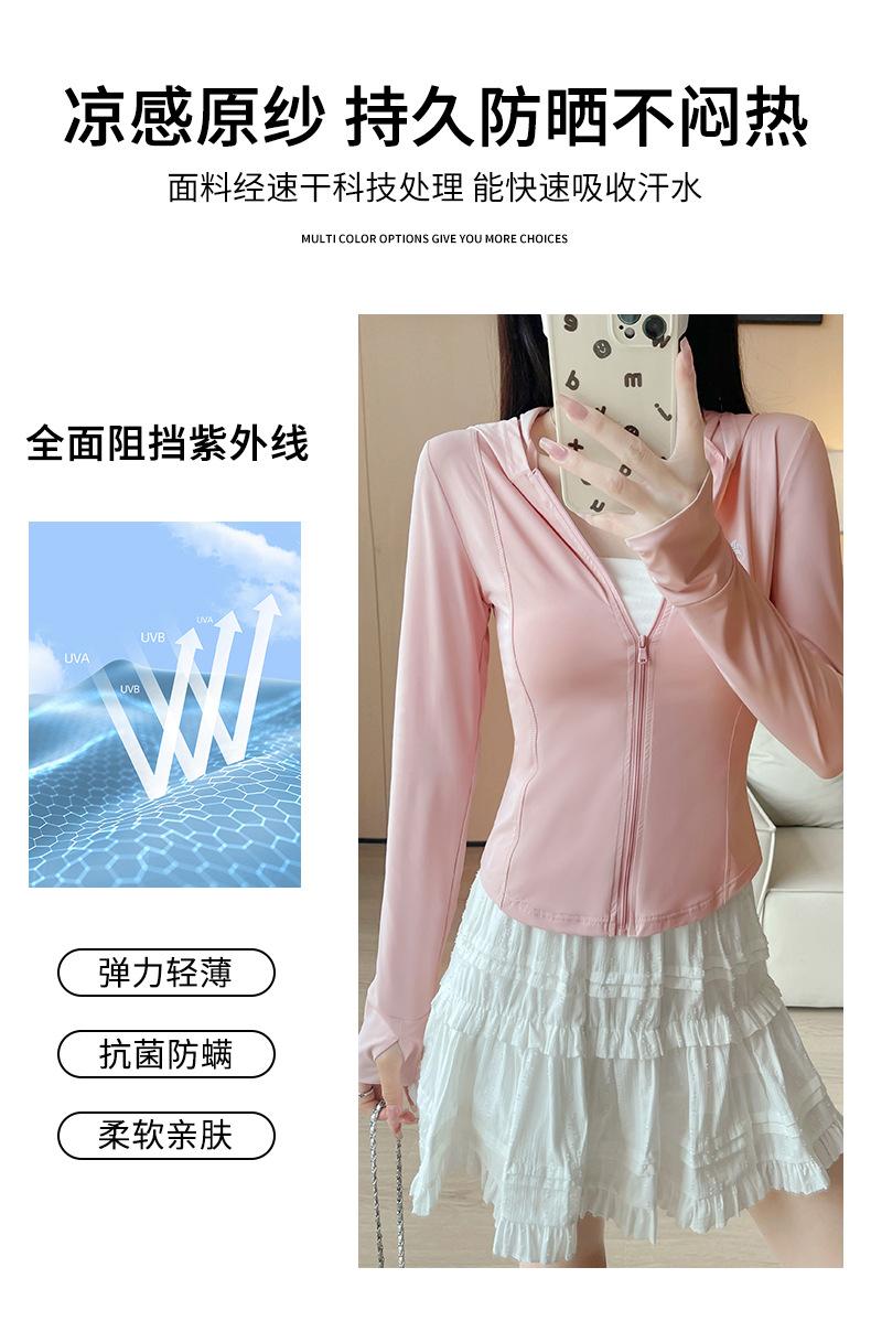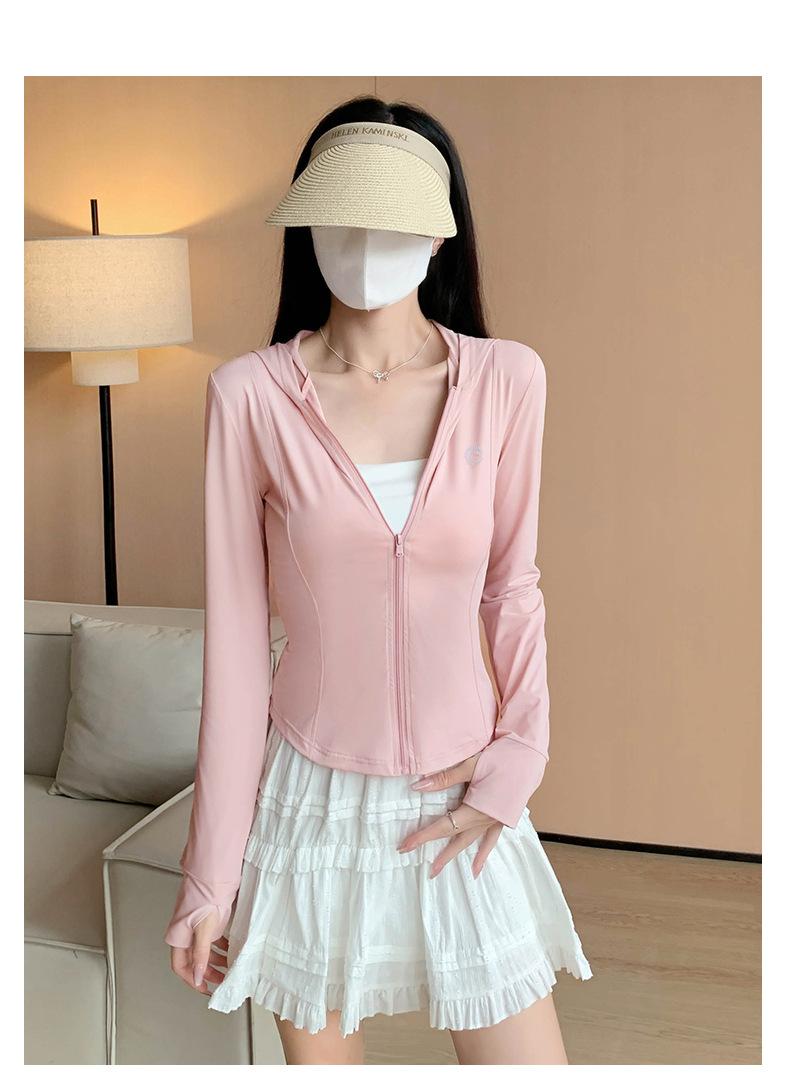 Ropa de protección solar de seda de hielo rosa para mujer, ropa fina de verano para exteriores con protección UV, abrigo corto ajustado y ajustado.