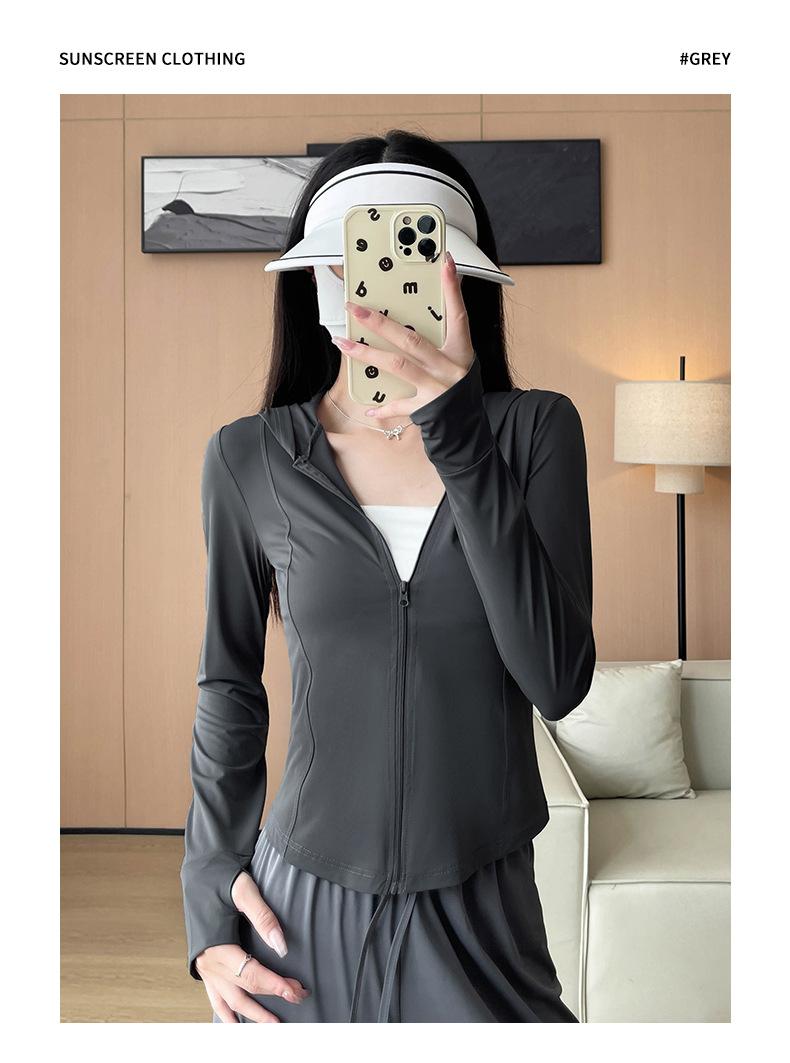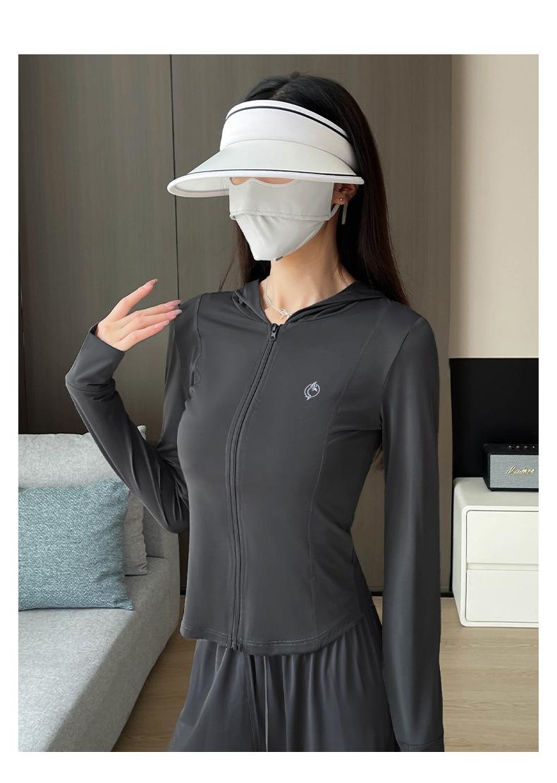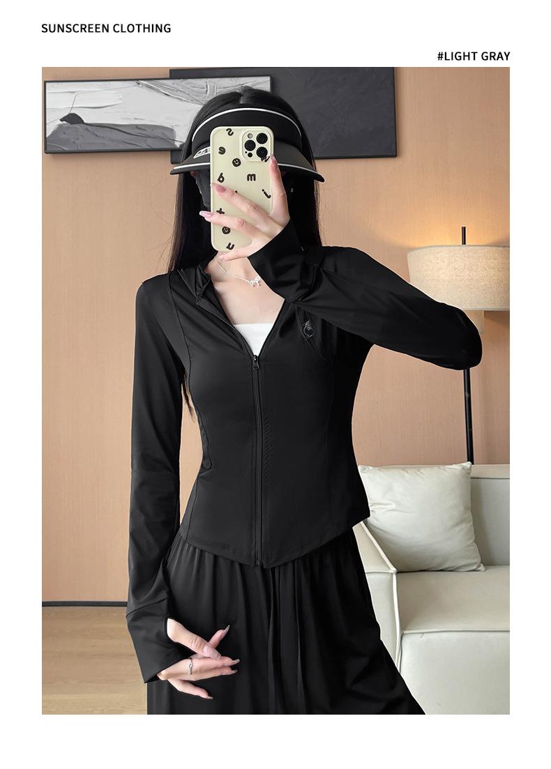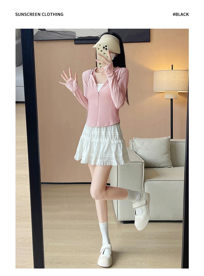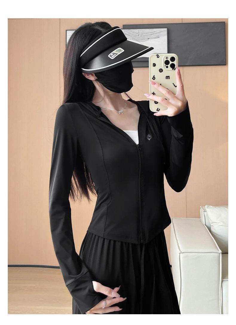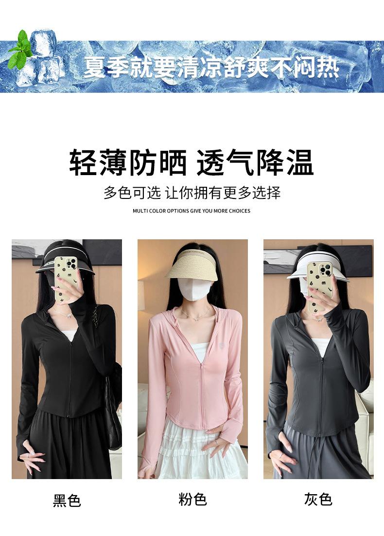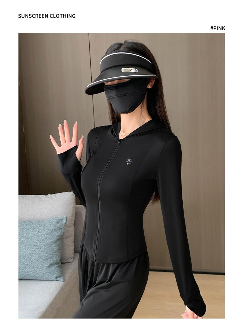 Ropa de protección solar de seda de hielo rosa para mujer, ropa fina de verano para exteriores con protección UV, abrigo corto ajustado y ajustado.