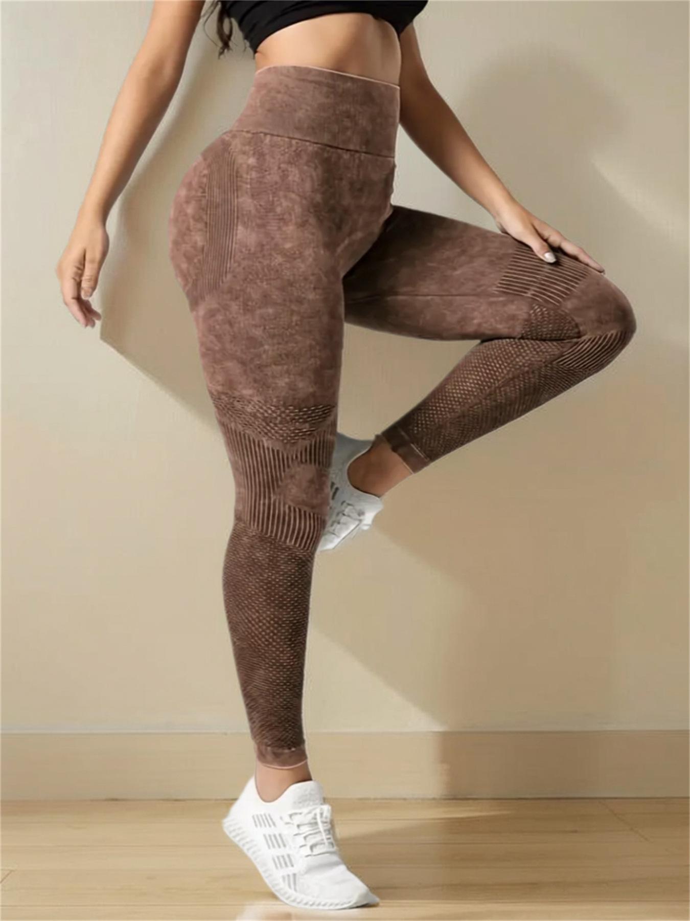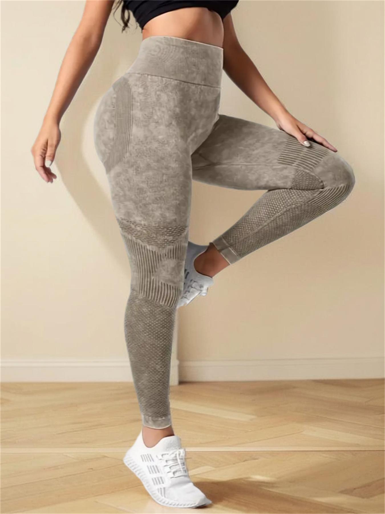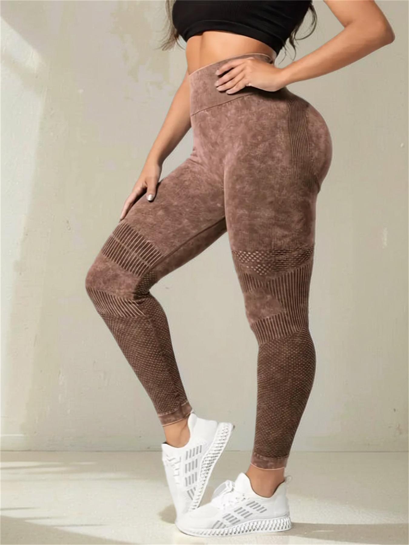 Pantalones de Fitness para Mujer Lavado a la Arena Cintura Alta Moldeadores de Abdomen Levanta Caderas Pantalones de Yoga Elásticos de Secado Rápido Pantalones Ajustados de Entrenamiento Deportivo Explosiones