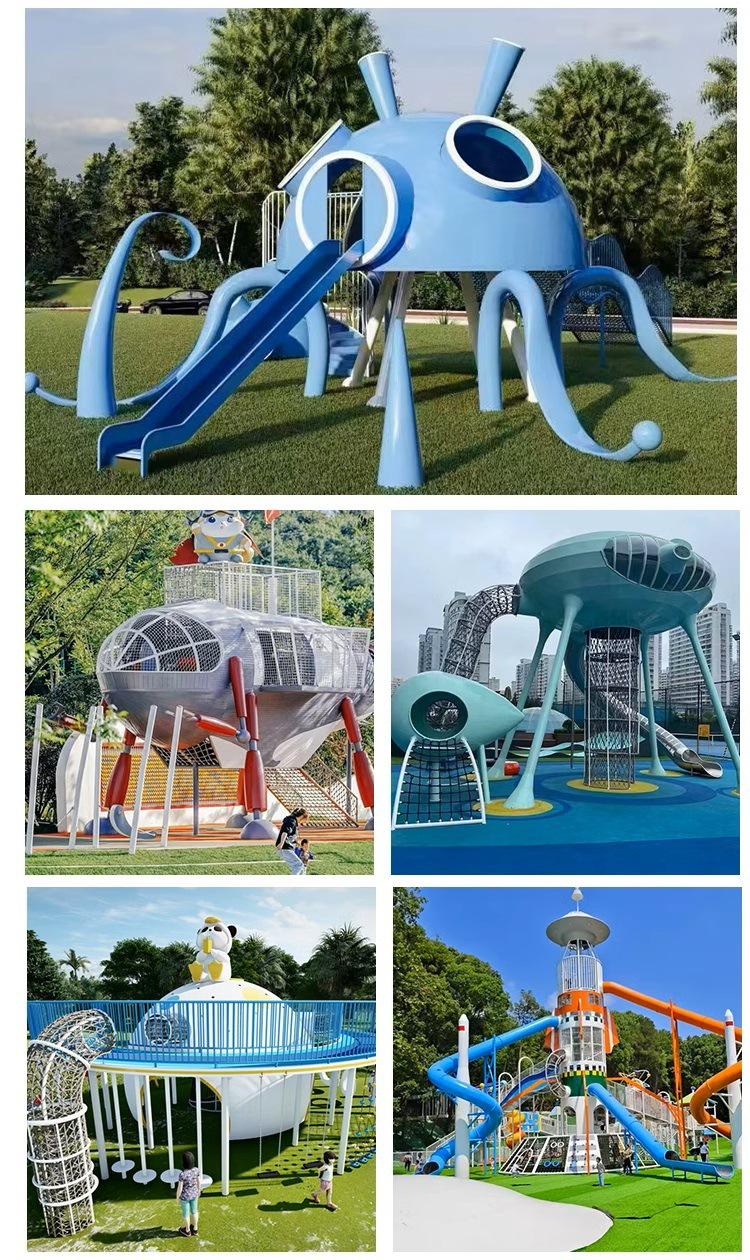 Habitación del Fabricante Exterior Sin Alimentación Escalada Punto Escénico para Niños Forma No Estándar Acero Inoxidable Tobogán Combinado Equipo de Diversión