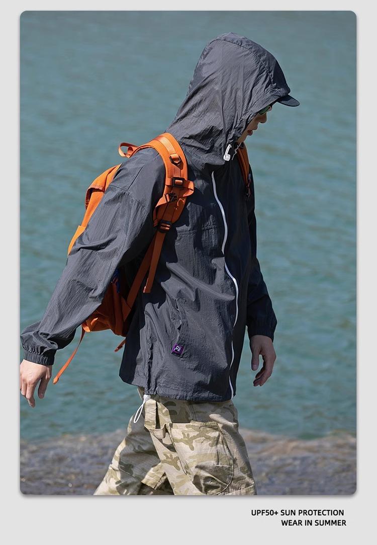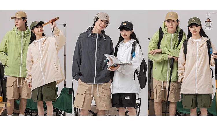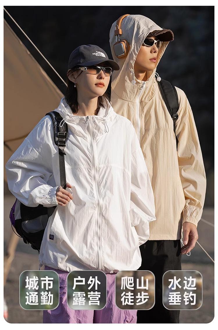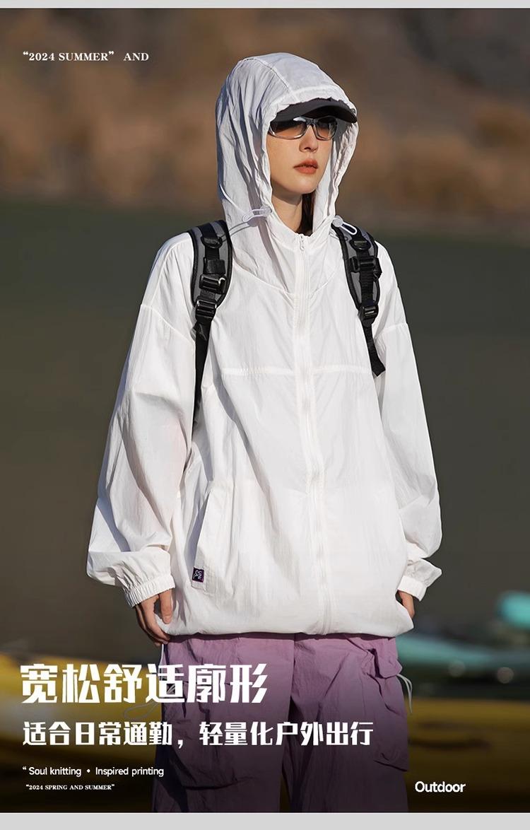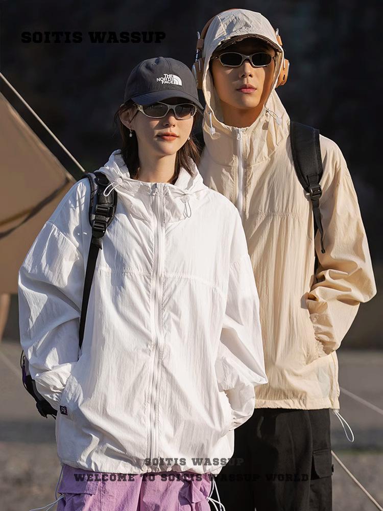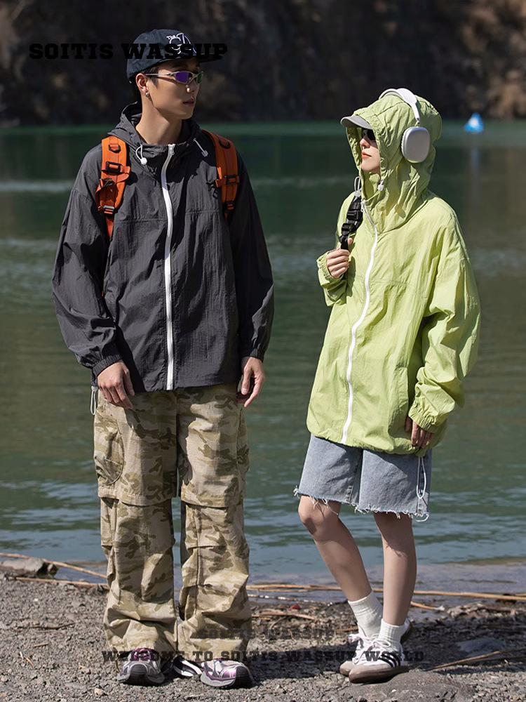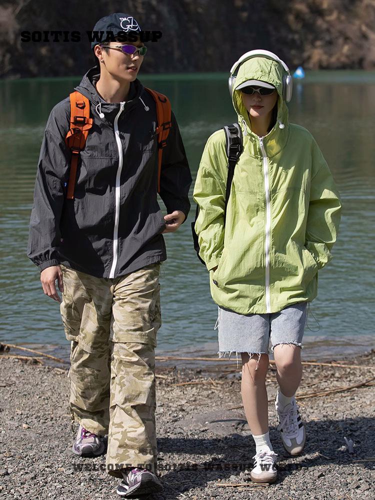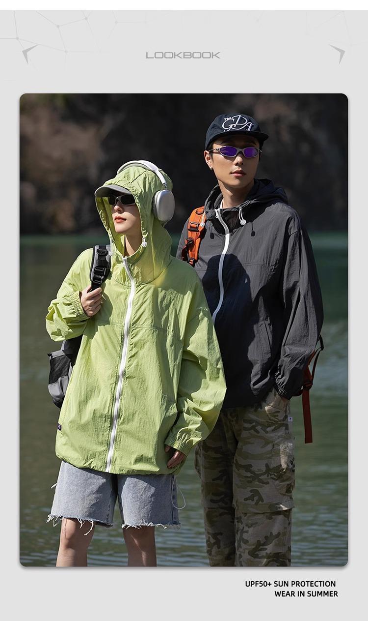 Ropa de verano para parejas, resistente a los rayos UV, para exteriores, de secado rápido, UPF50, ligera, transpirable, informal, con capucha y protector solar para mujer