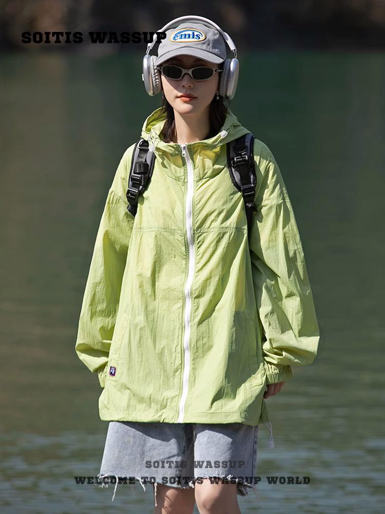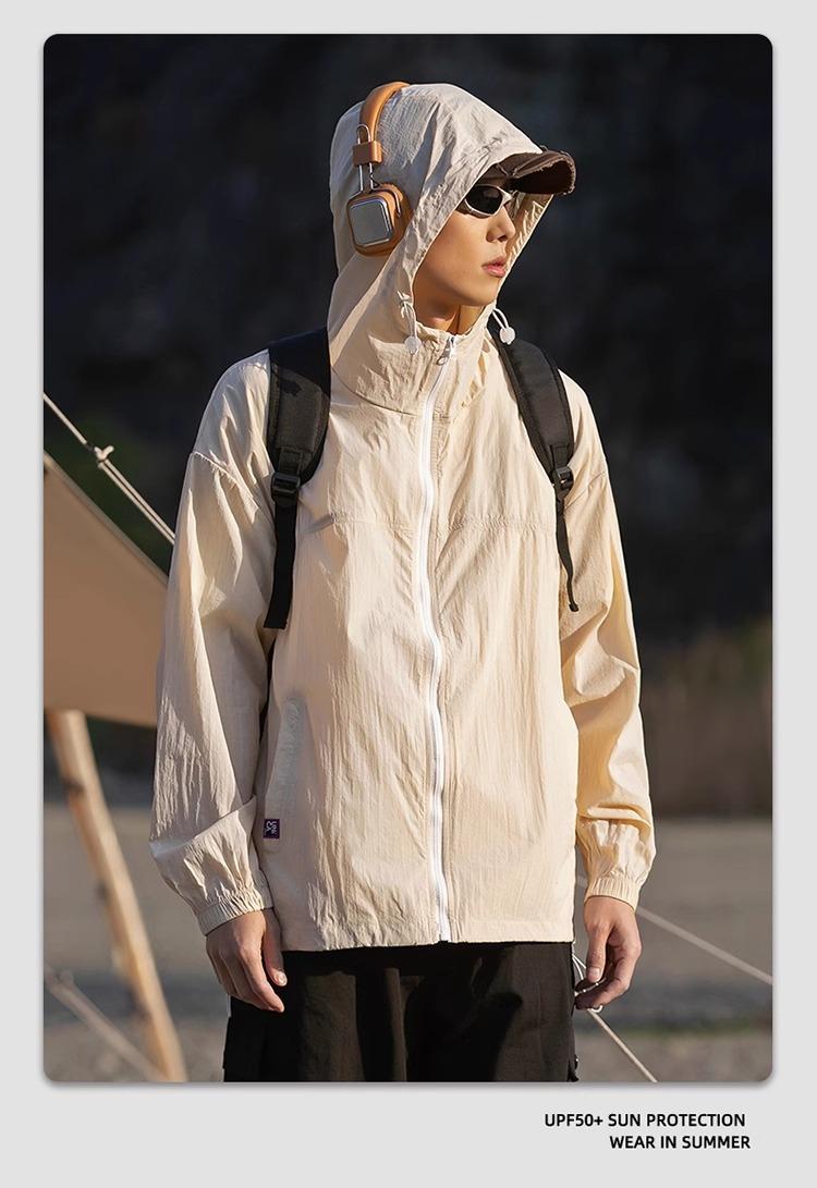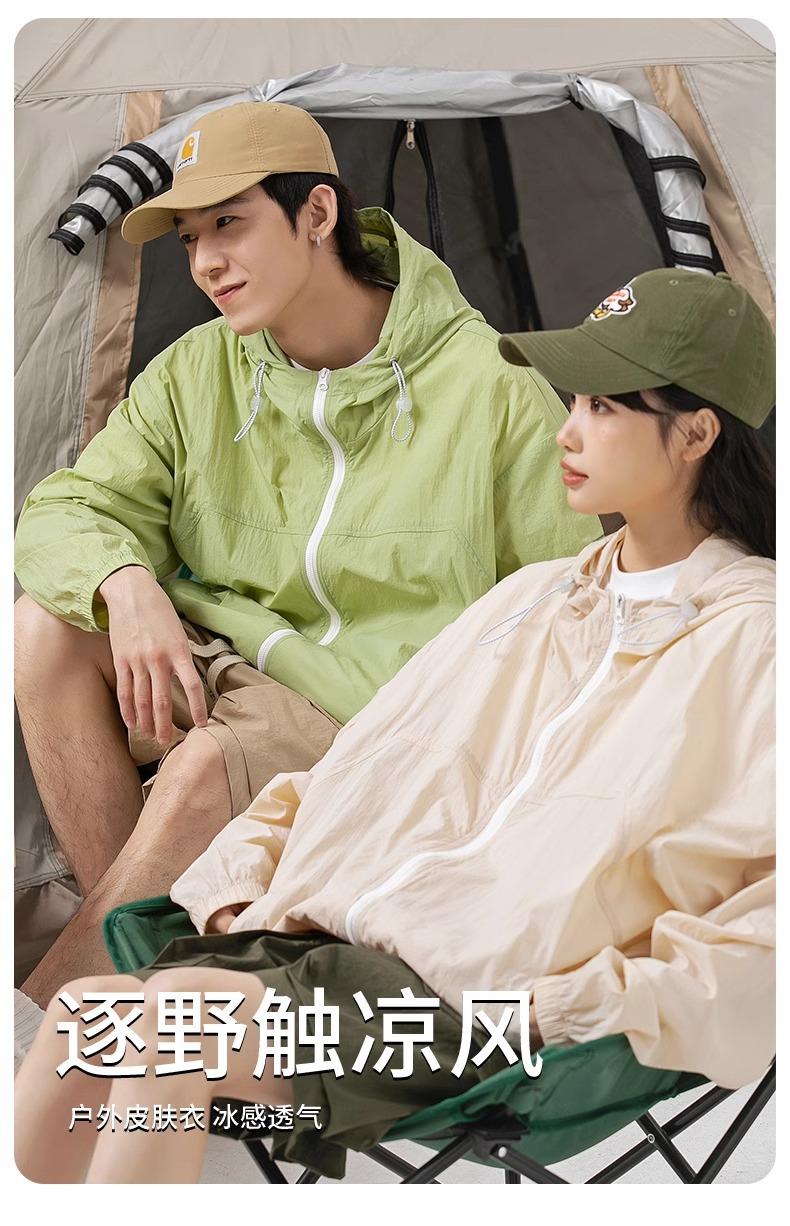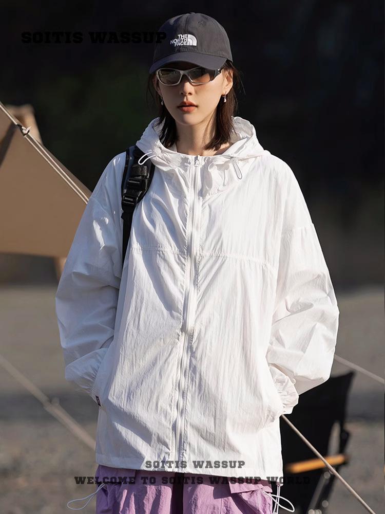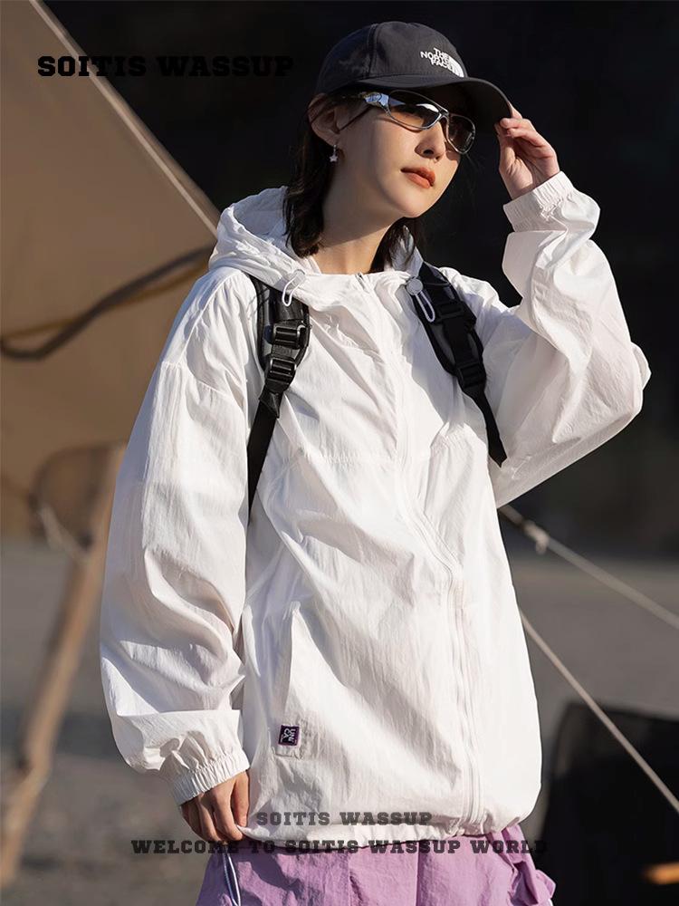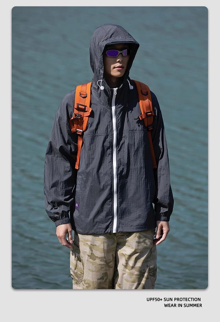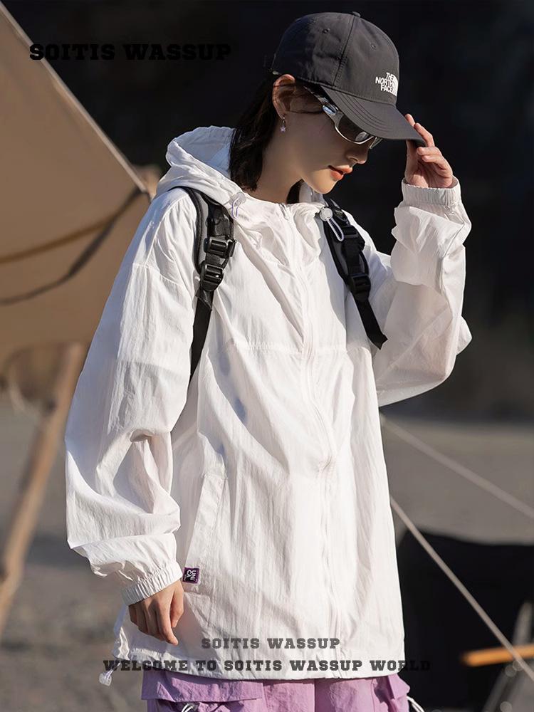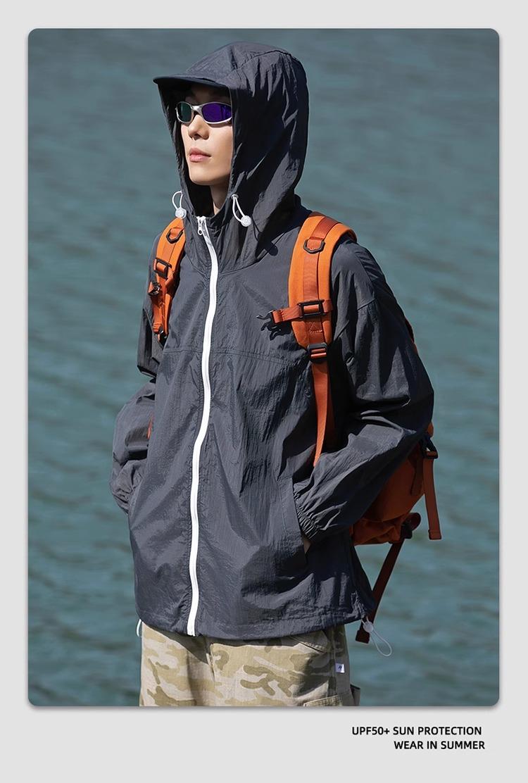 Ropa de verano para parejas, resistente a los rayos UV, para exteriores, de secado rápido, UPF50, ligera, transpirable, informal, con capucha y protector solar para mujer