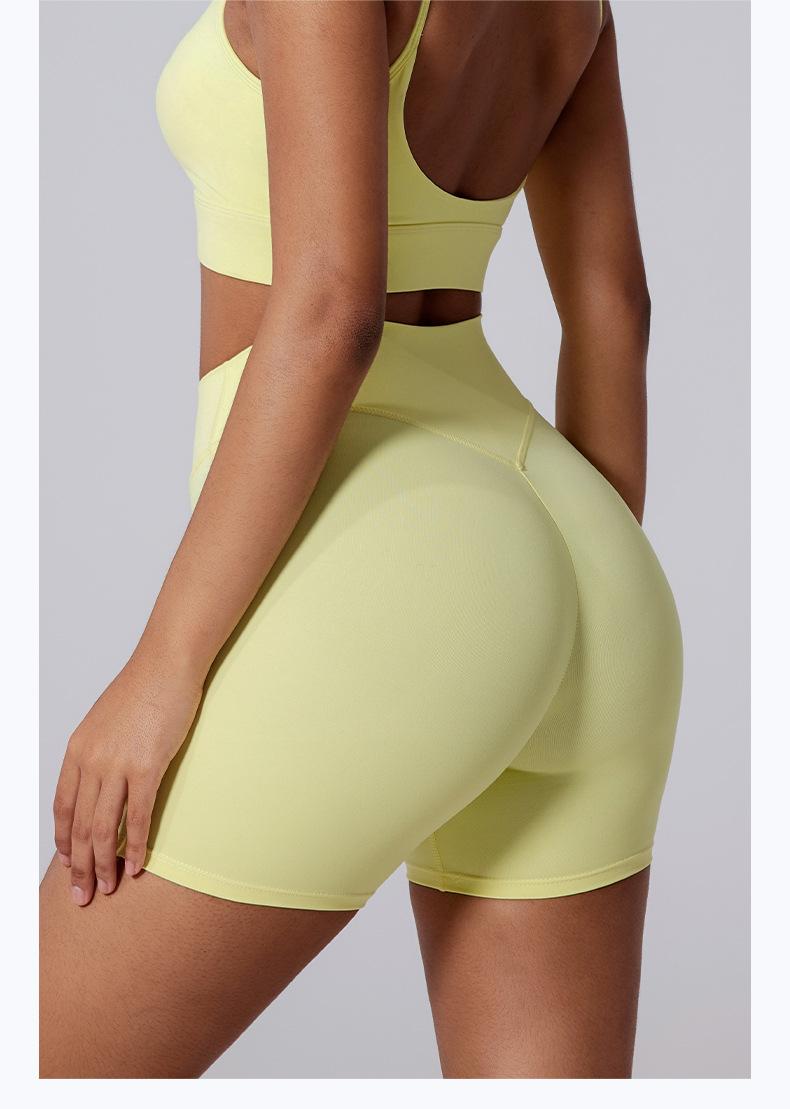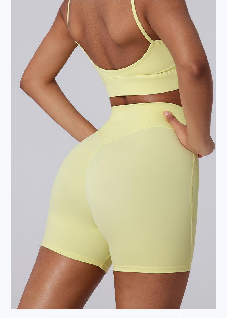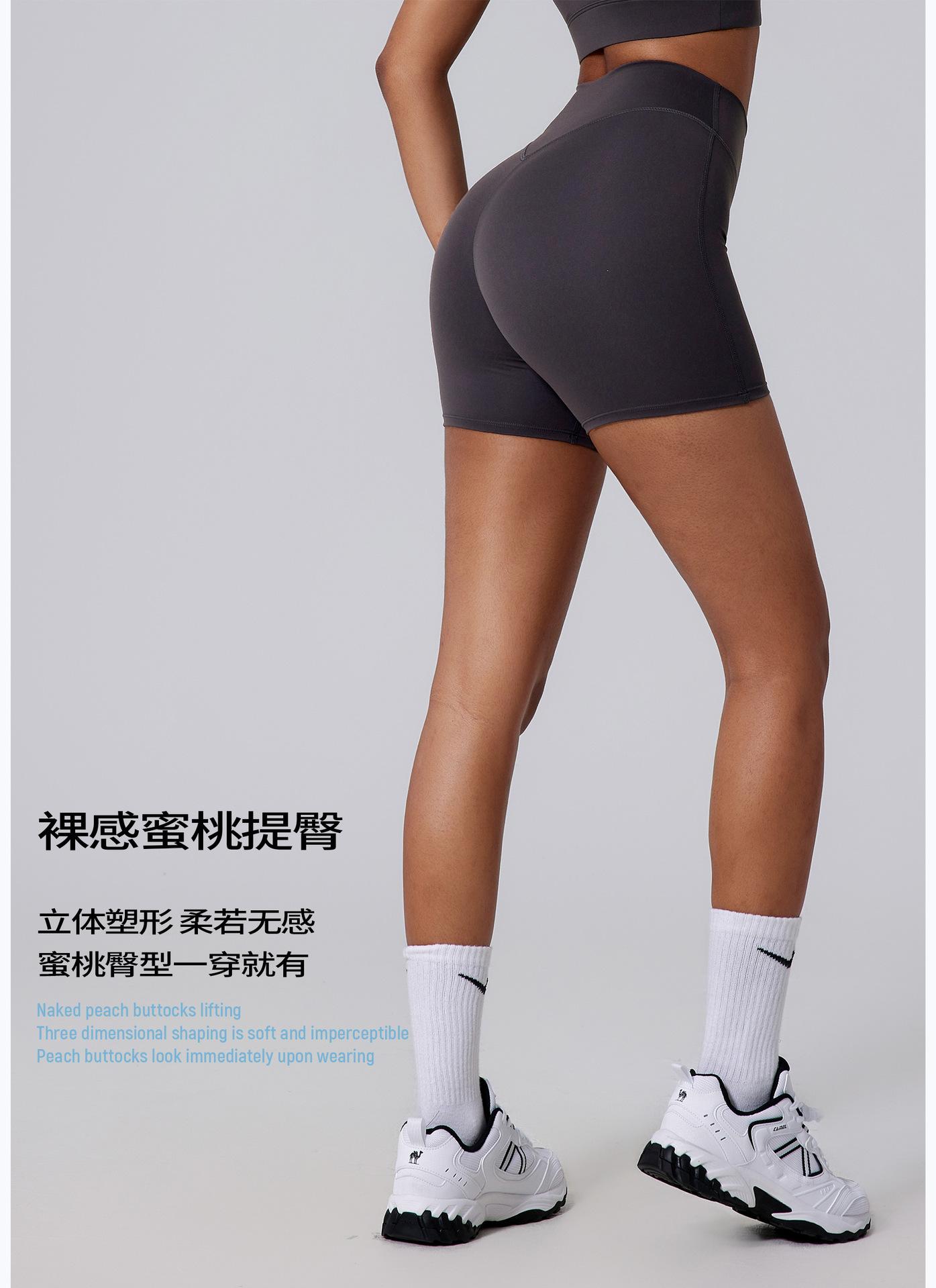 Shorts de Yoga Antienrollamiento Naked Sense Transfronterizos Cintura Alta Abdomen Envuelto Cintura de Plástico Pantalones Deportivos Levantamiento de Cadera Fitness Ropa Exterior Shorts Mujeres