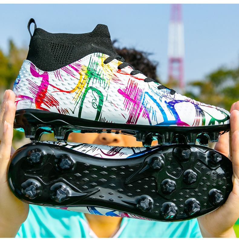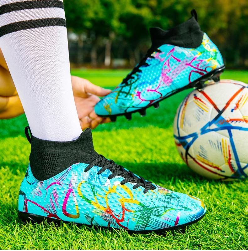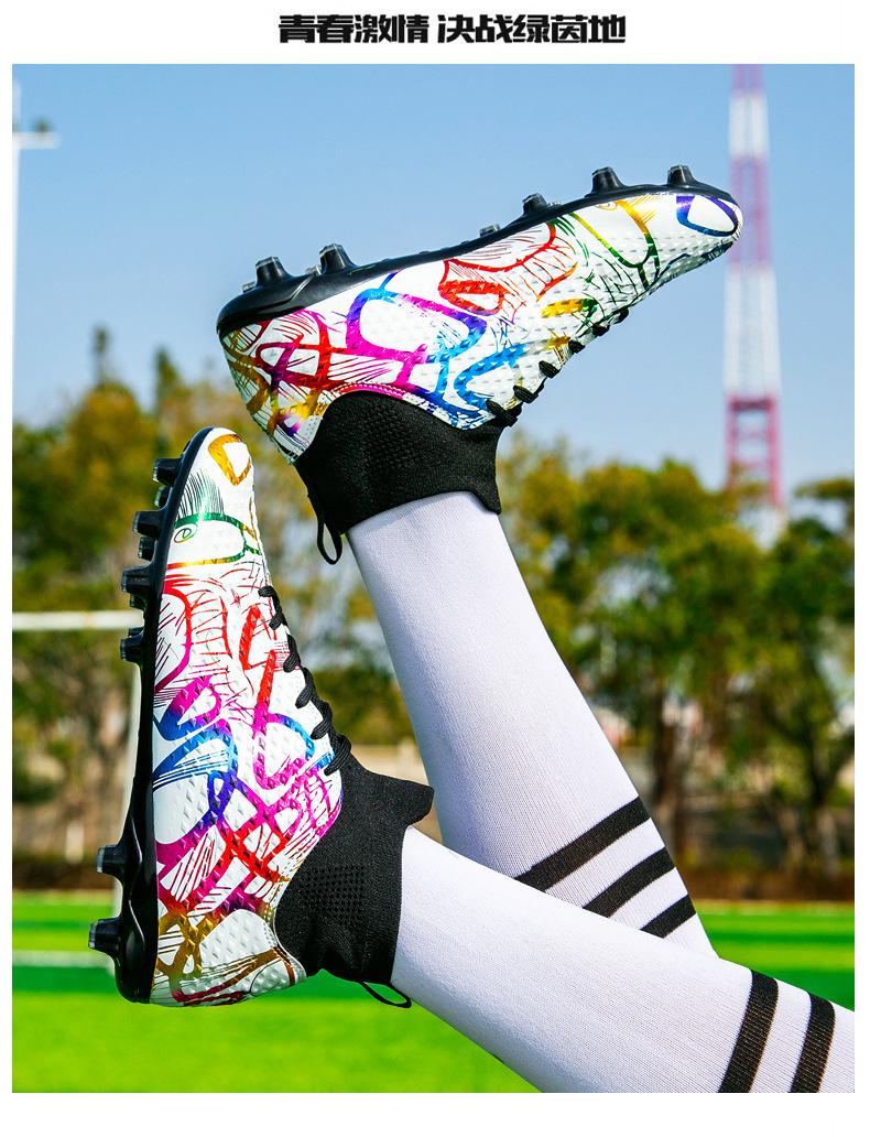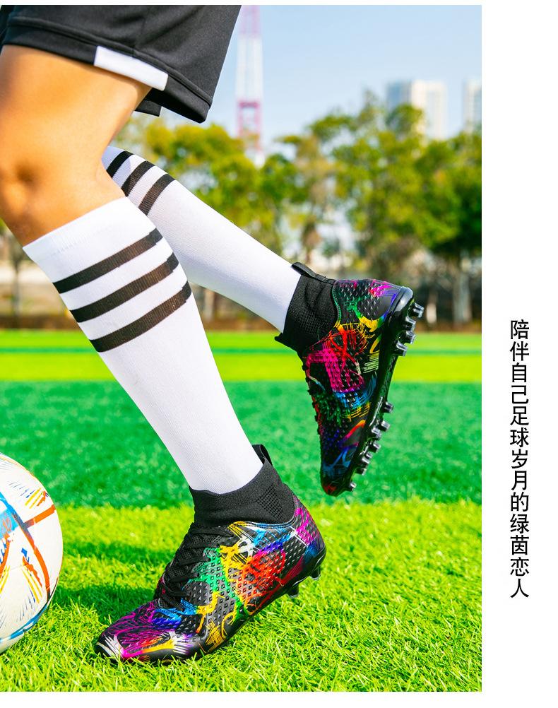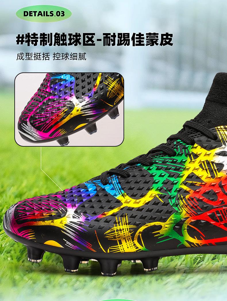 Zapatos de fútbol de caña alta transfronterizos, tachón AG, cuero nuevo, pie masculino y femenino, estudiantes adolescentes, estudiantes, antideslizantes, competición, zapatos deportivos