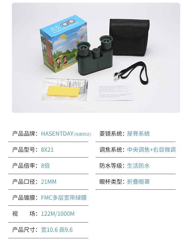 Binoculares para niños transfronterizos de 8 x 21 pulgadas, telescopio exterior de alta definición, binoculares portátiles a color