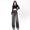Pantalones vaqueros bordados retro estilo americano, verano 2024, nuevo estilo urbano, holgados, de cintura alta, rectos y de pierna ancha.