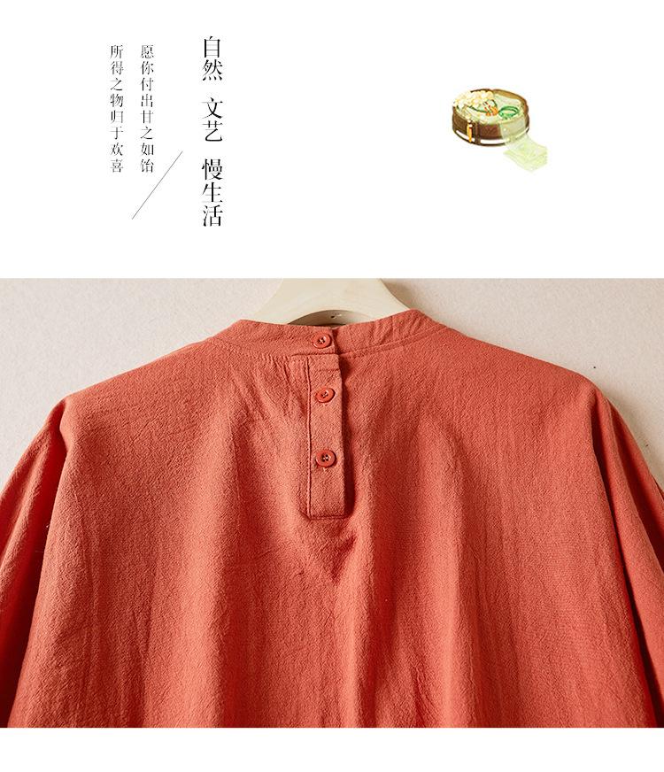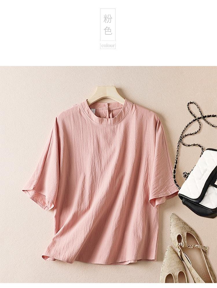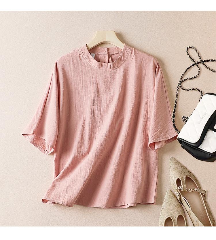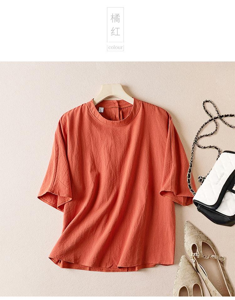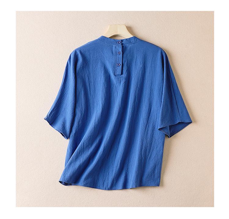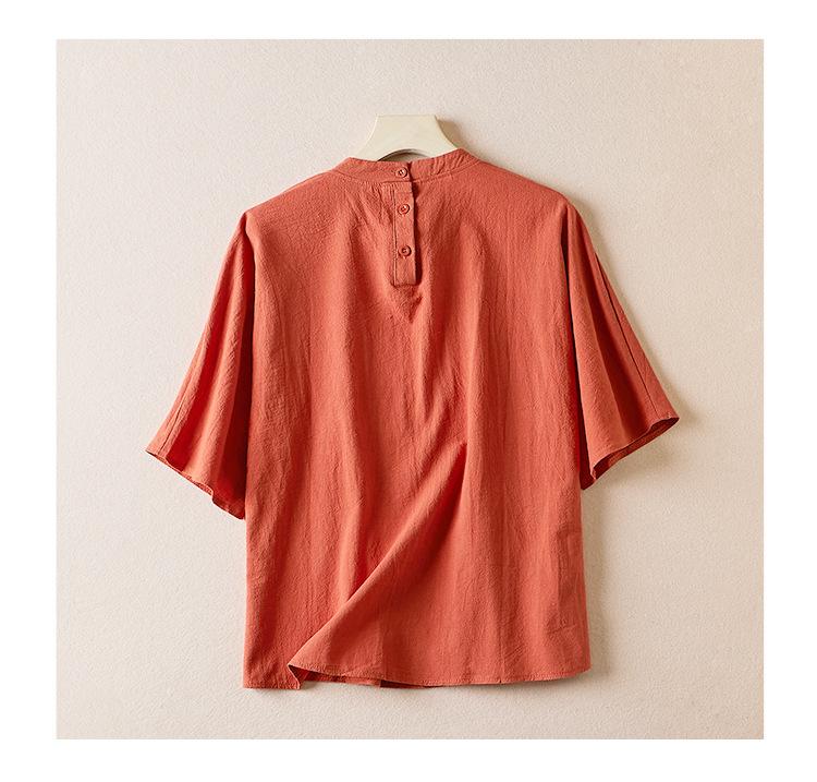 Foto Real Verano 2024 Nuevo Algodón y Lino Artístico Retro Holgado Casual Camisa Top Mujer #9020