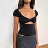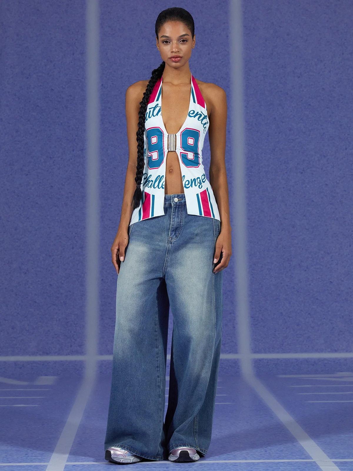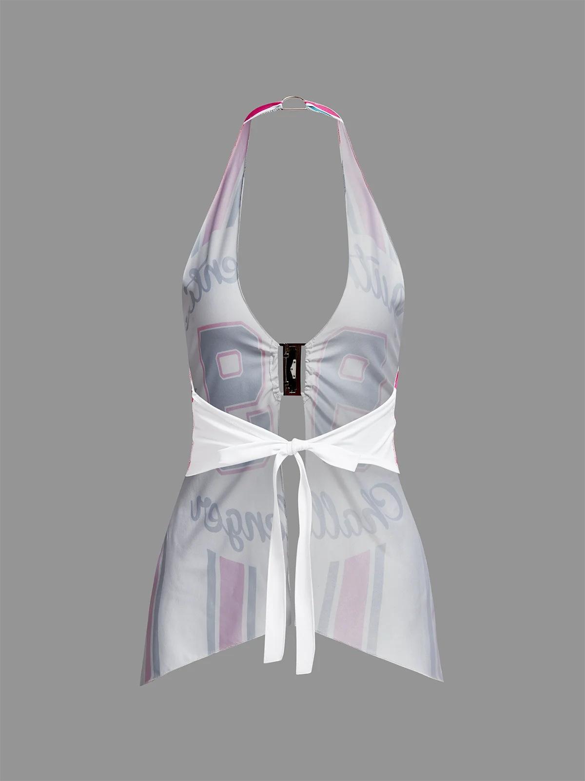 Chaleco pequeño con hebilla de metal y estampado de letras huecas para chica, sexy, con cuello colgante, diseño superior, venta al por mayor, Europa y Estados Unidos