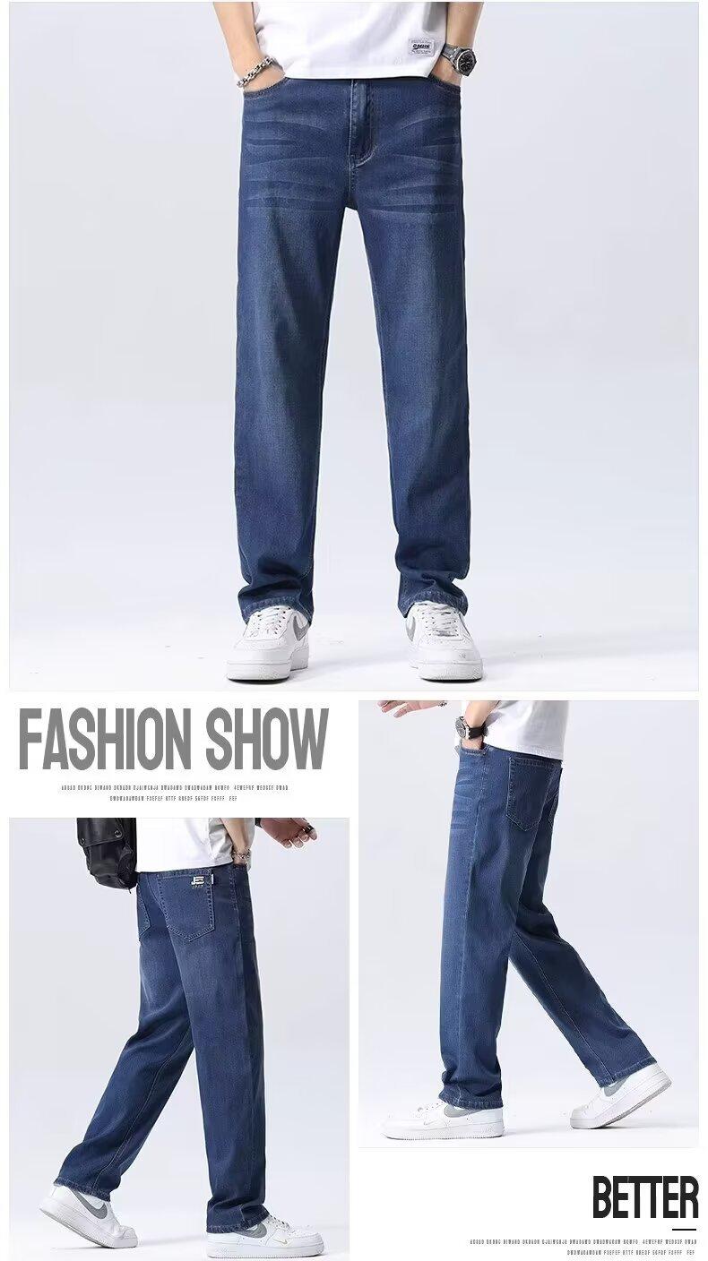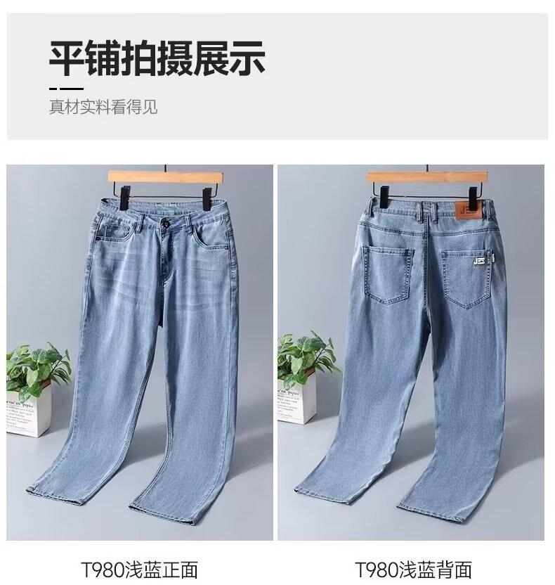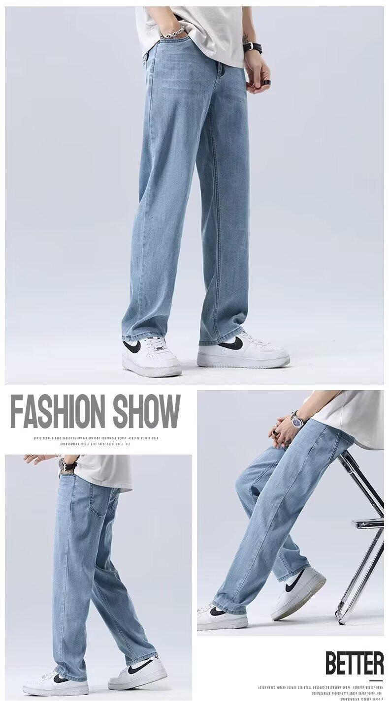 Pantalones vaqueros de verano para hombre, finos, de marca, de moda, para primavera y verano, holgados, pequeños, rectos, de pierna ancha, informales, de seda de hielo para hombre.
