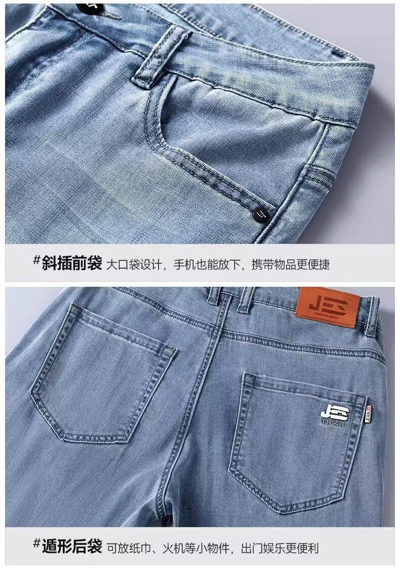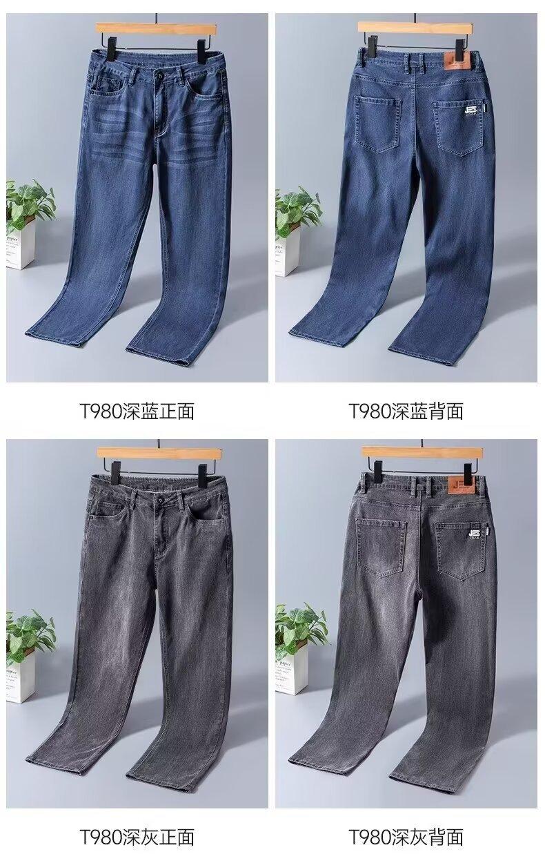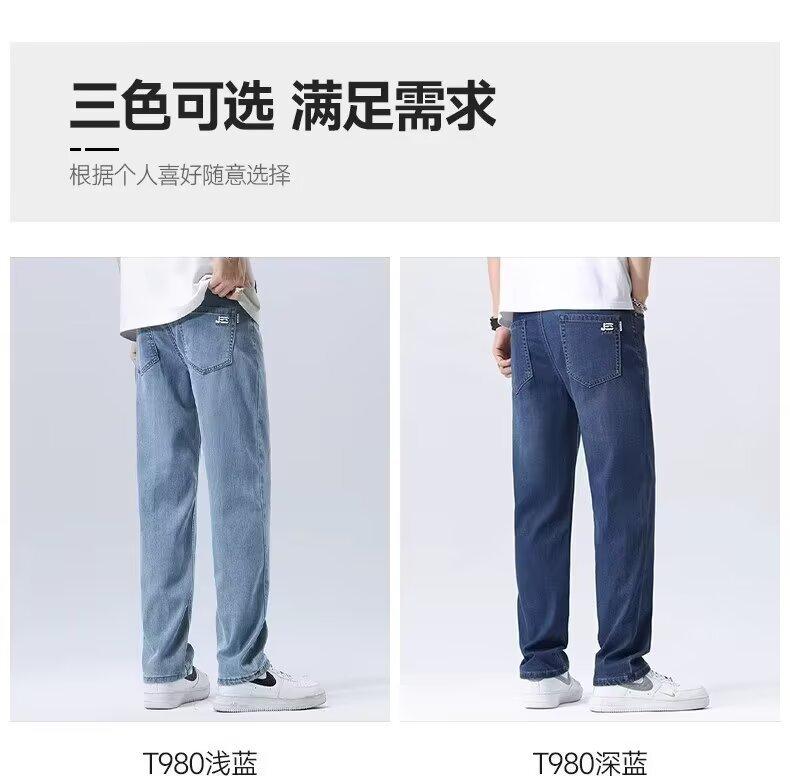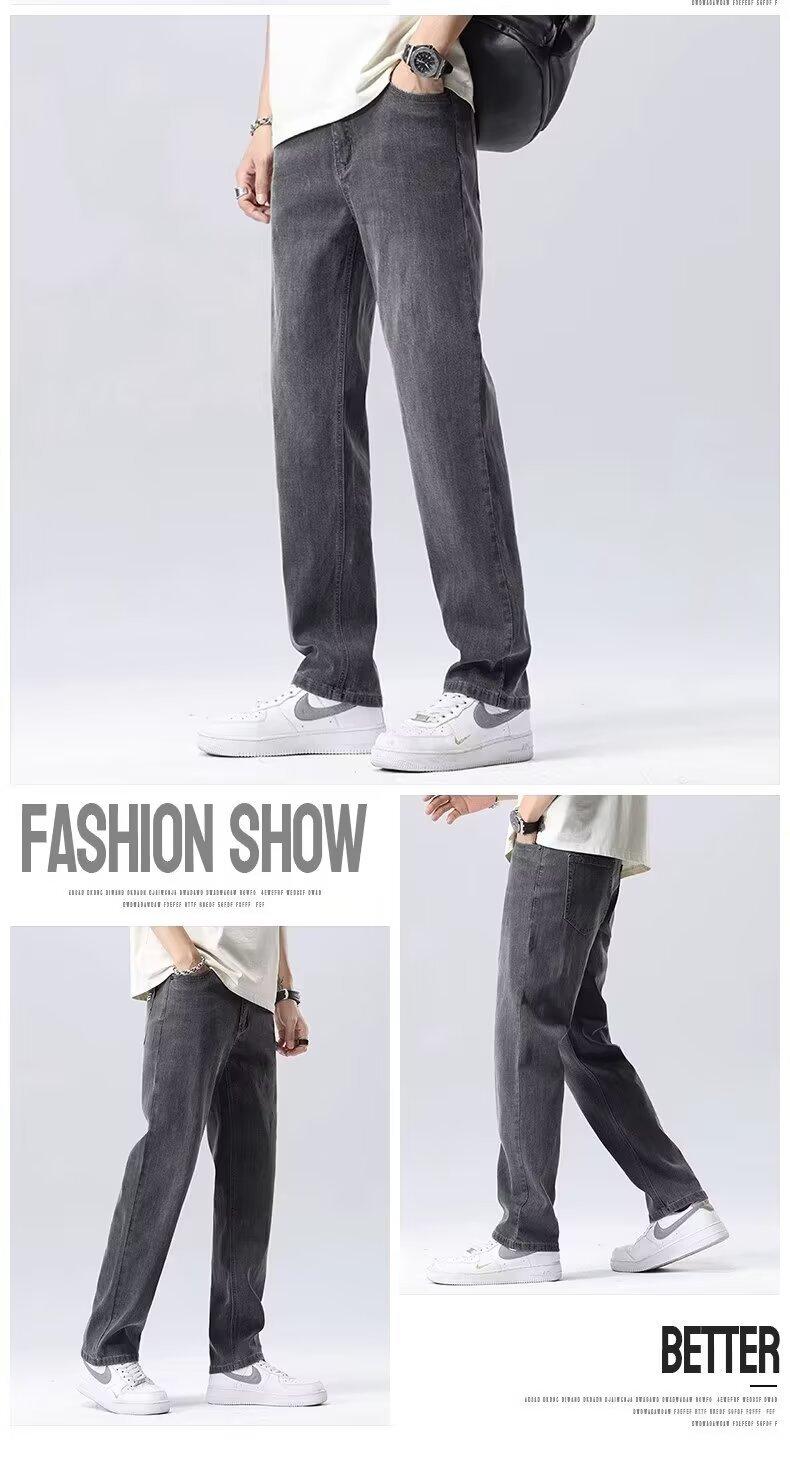 Pantalones vaqueros de verano para hombre, finos, de marca, de moda, para primavera y verano, holgados, pequeños, rectos, de pierna ancha, informales, de seda de hielo para hombre.