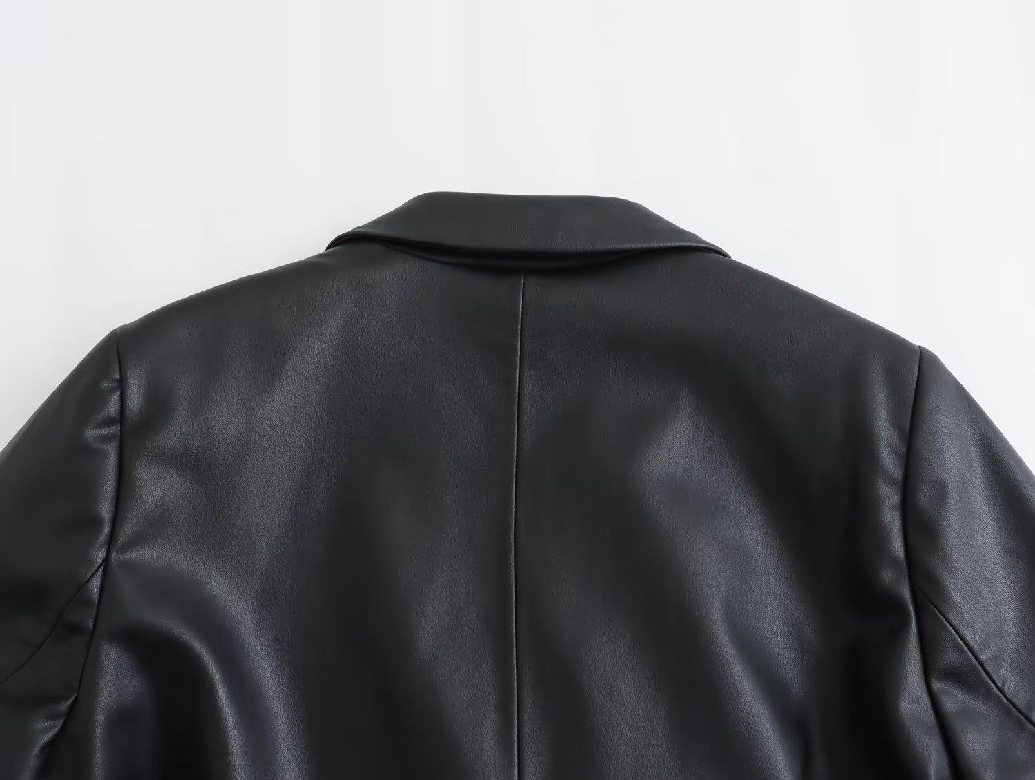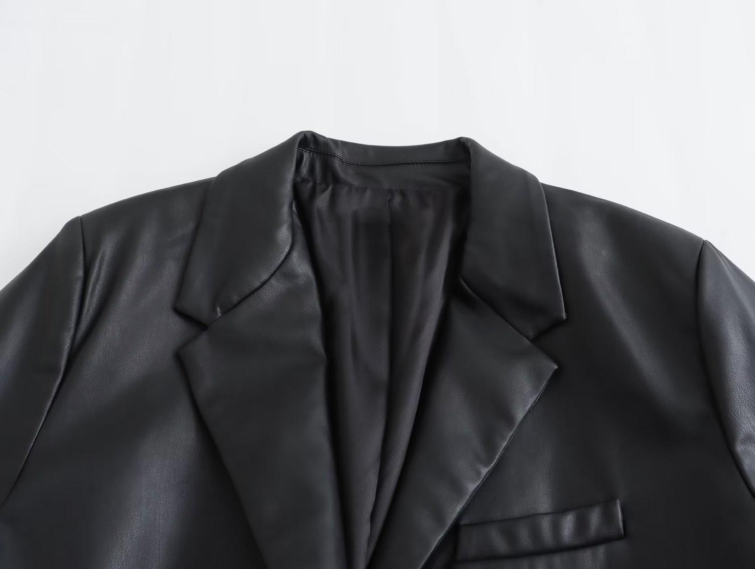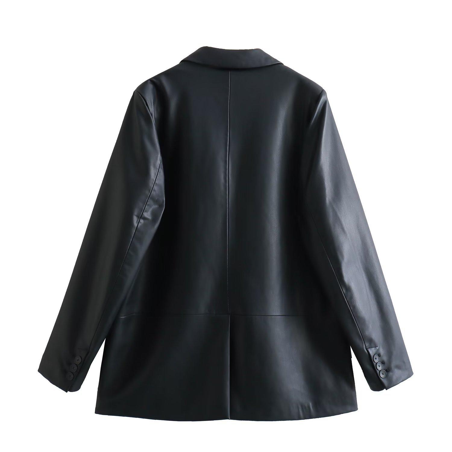 2023 Otoño Nueva Llegada Europeo y Americano Transfronterizo para Mujer Calle Imitación Cuero Una Boca Casual Estilo Unisex Chaqueta de Traje Casual