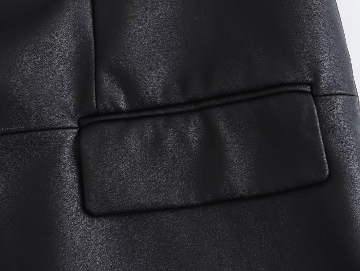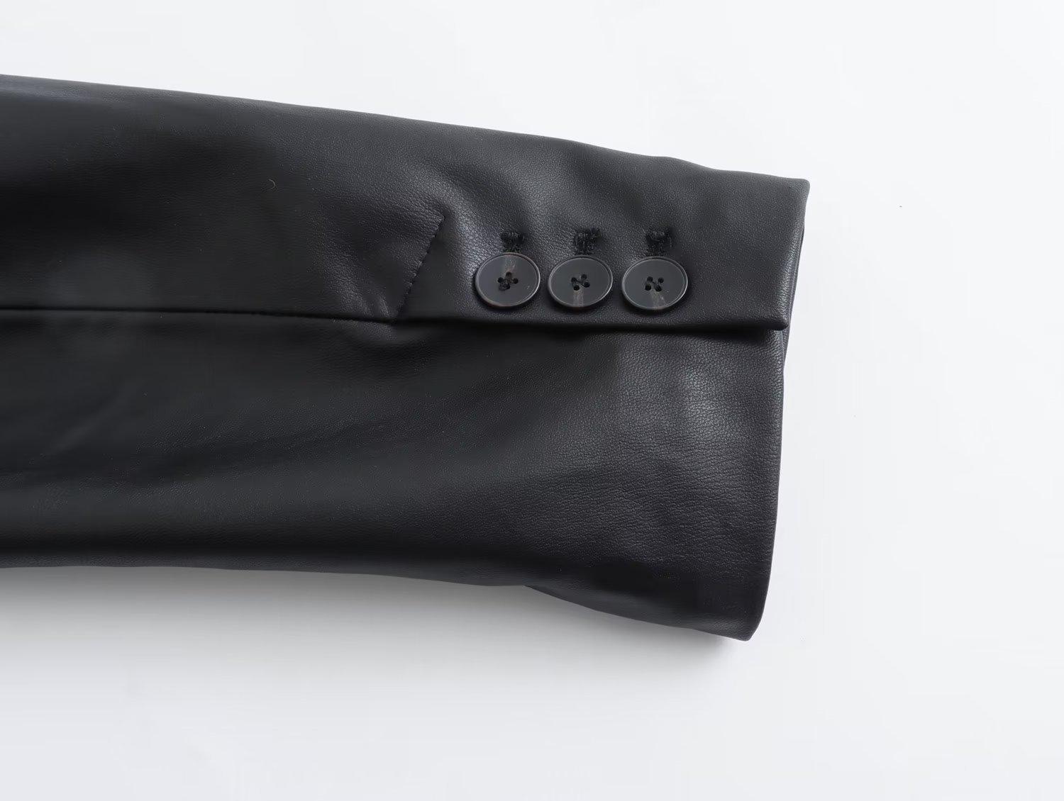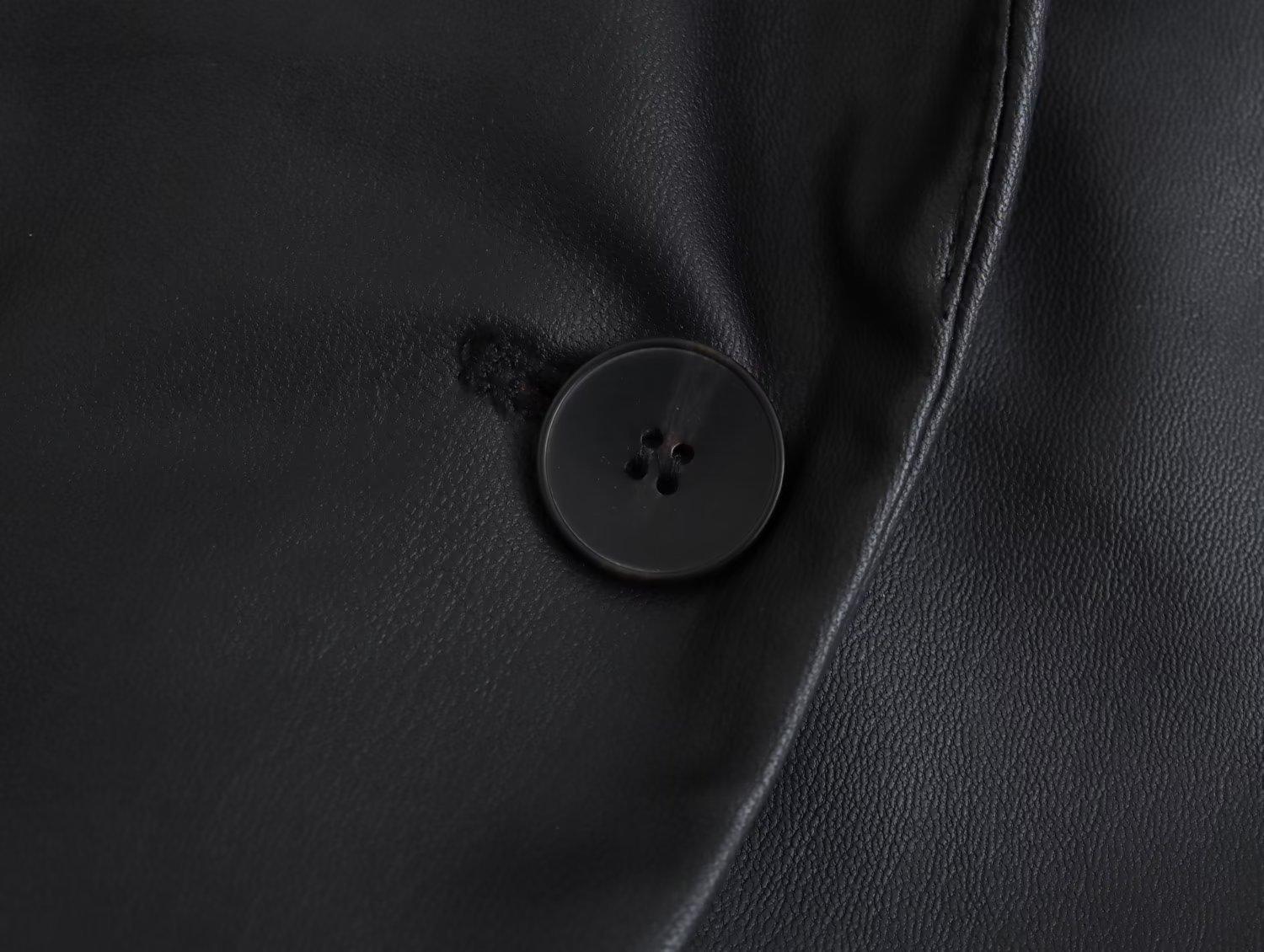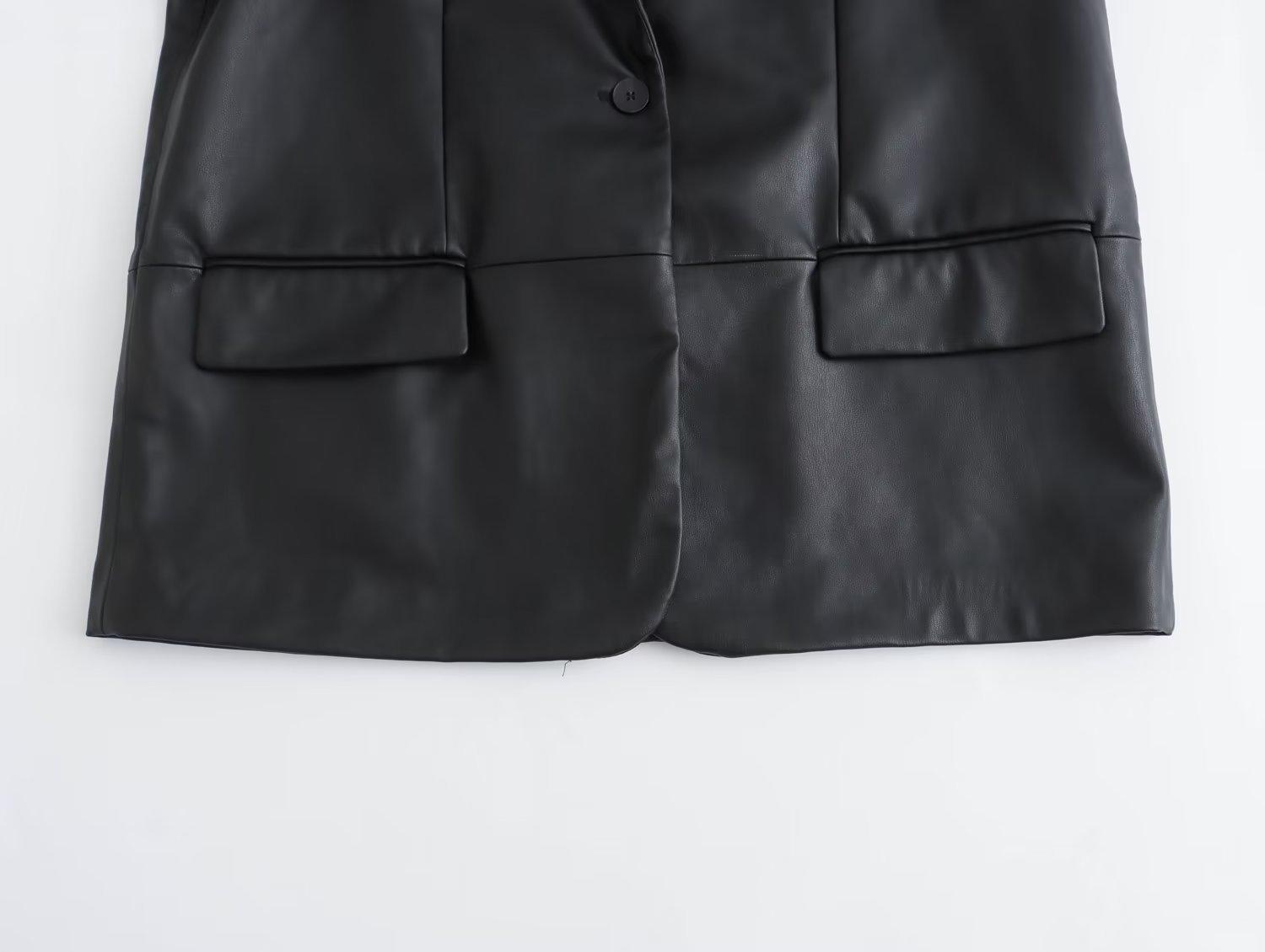2023 Otoño Nueva Llegada Europeo y Americano Transfronterizo para Mujer Calle Imitación Cuero Una Boca Casual Estilo Unisex Chaqueta de Traje Casual