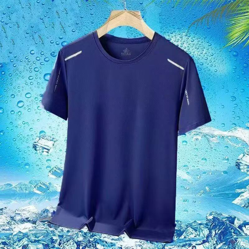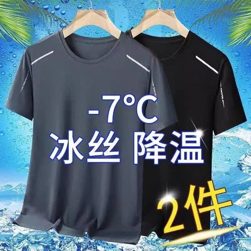Camiseta de Manga Corta de Seda de Hielo para Hombre Verano Secado Rápido Talla Grande Ropa Deportiva Transpirable Holgada Versátil Estampada de Malla T